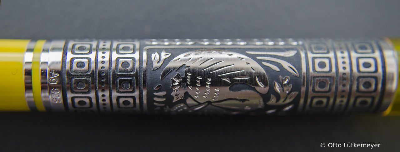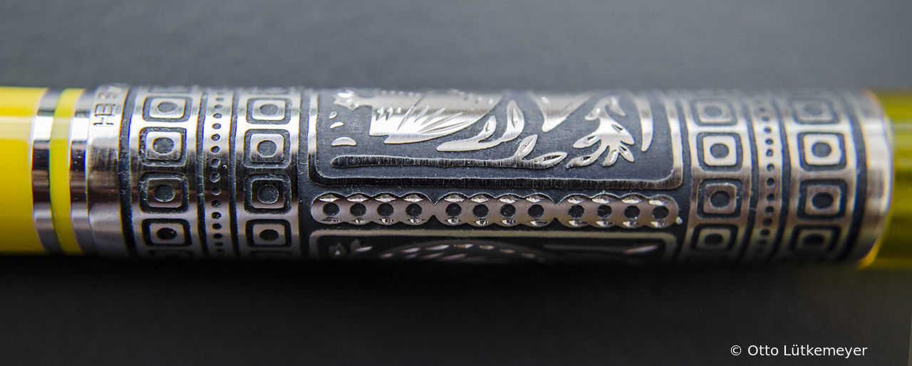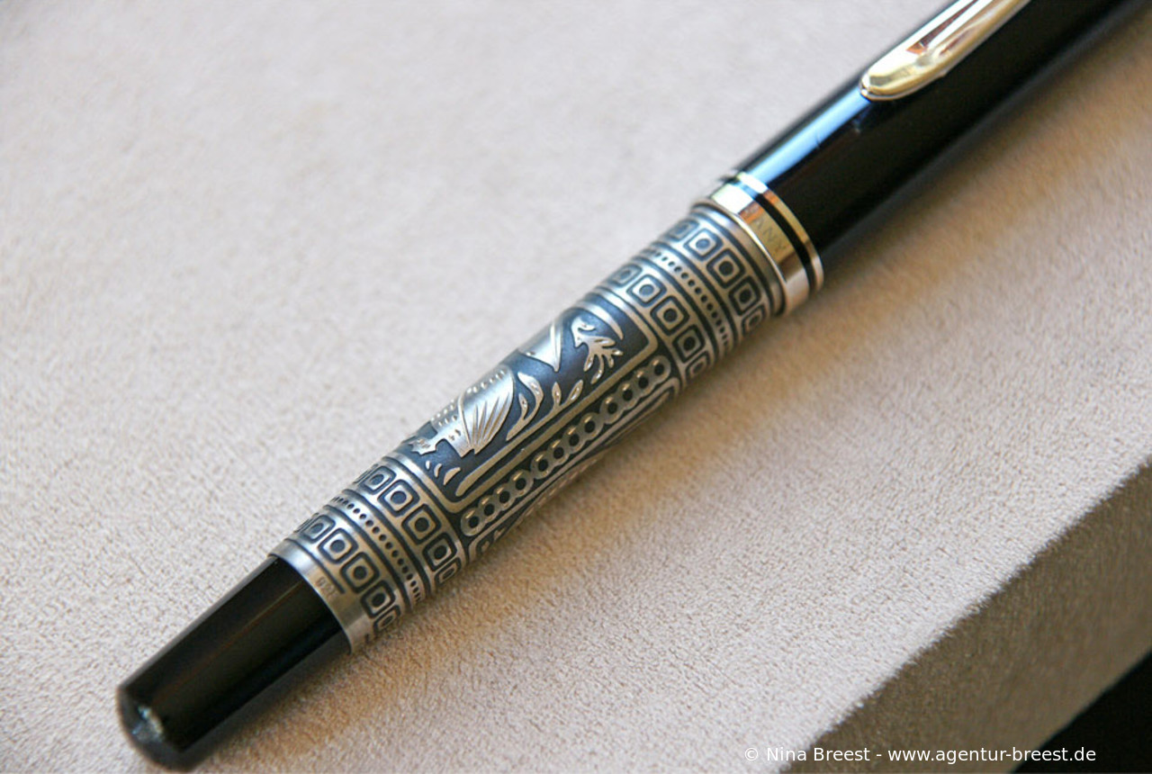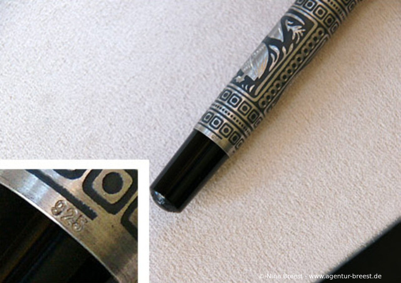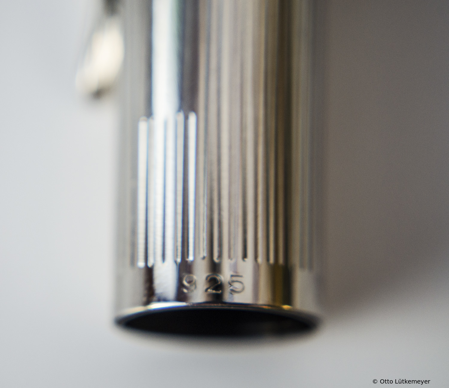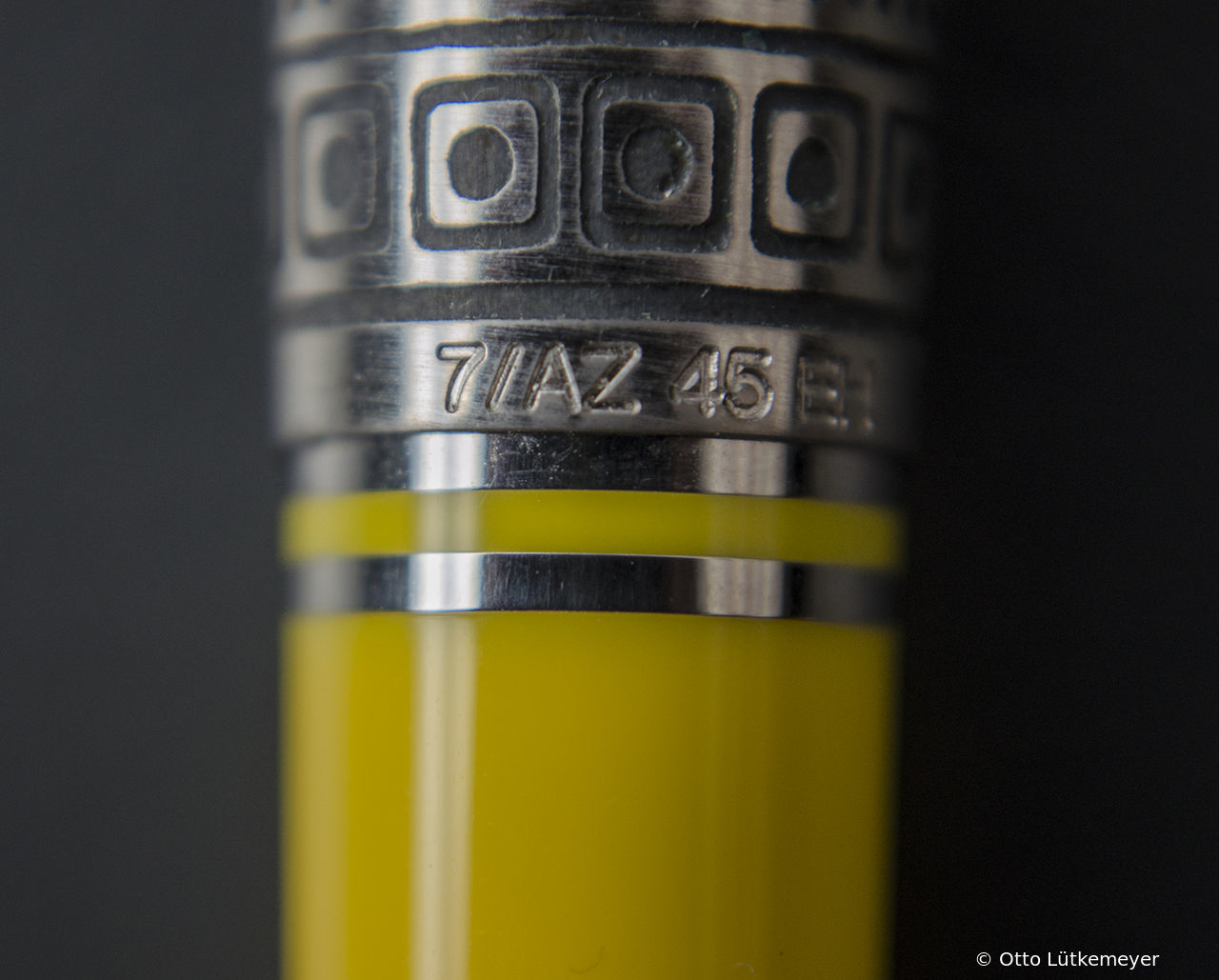 Jeder Füllhalter hat eine einmalige Seriennummer auf dem Schaft, nahe am Füllknopf.