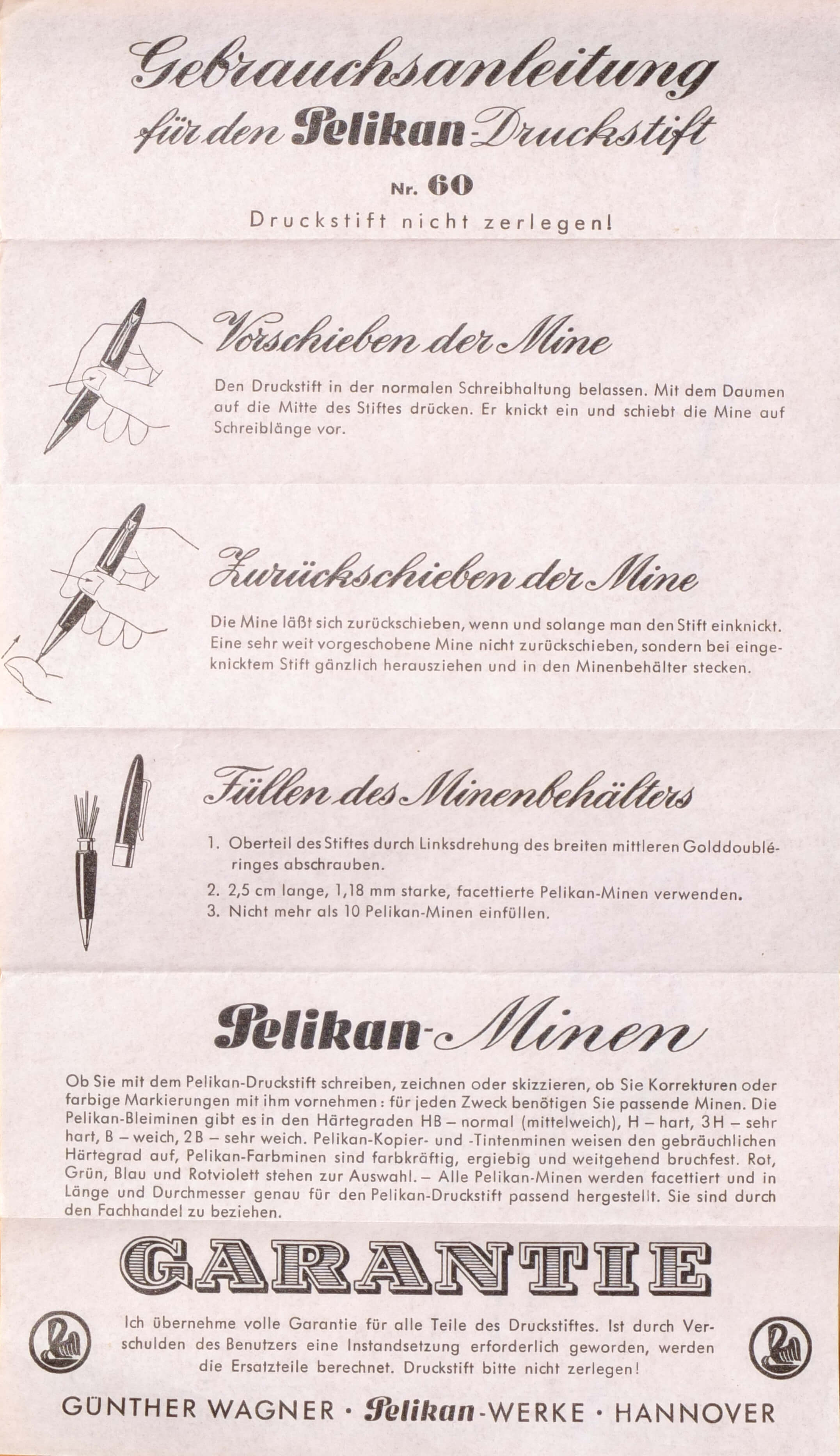 Der Pelikan 60 Bleistift wird im allgemeinen auch als Knickebein bezeichnet, da die außergewöhnliche Mechnik zum Minenvorschub ein Knicken des Stiftes in der Mitte erfordert.