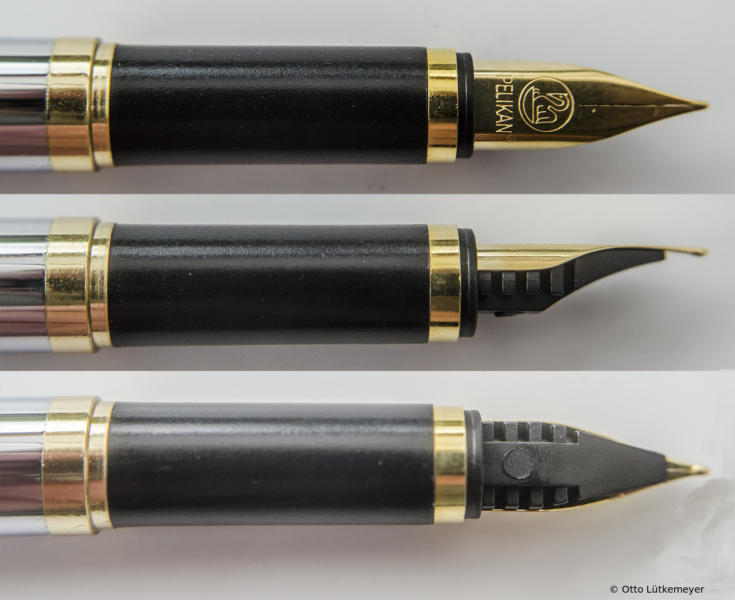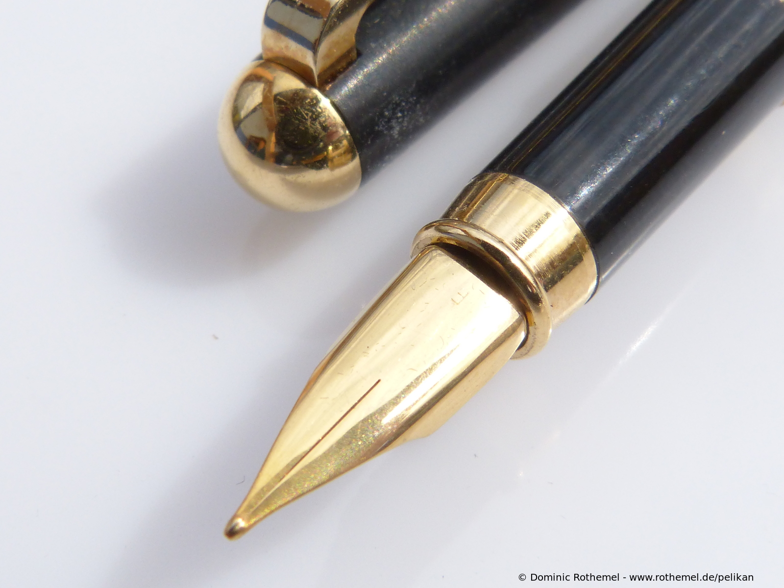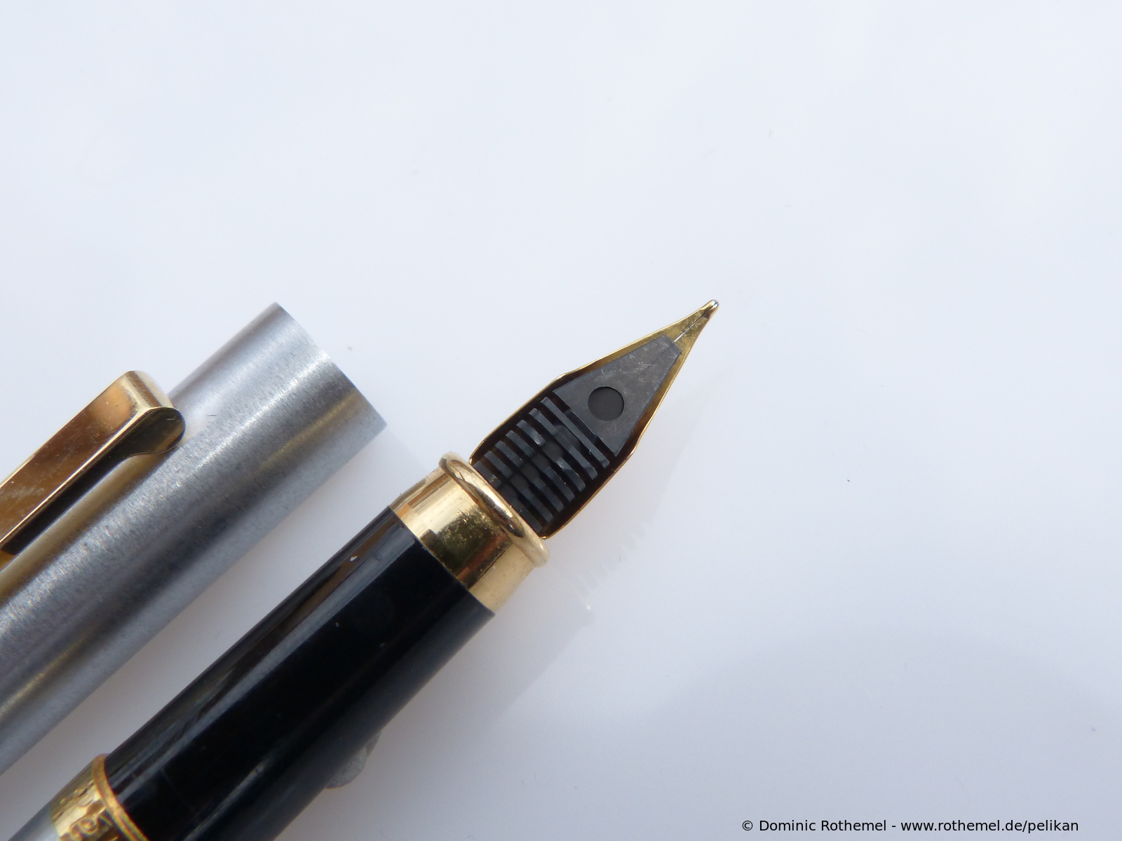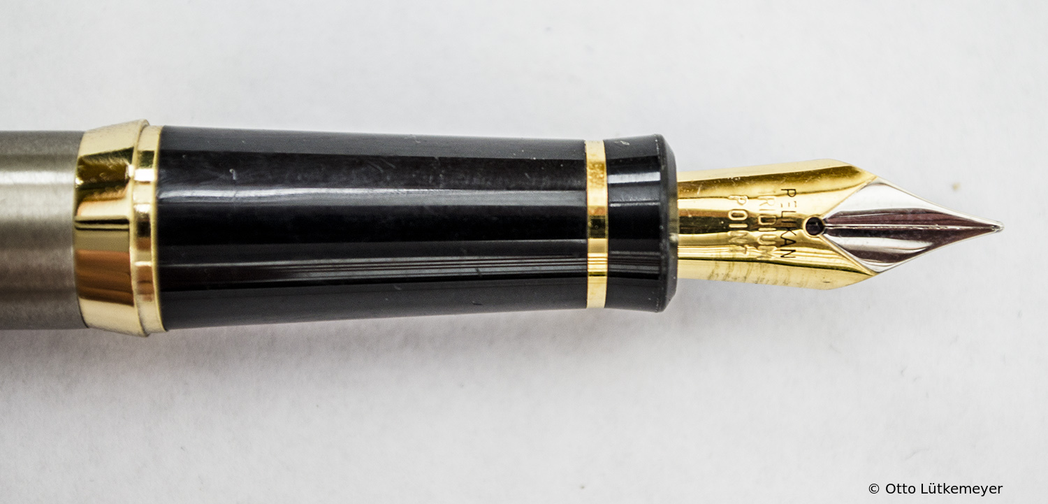 The polished stainless steel nib is partially gold plated. The engraving reads: PELIKAN IRIDIUM POINT