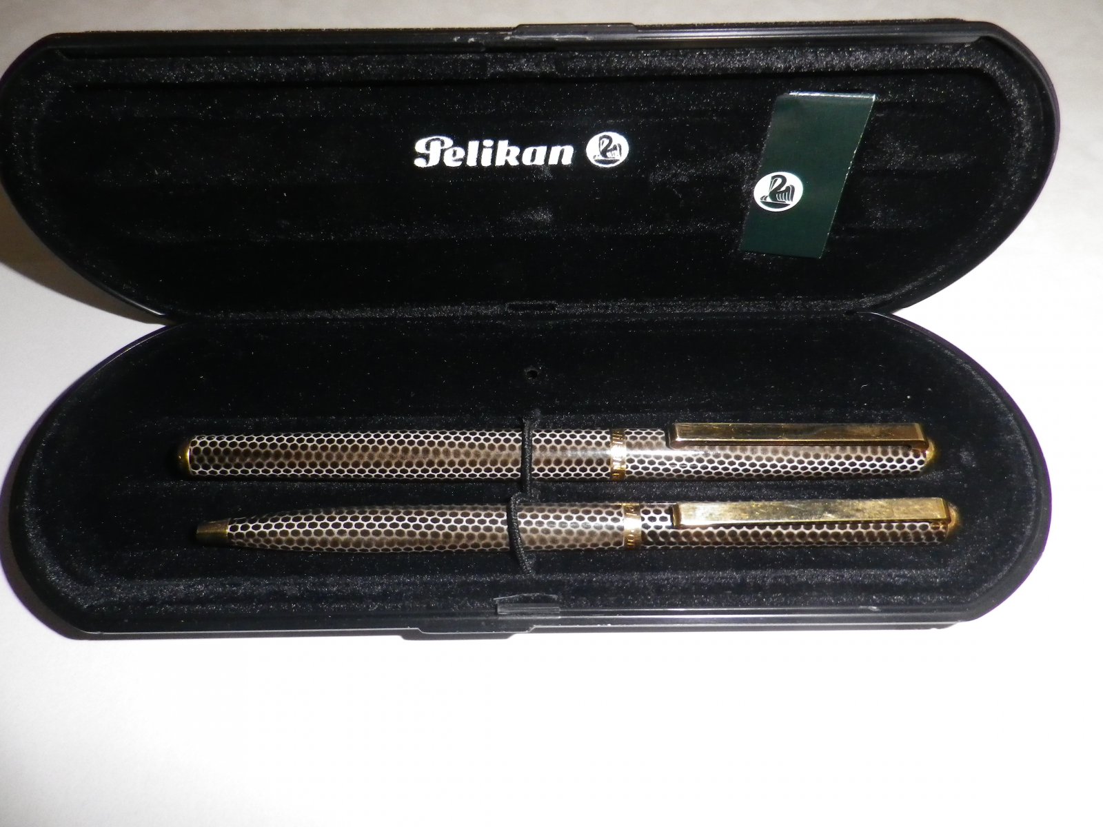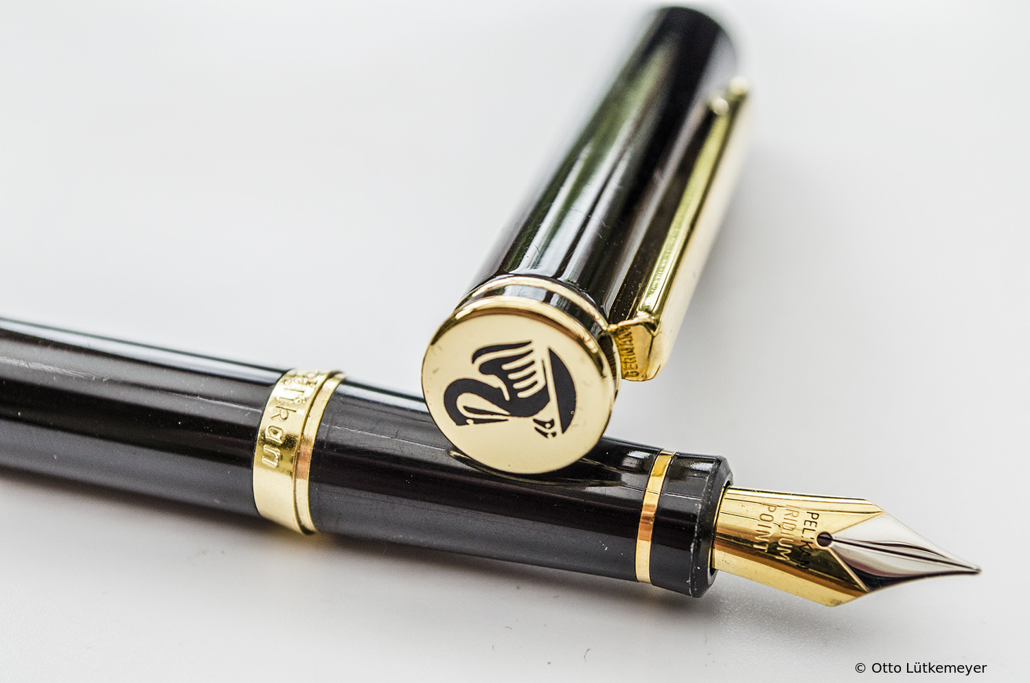 The pens have nibs with different engravings. One is '© Pelikan' and carries the Pelikan Logo, the second nib is engraved 'IRIDIUM POINT W-GERMANY'.