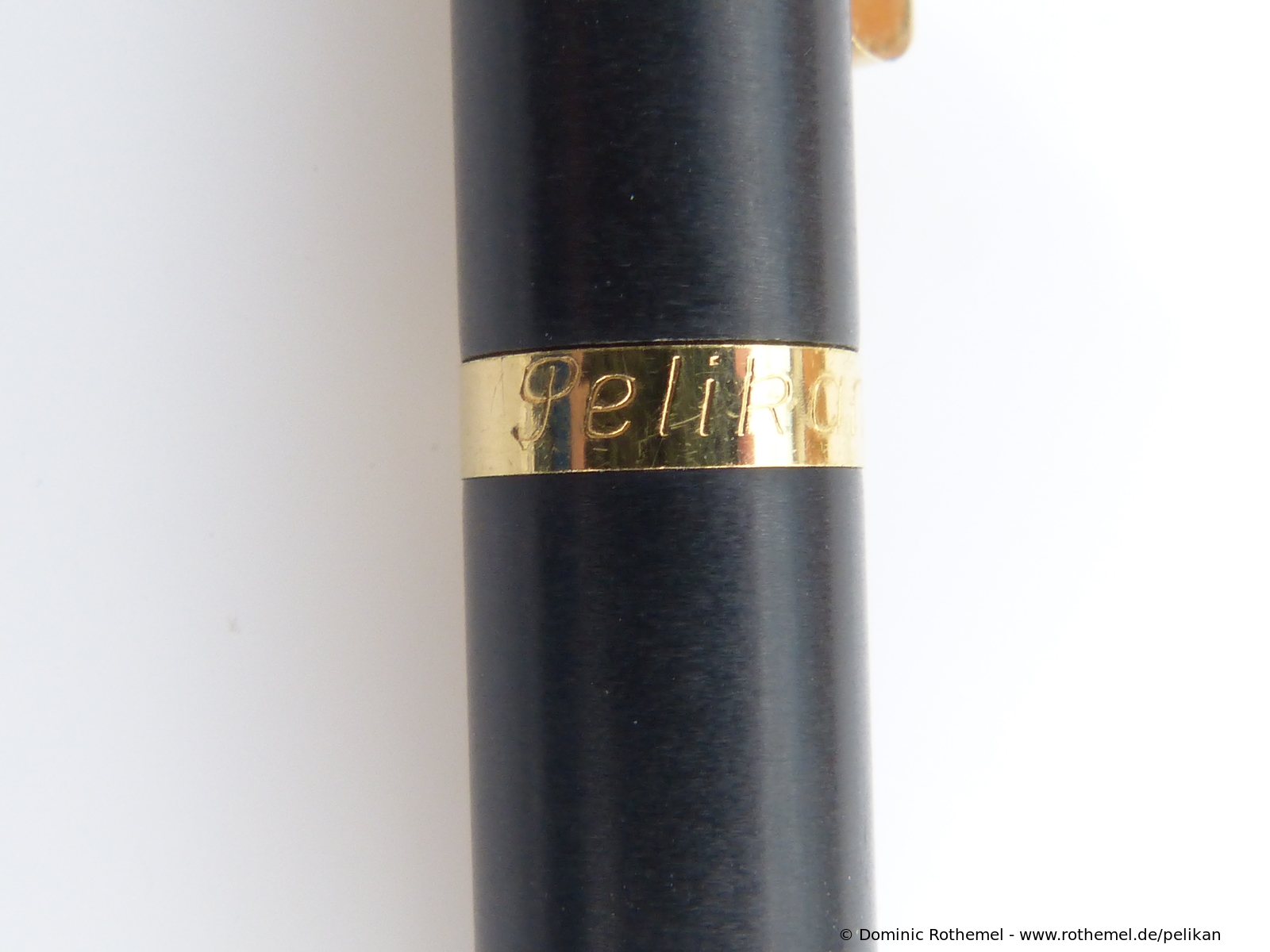 • The biggest difference is probably found on the grey marbled fountain pen. The decorative ring in the middle of the barrel usually is engraved 'Pelikan GERMANY'. This fountain pen bears instead a dedication engraving: 'JOSE ROMERO Paris W.G.' Such an engraving represents a significant intervention in the manufacturing process.