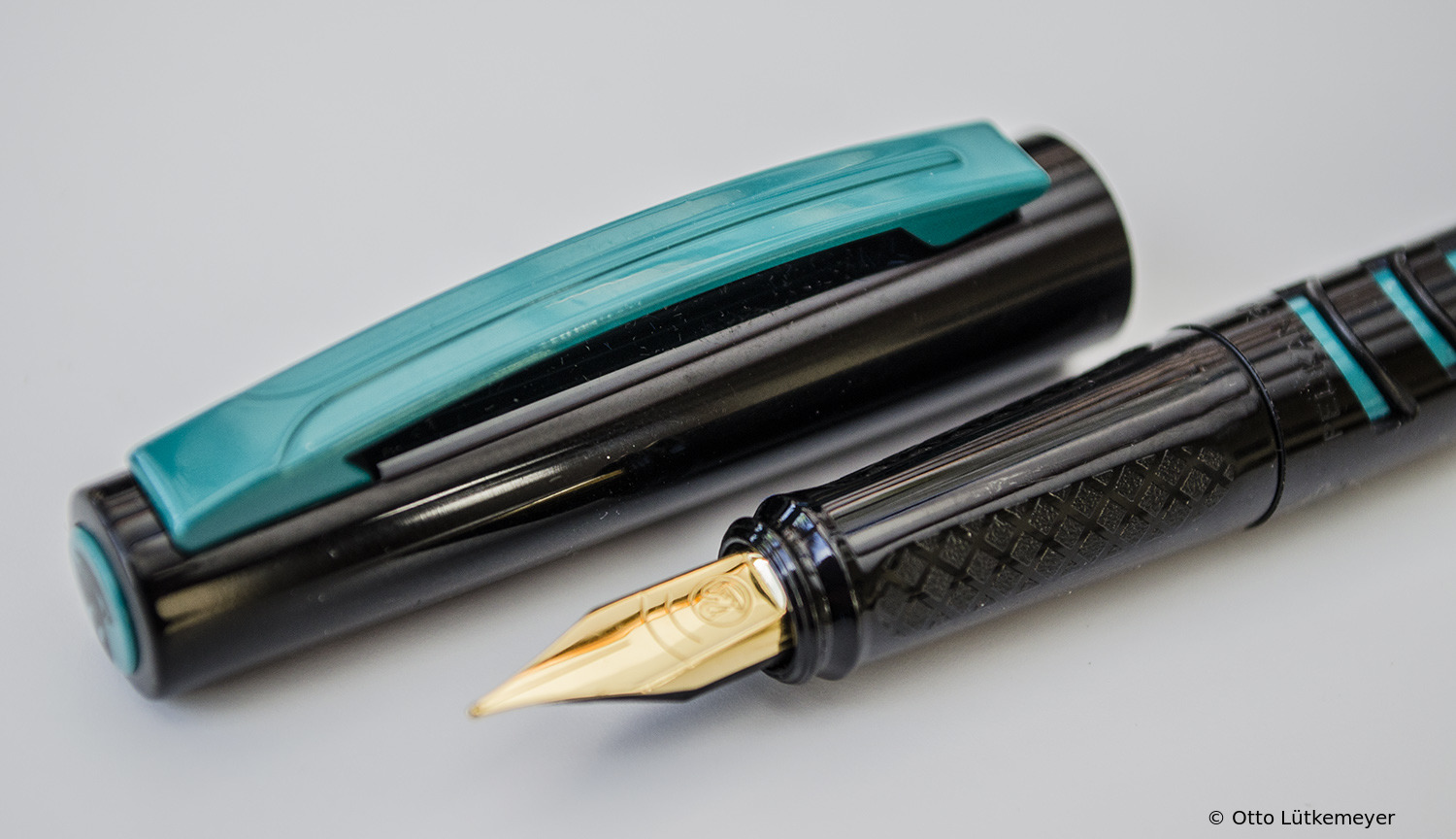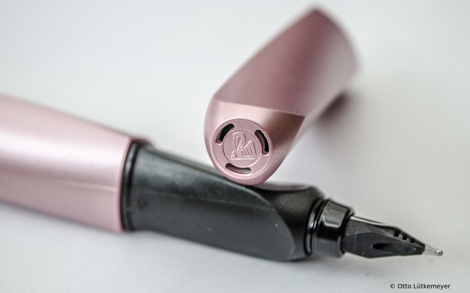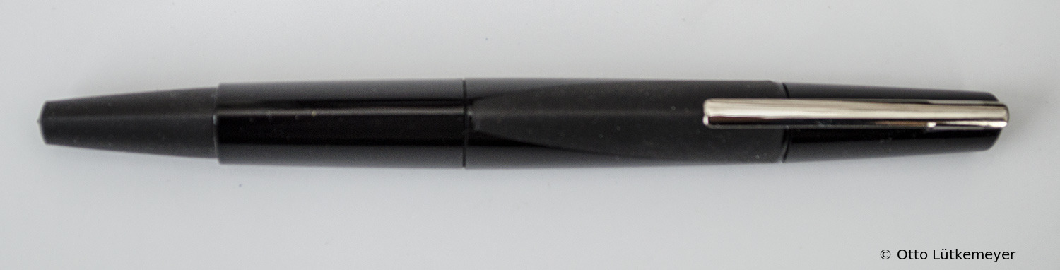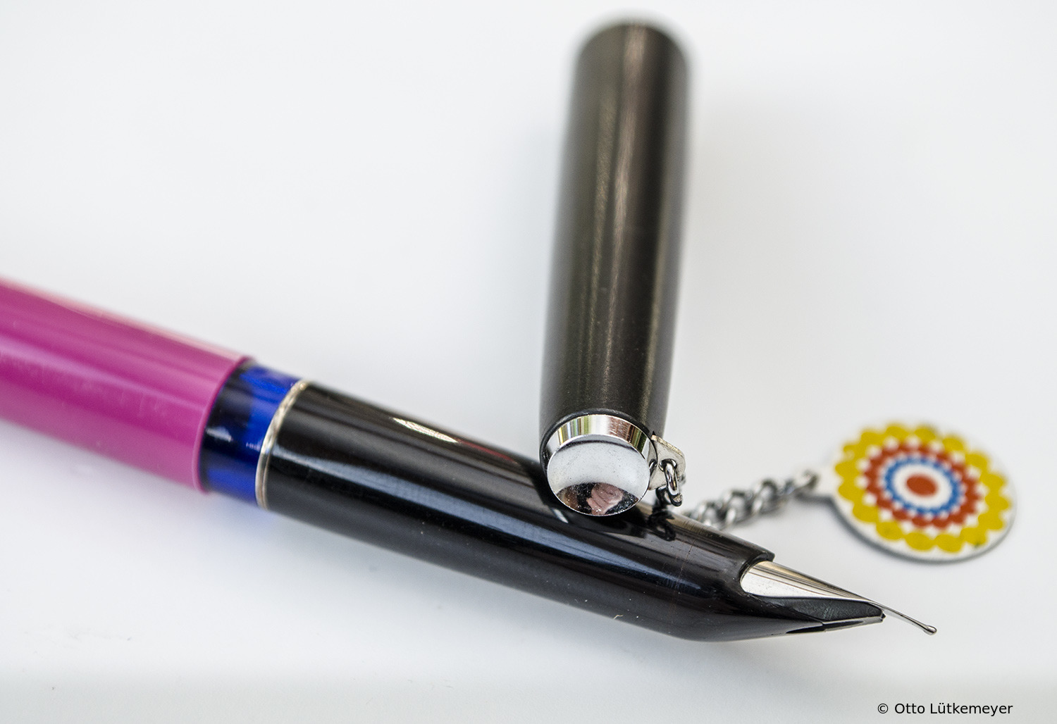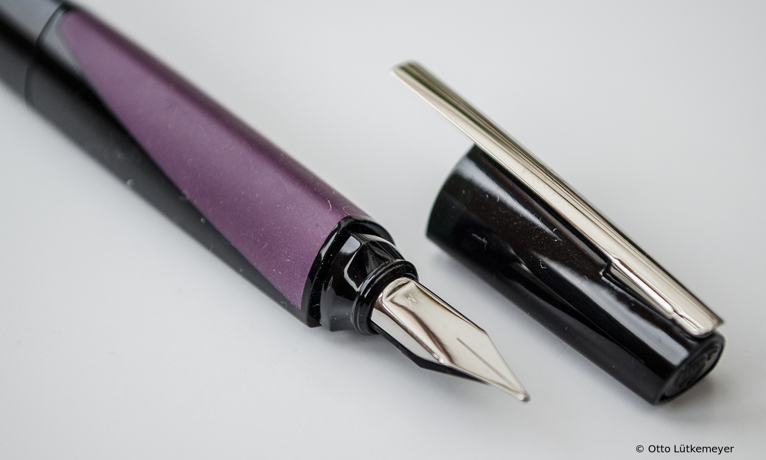 A conspicuous feature of these two fountain pens are 5 ink windows in the barrel that indicate the level of the inserted ink cartridges.