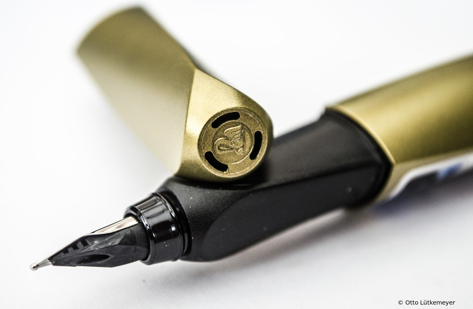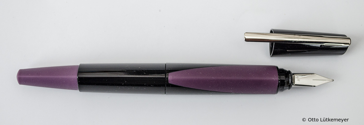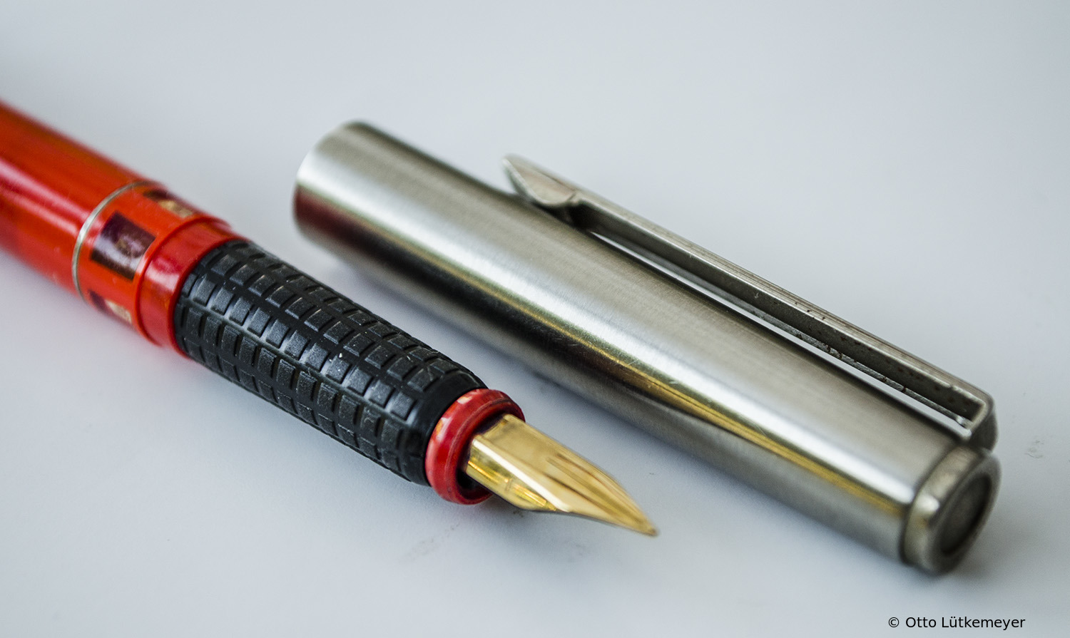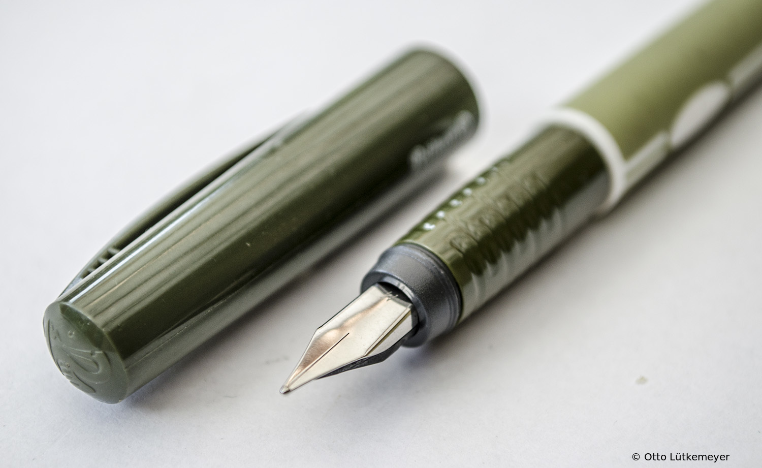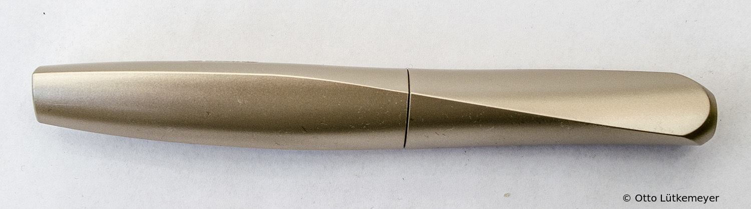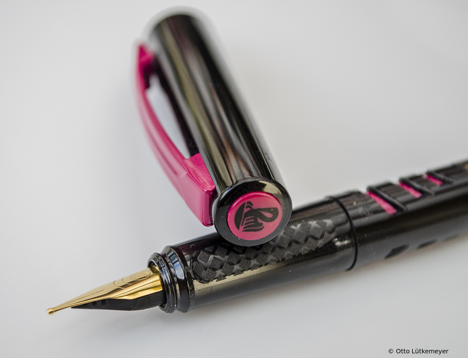 A conspicuous feature of these two fountain pens are 5 ink windows in the barrel that indicate the level of the inserted ink cartridges.