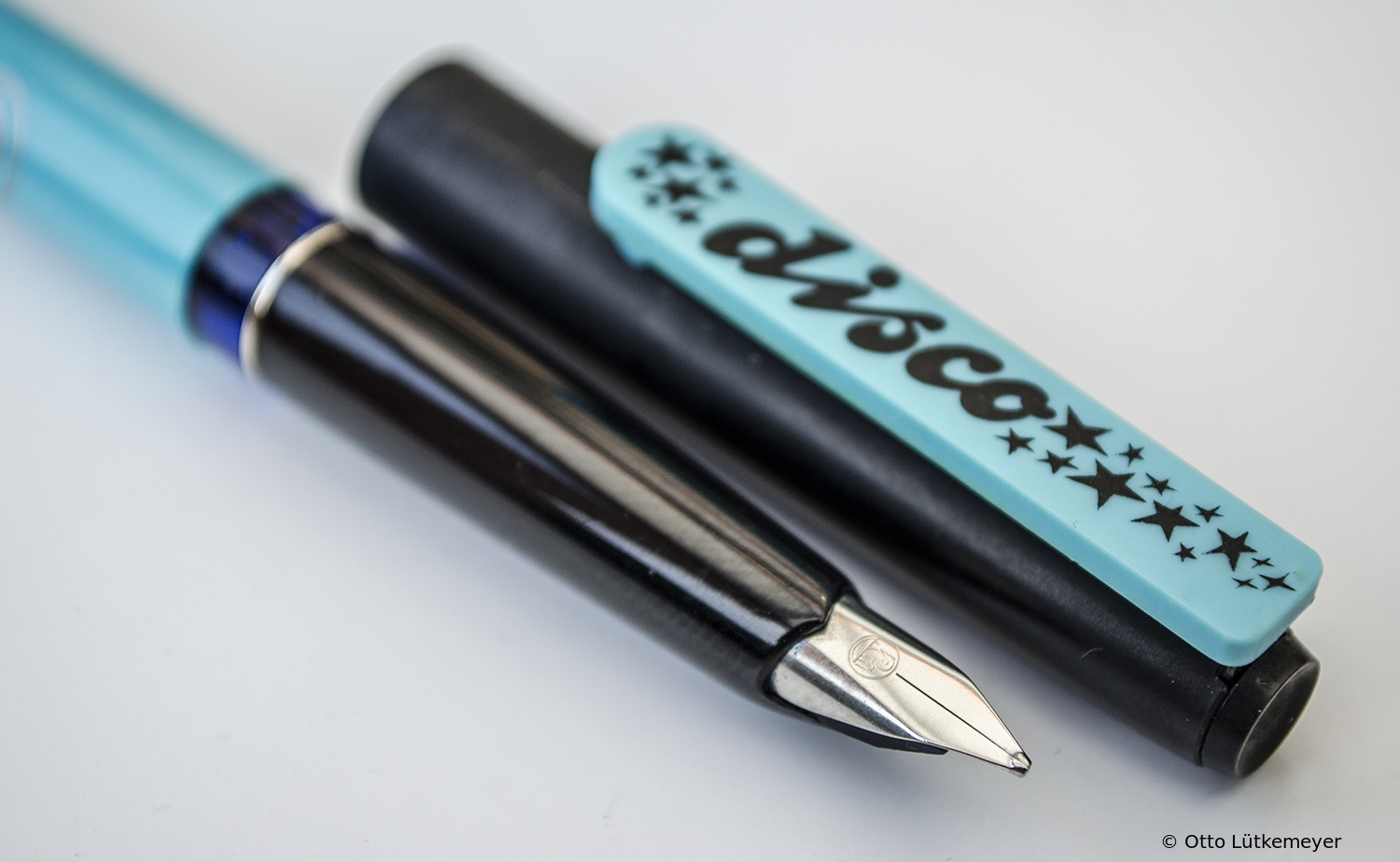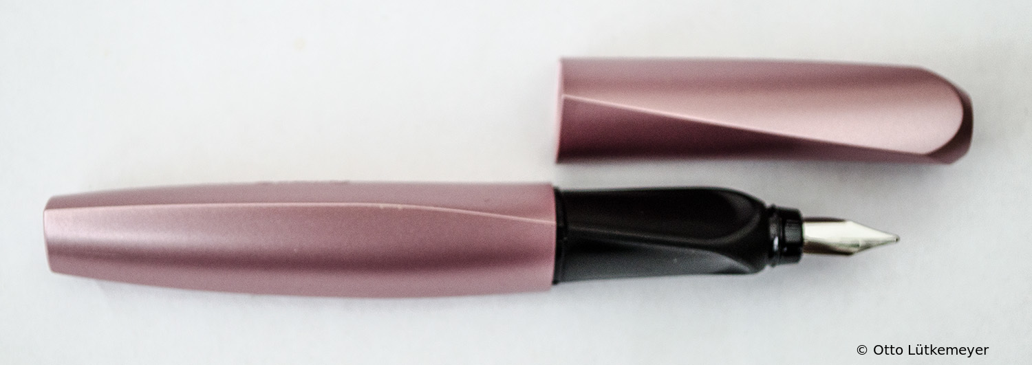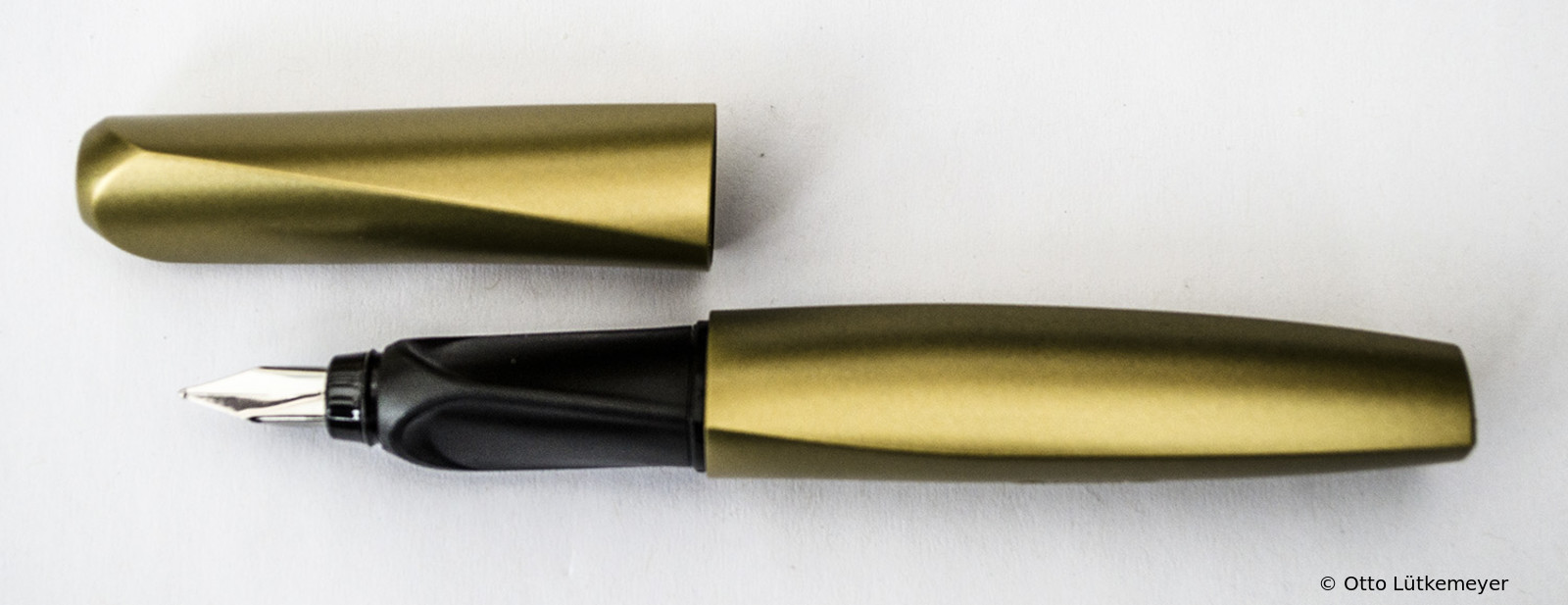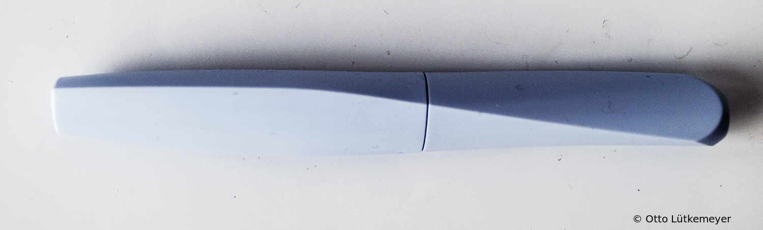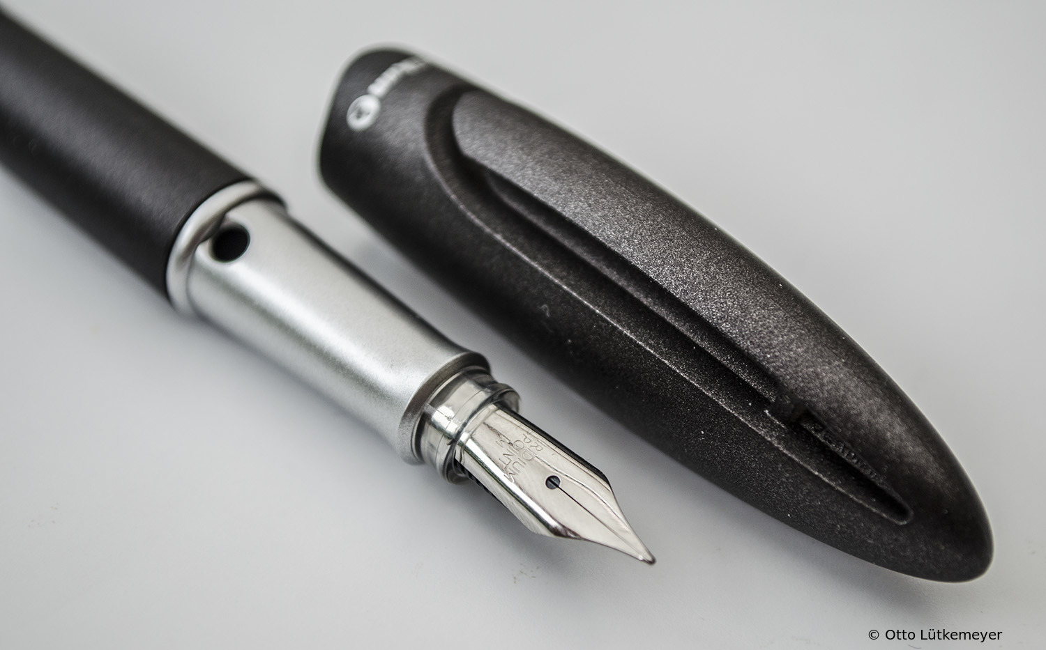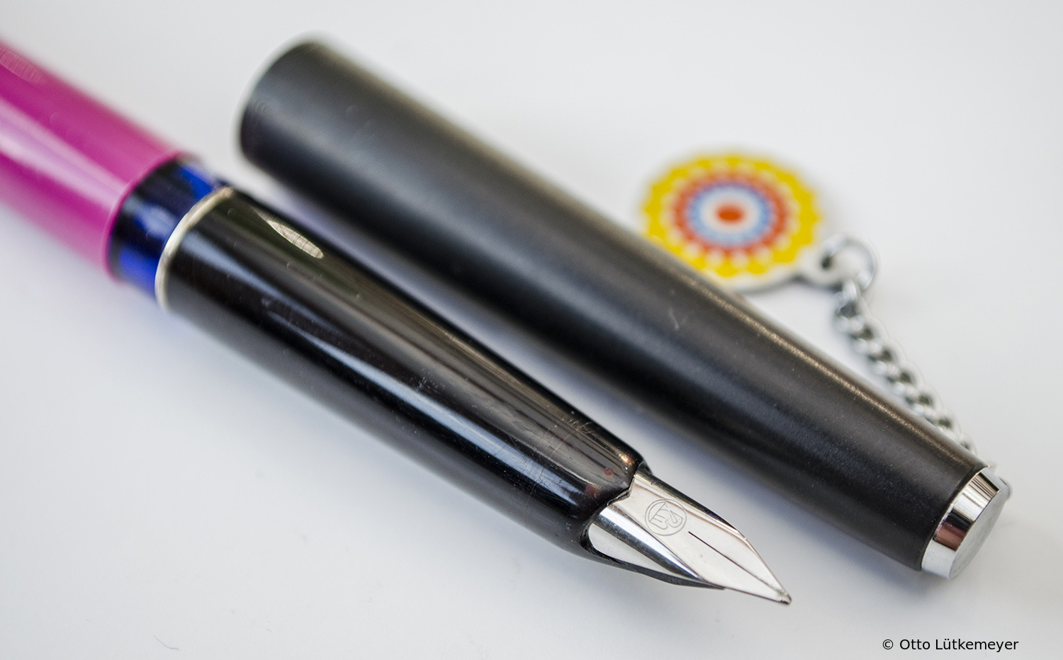 A conspicuous feature of these two fountain pens are 5 ink windows in the barrel that indicate the level of the inserted ink cartridges.