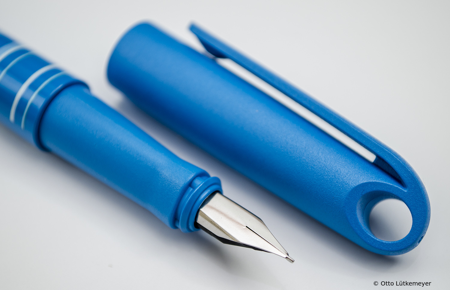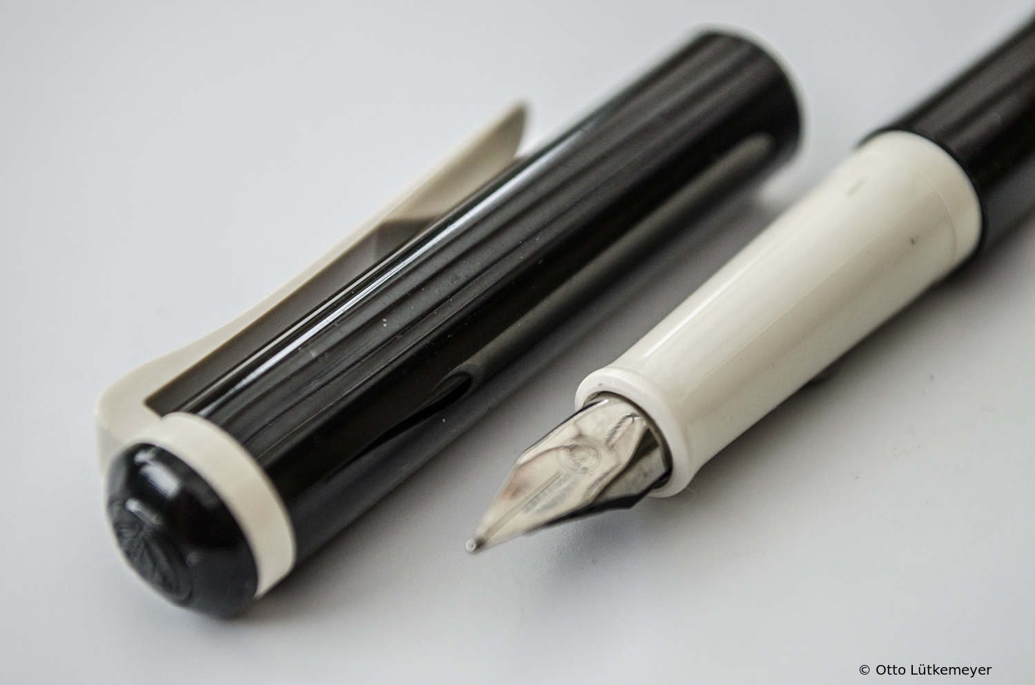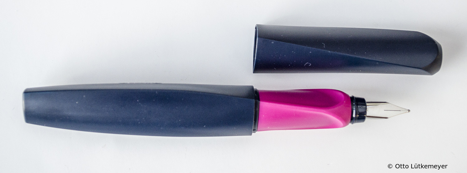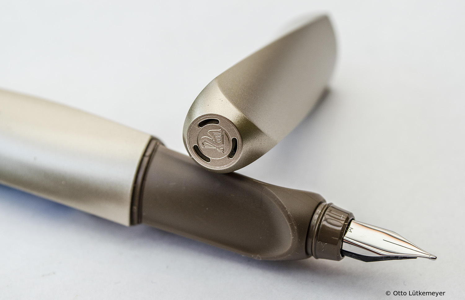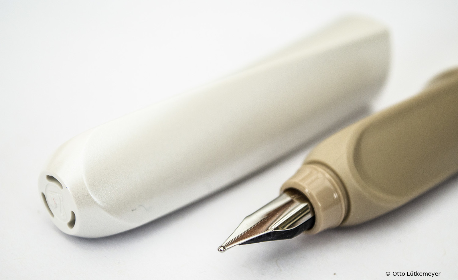 A conspicuous feature of these two fountain pens are 5 ink windows in the barrel that indicate the level of the inserted ink cartridges.
