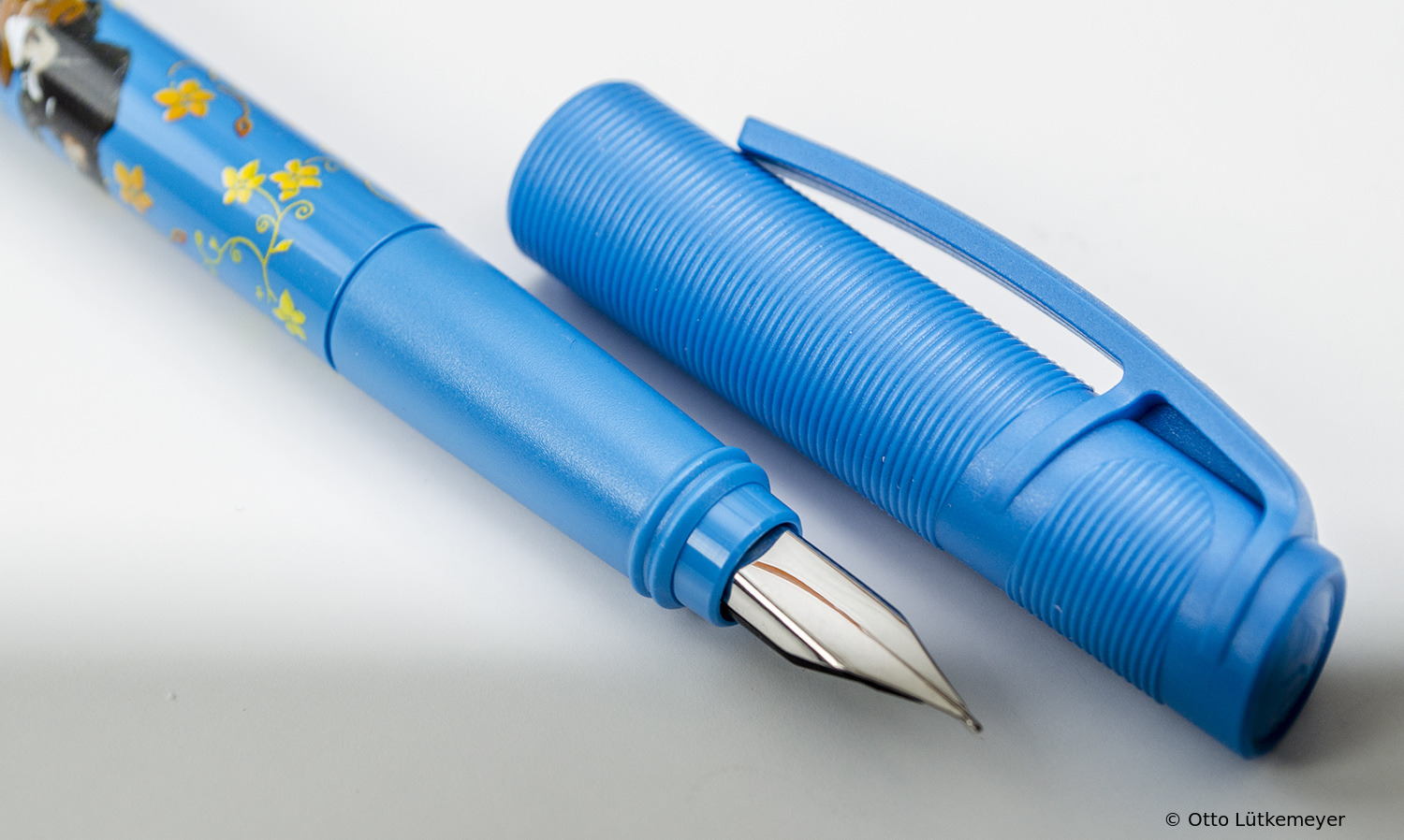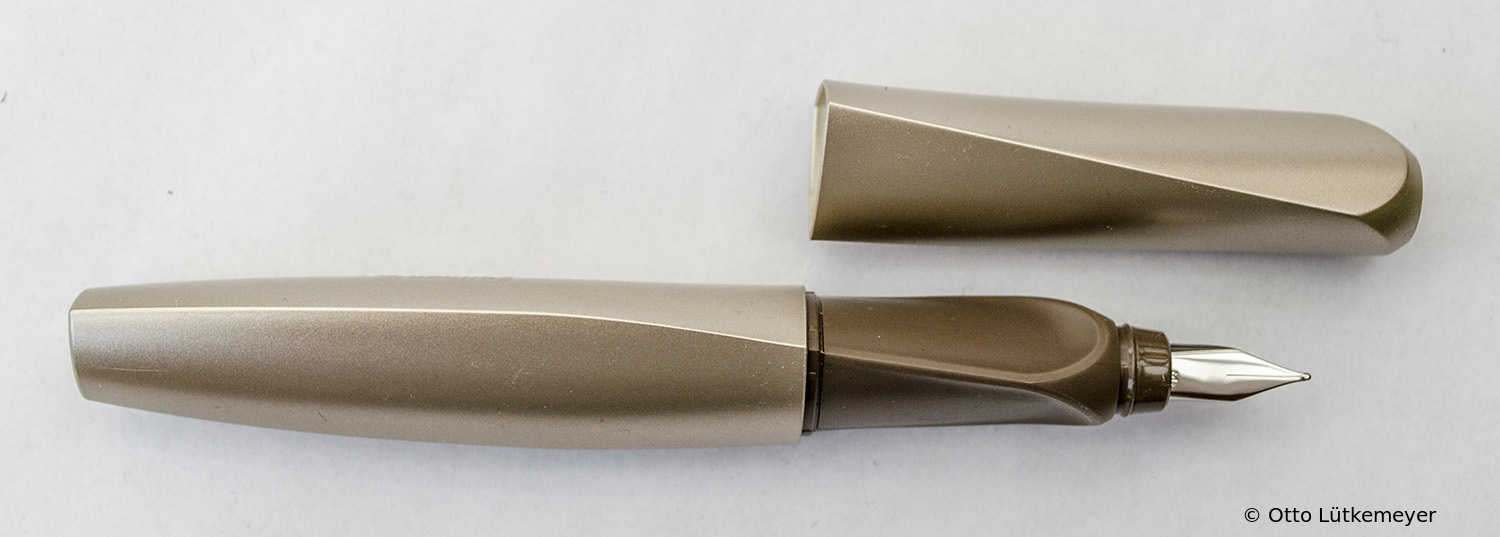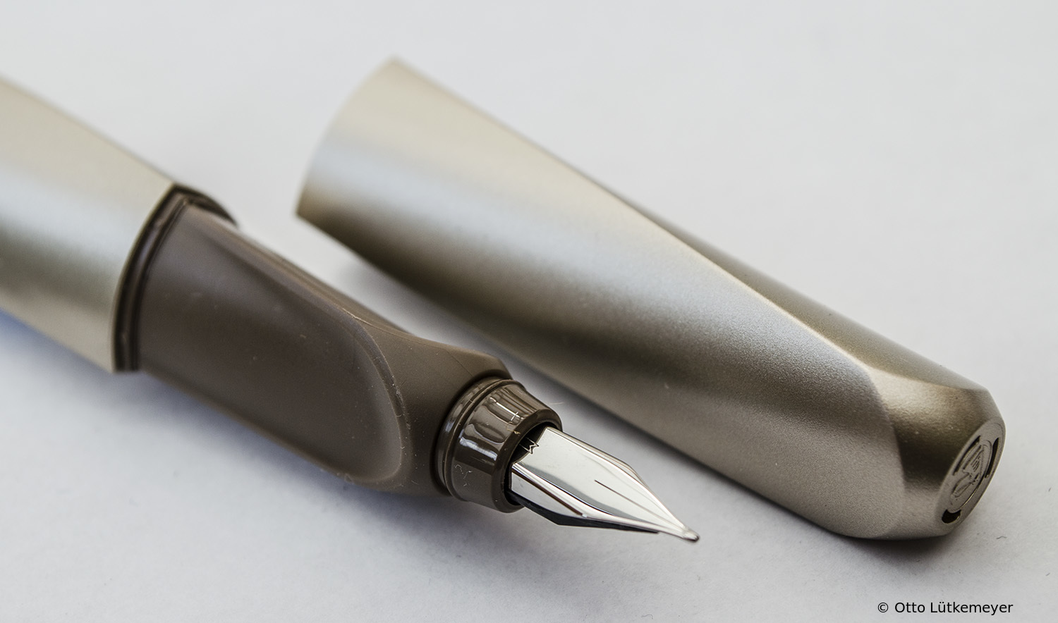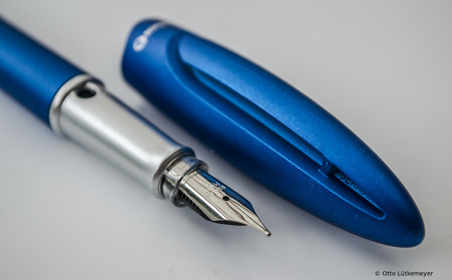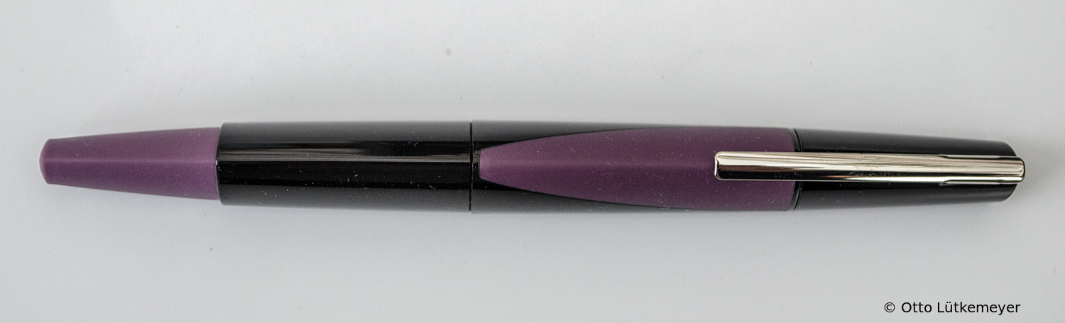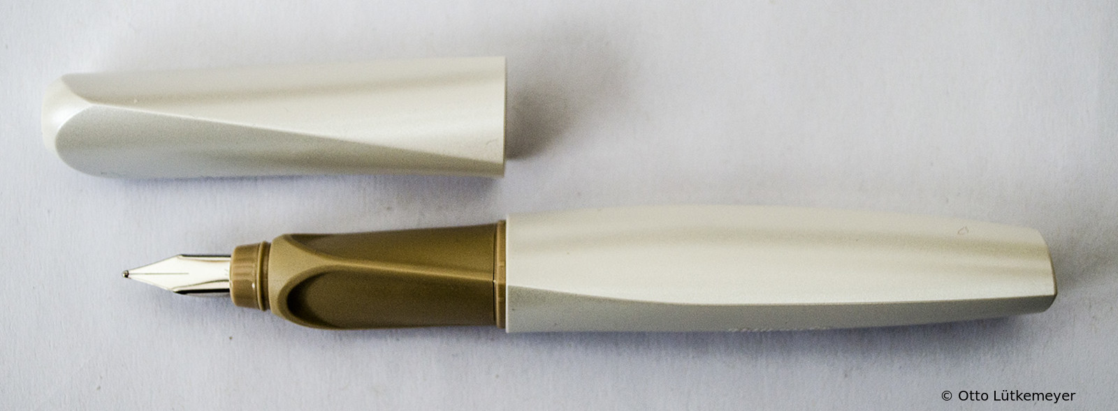 A conspicuous feature of these two fountain pens are 5 ink windows in the barrel that indicate the level of the inserted ink cartridges.