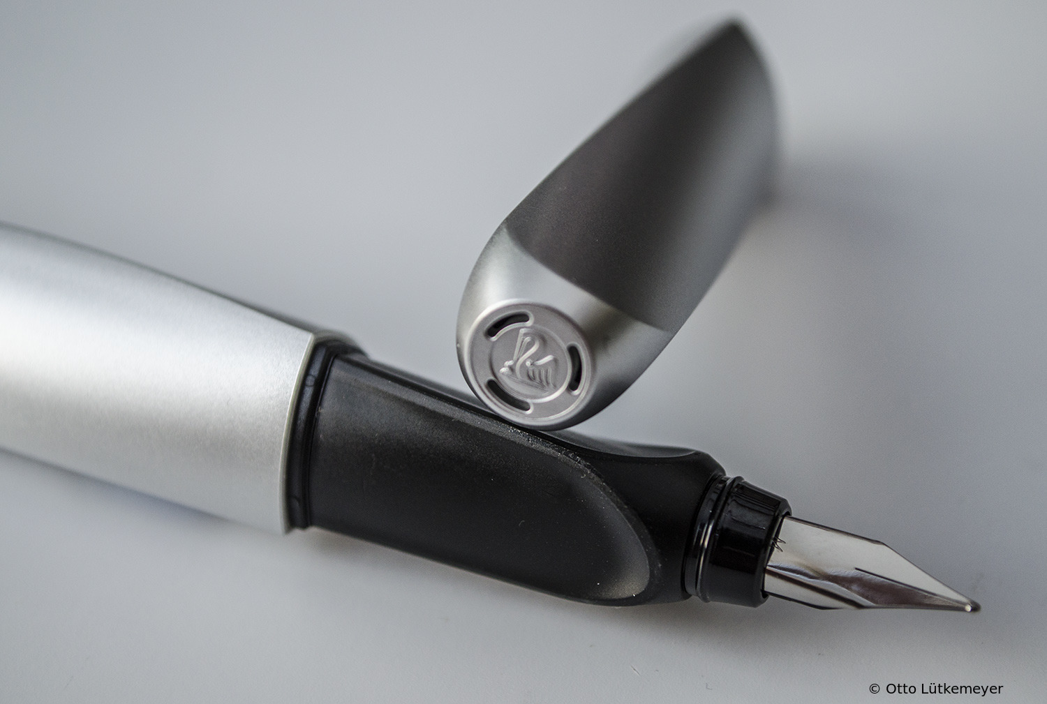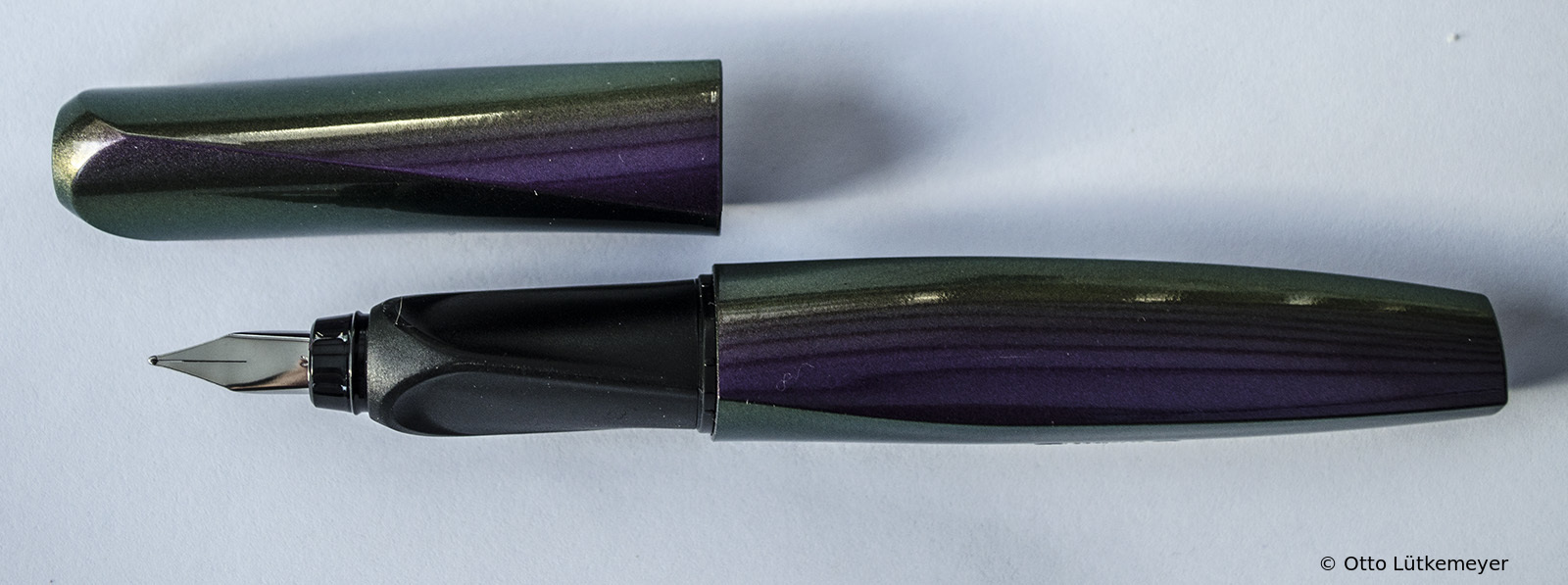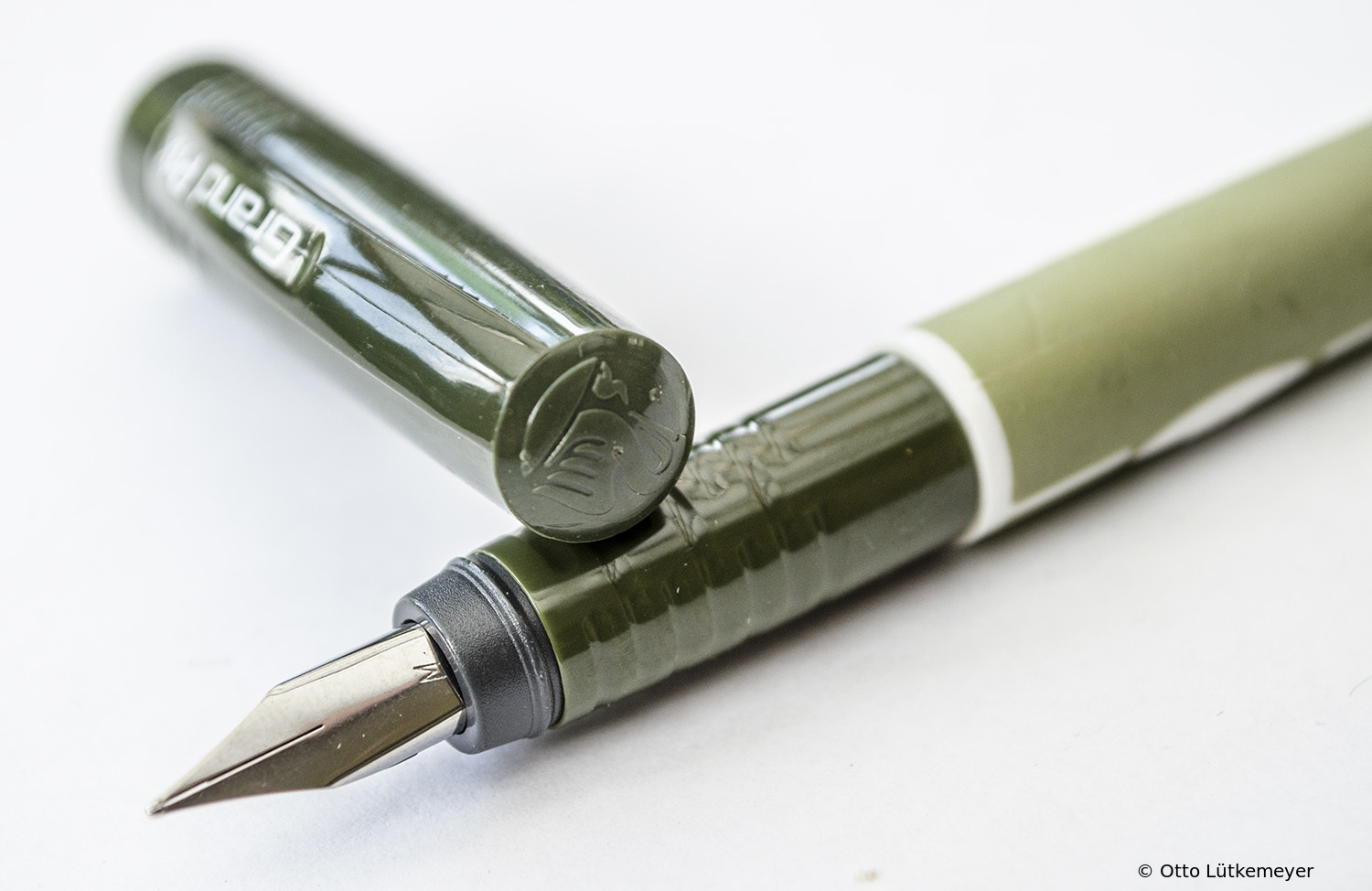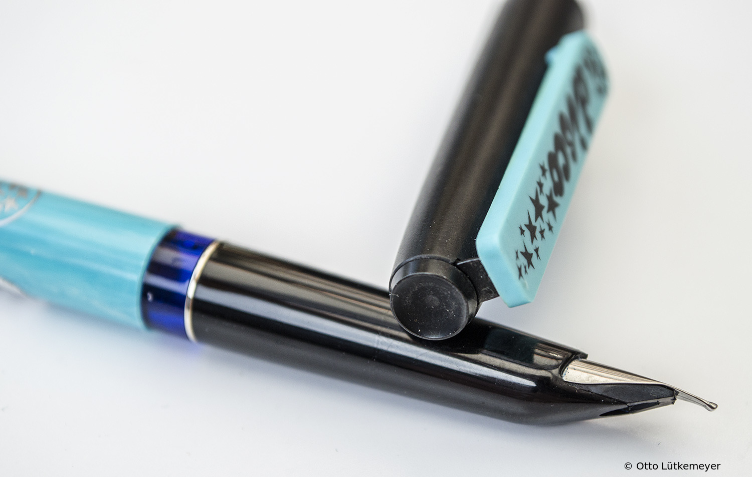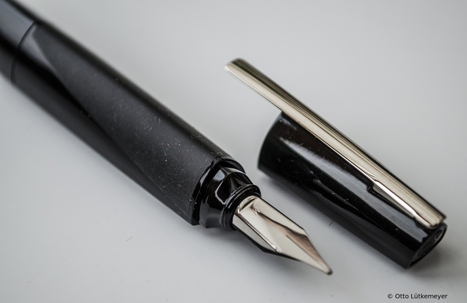 A conspicuous feature of these two fountain pens are 5 ink windows in the barrel that indicate the level of the inserted ink cartridges.