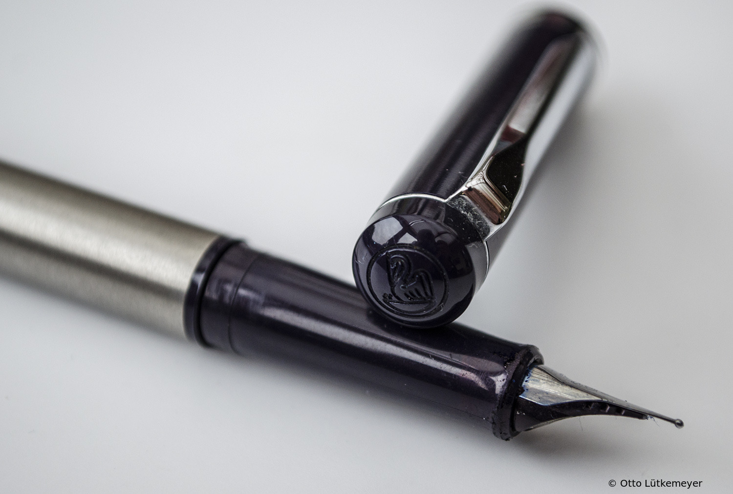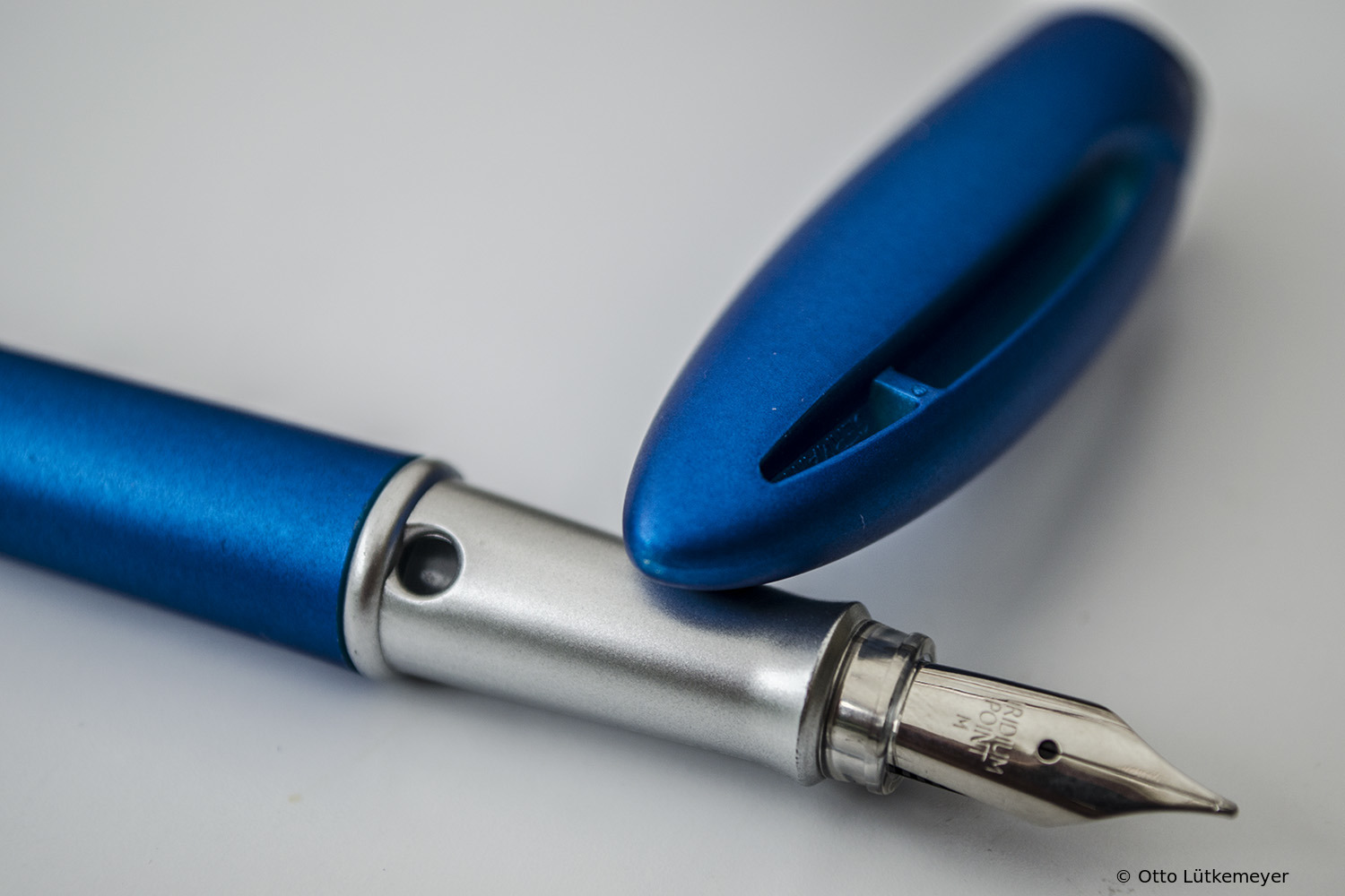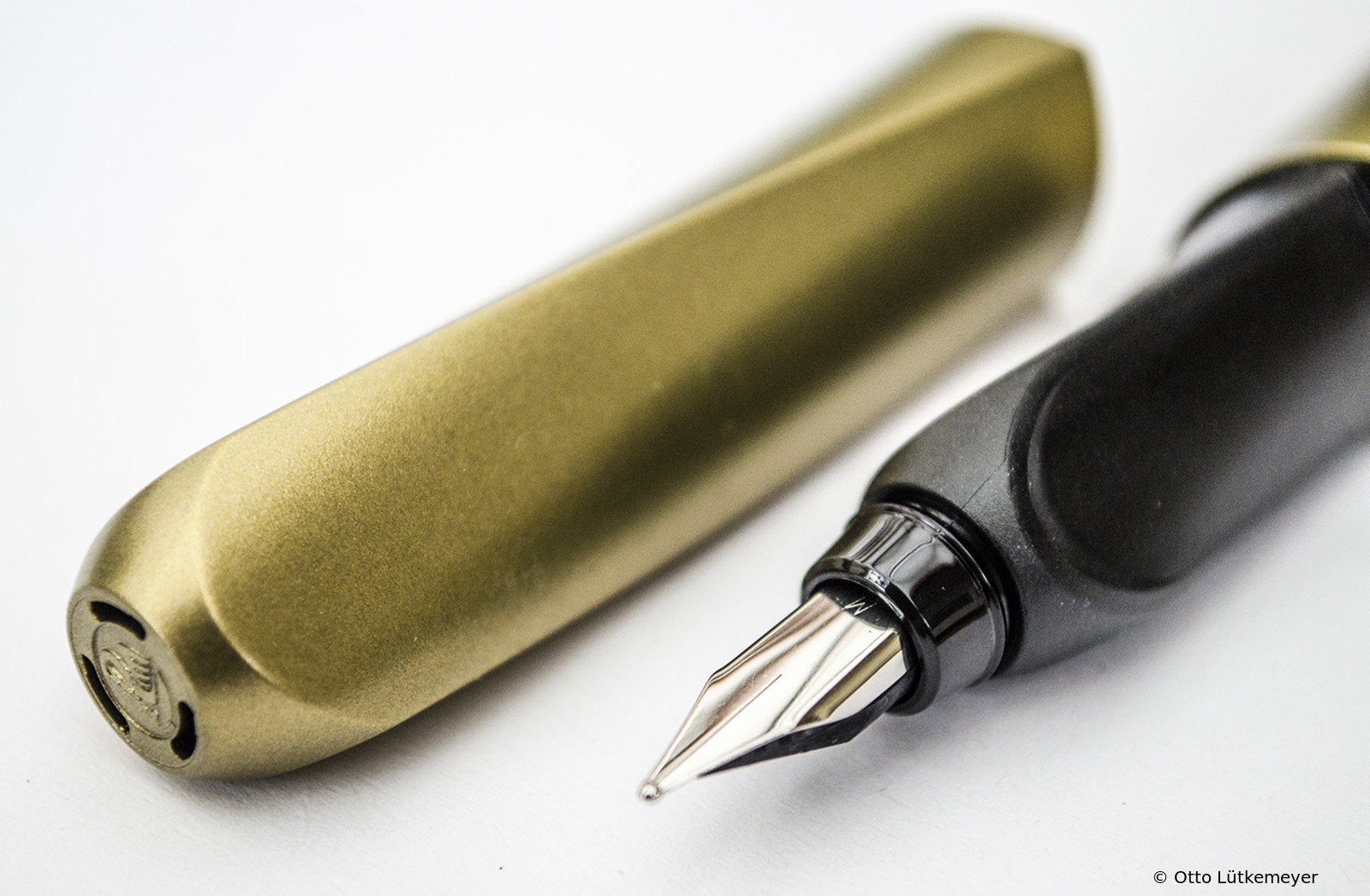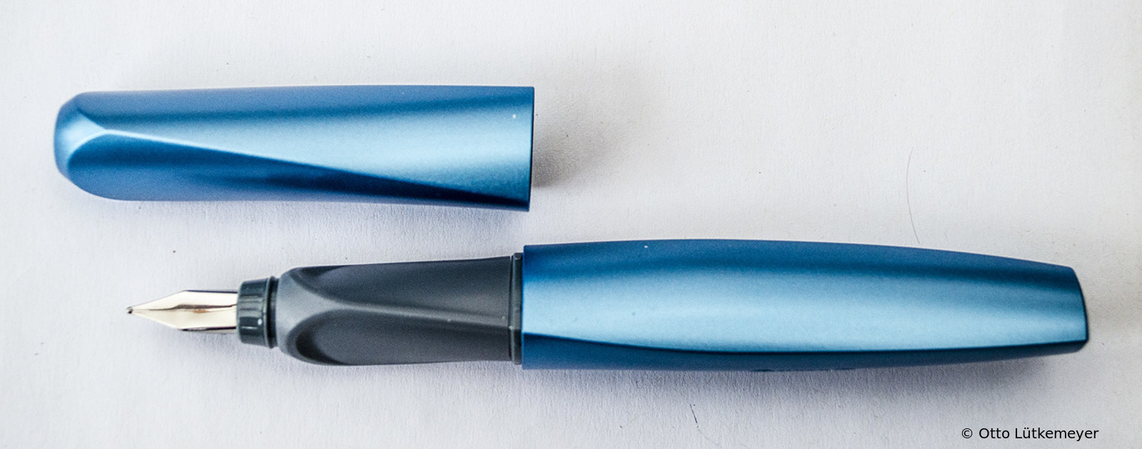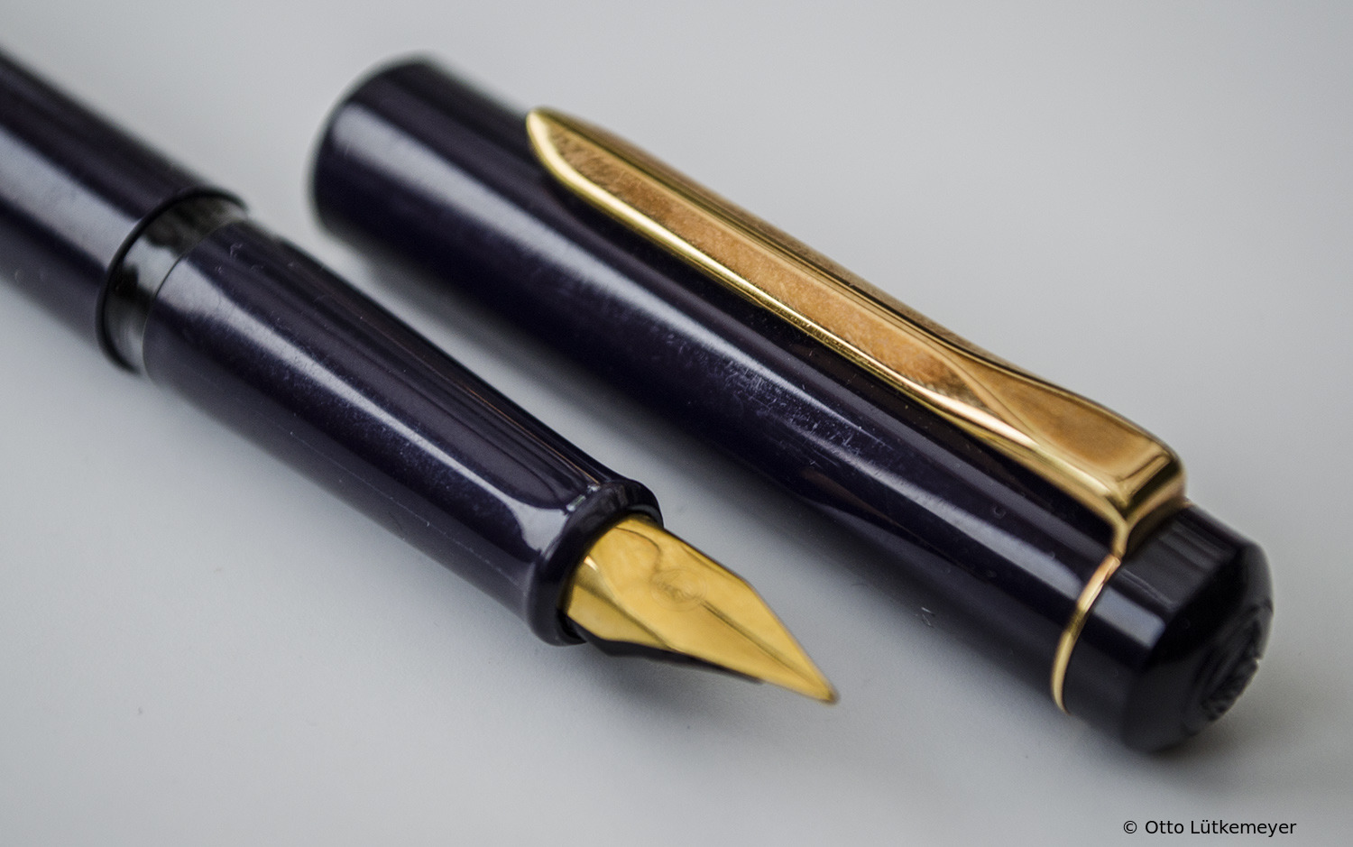 A conspicuous feature of these two fountain pens are 5 ink windows in the barrel that indicate the level of the inserted ink cartridges.