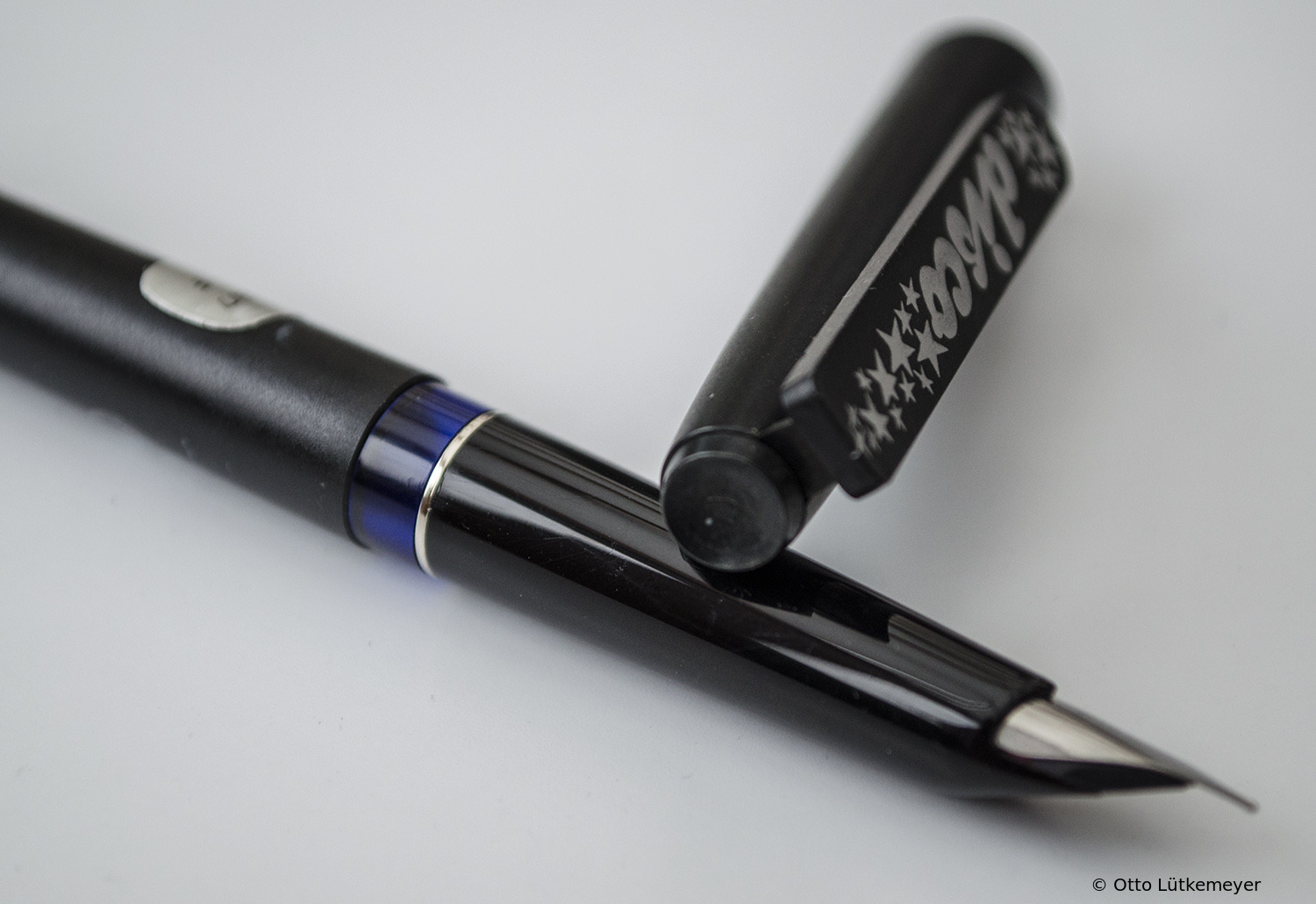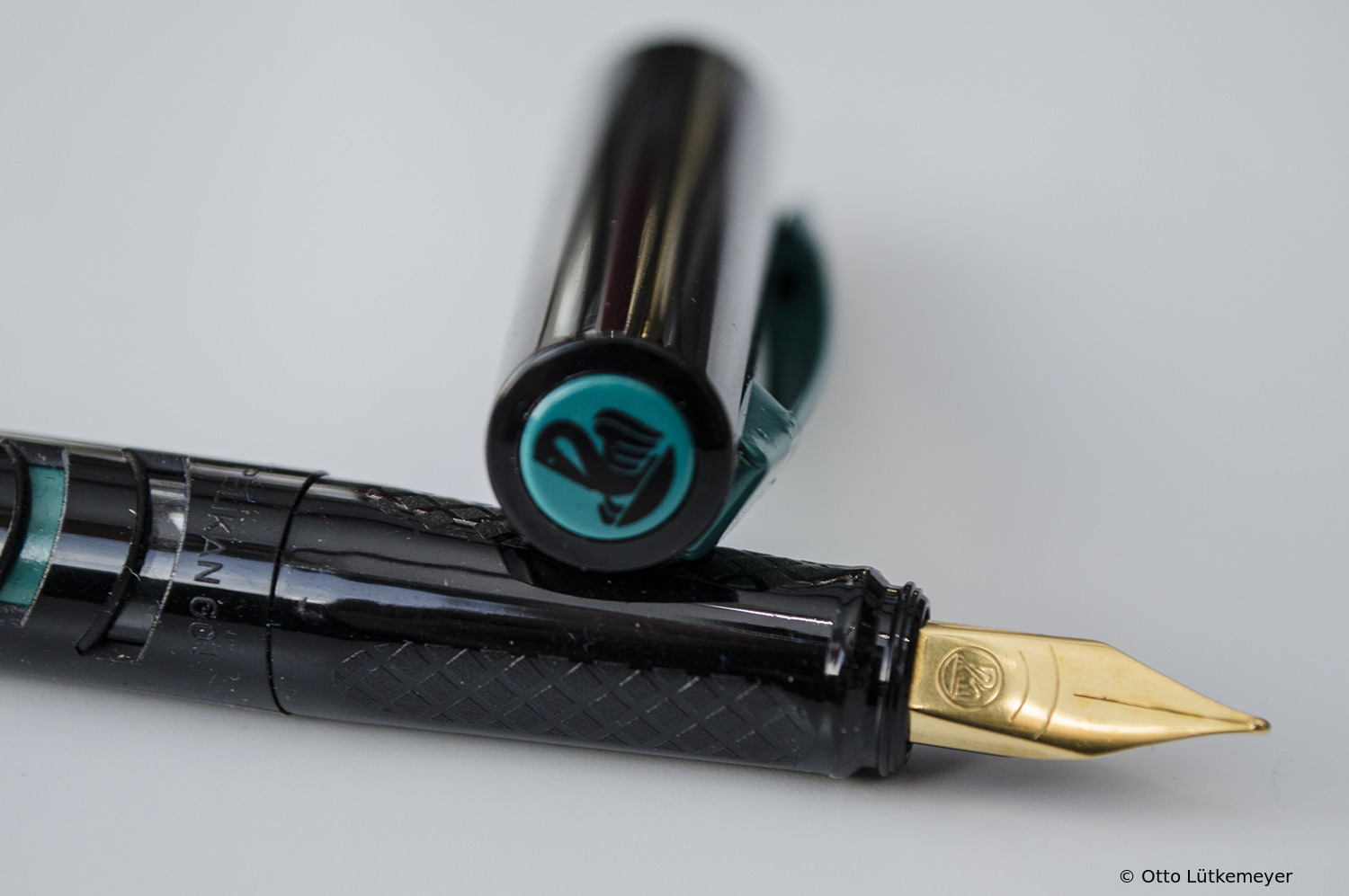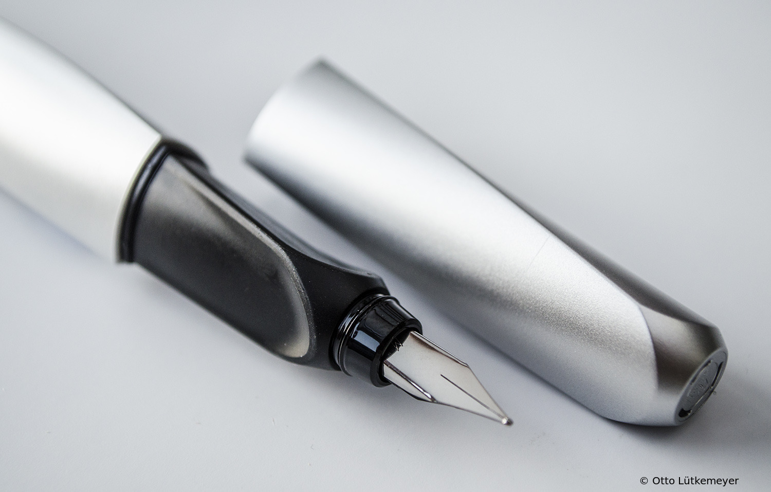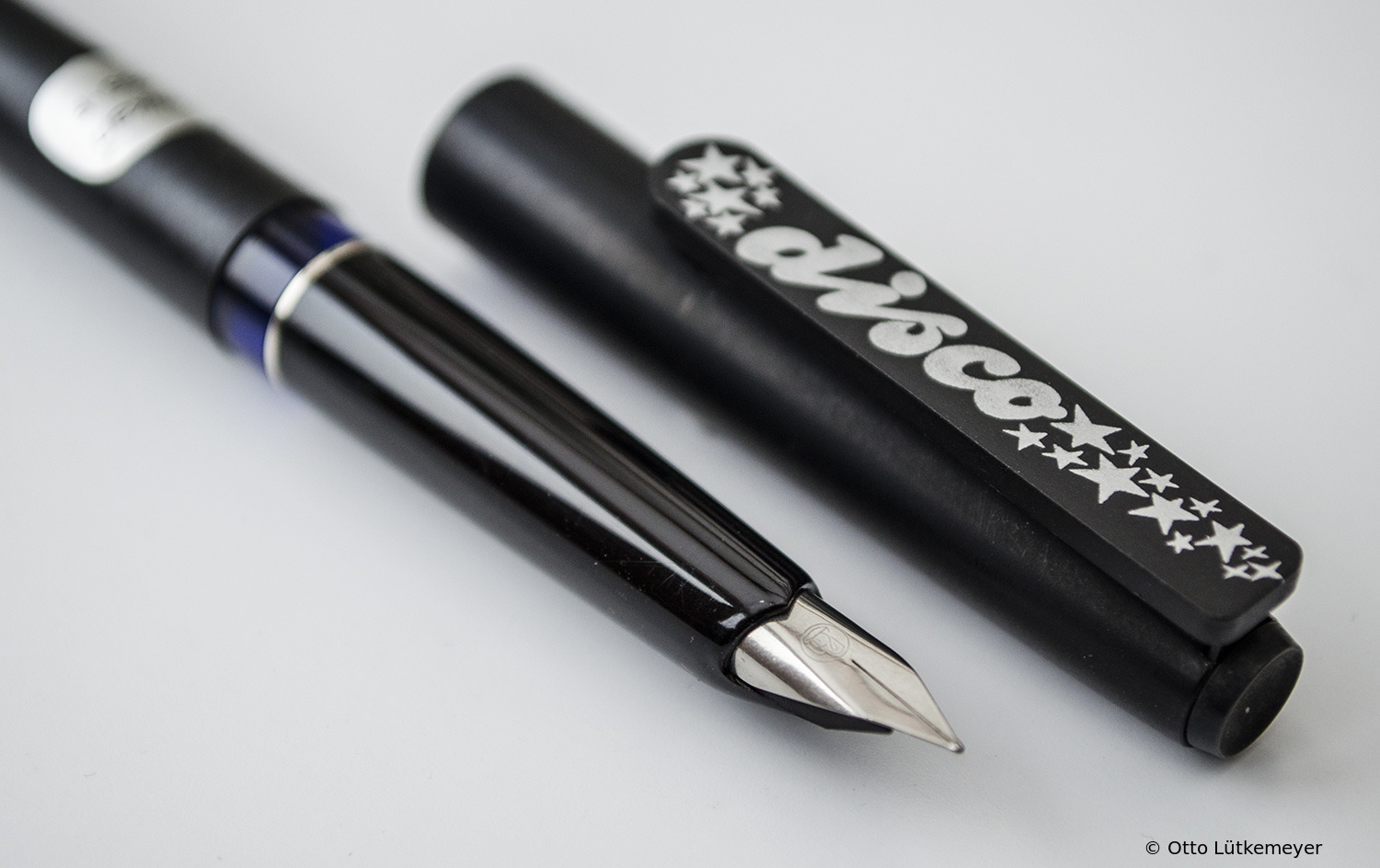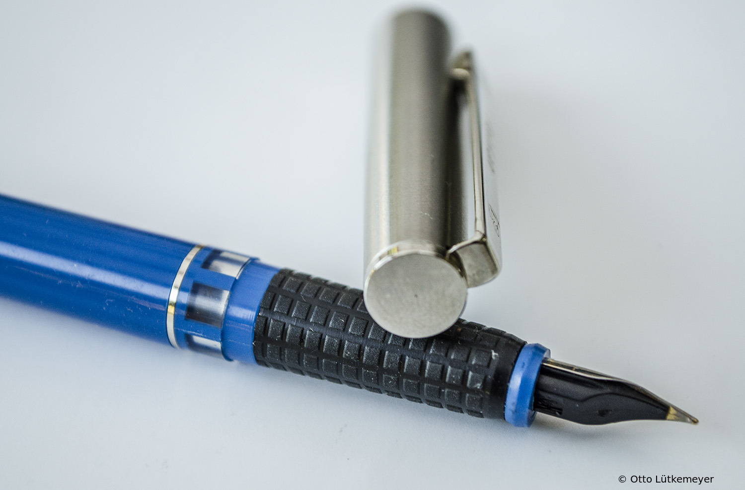 A conspicuous feature of these two fountain pens are 5 ink windows in the barrel that indicate the level of the inserted ink cartridges.