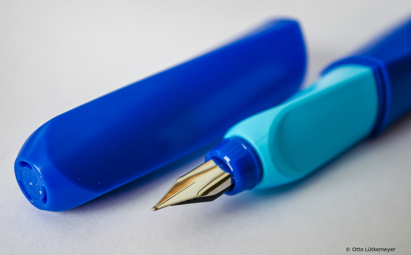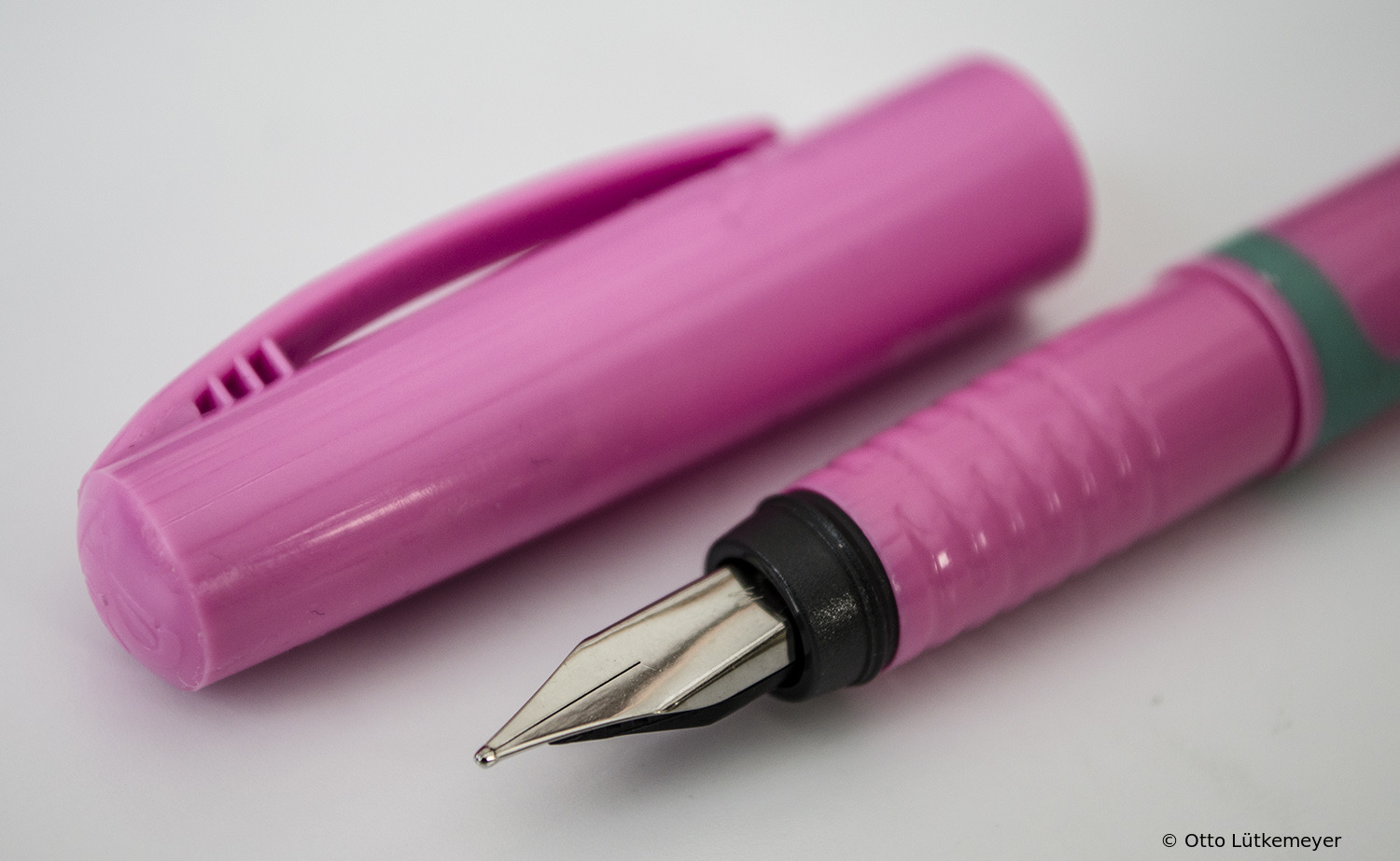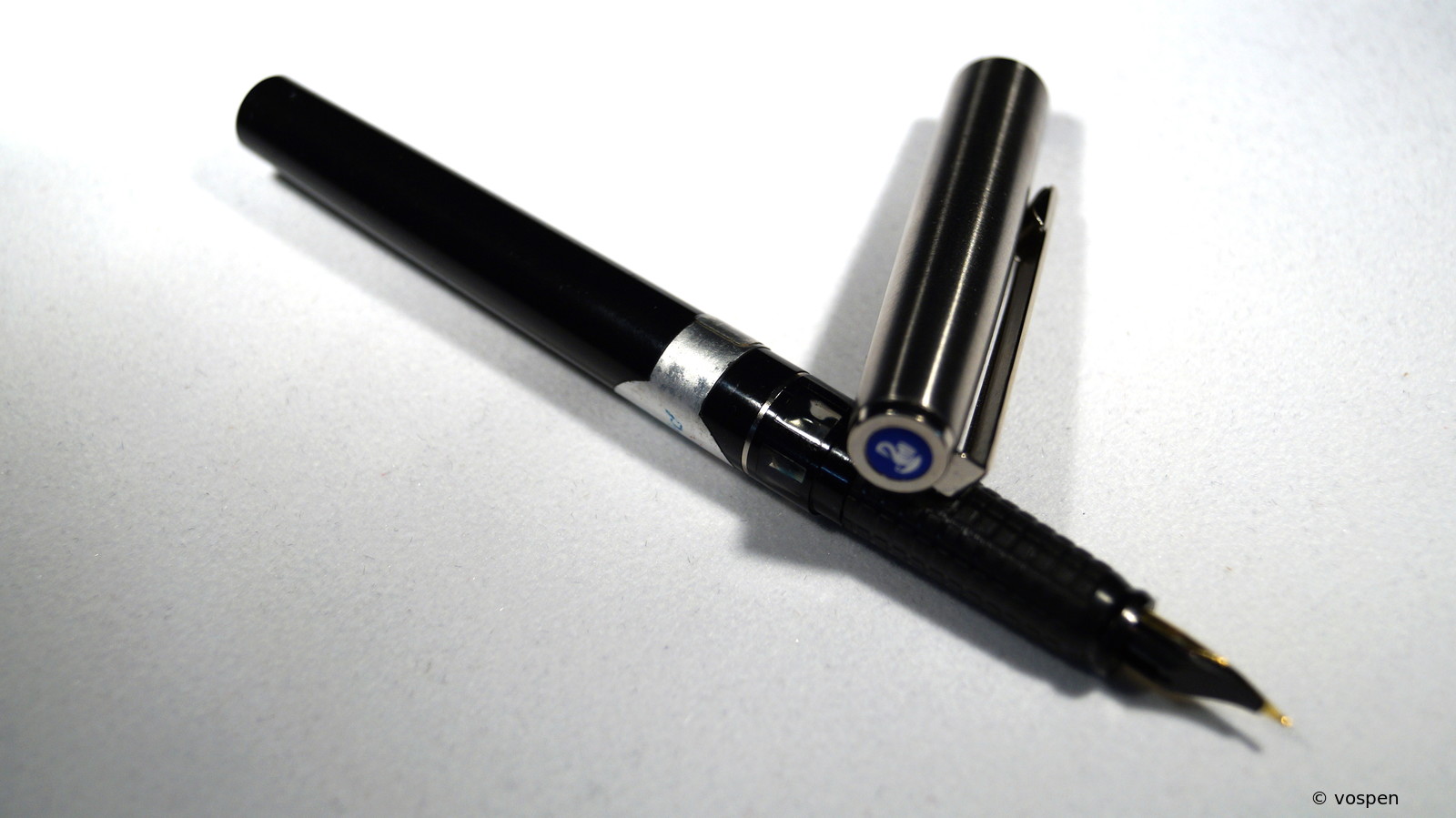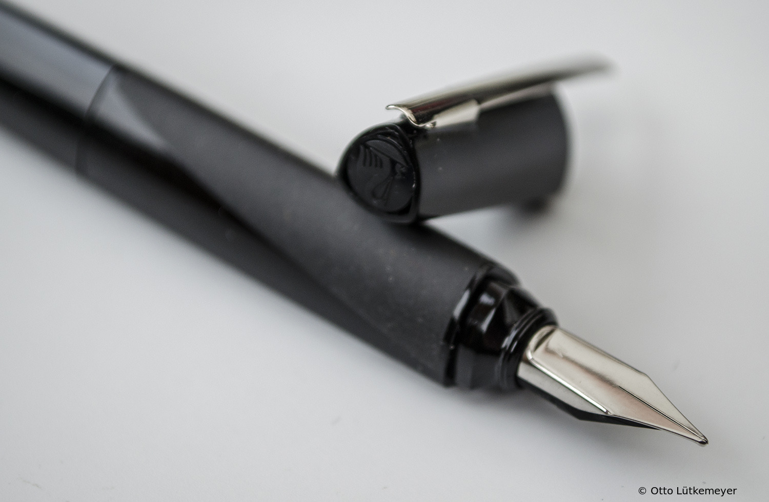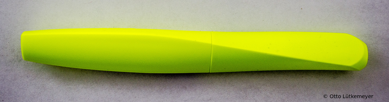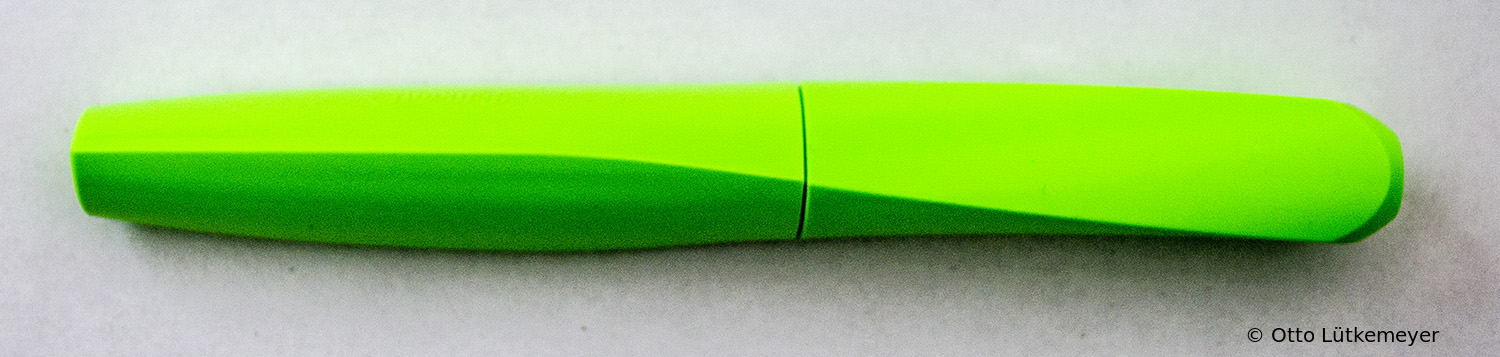 A conspicuous feature of these two fountain pens are 5 ink windows in the barrel that indicate the level of the inserted ink cartridges.