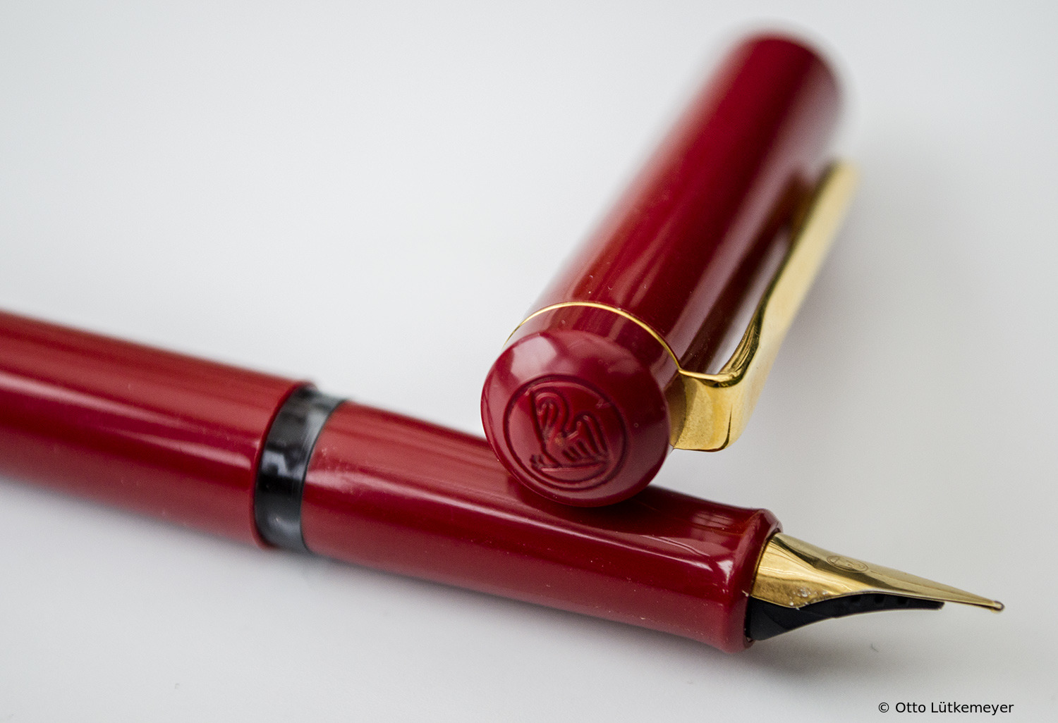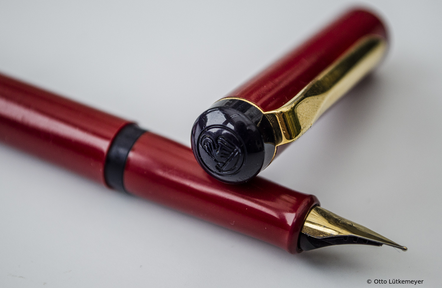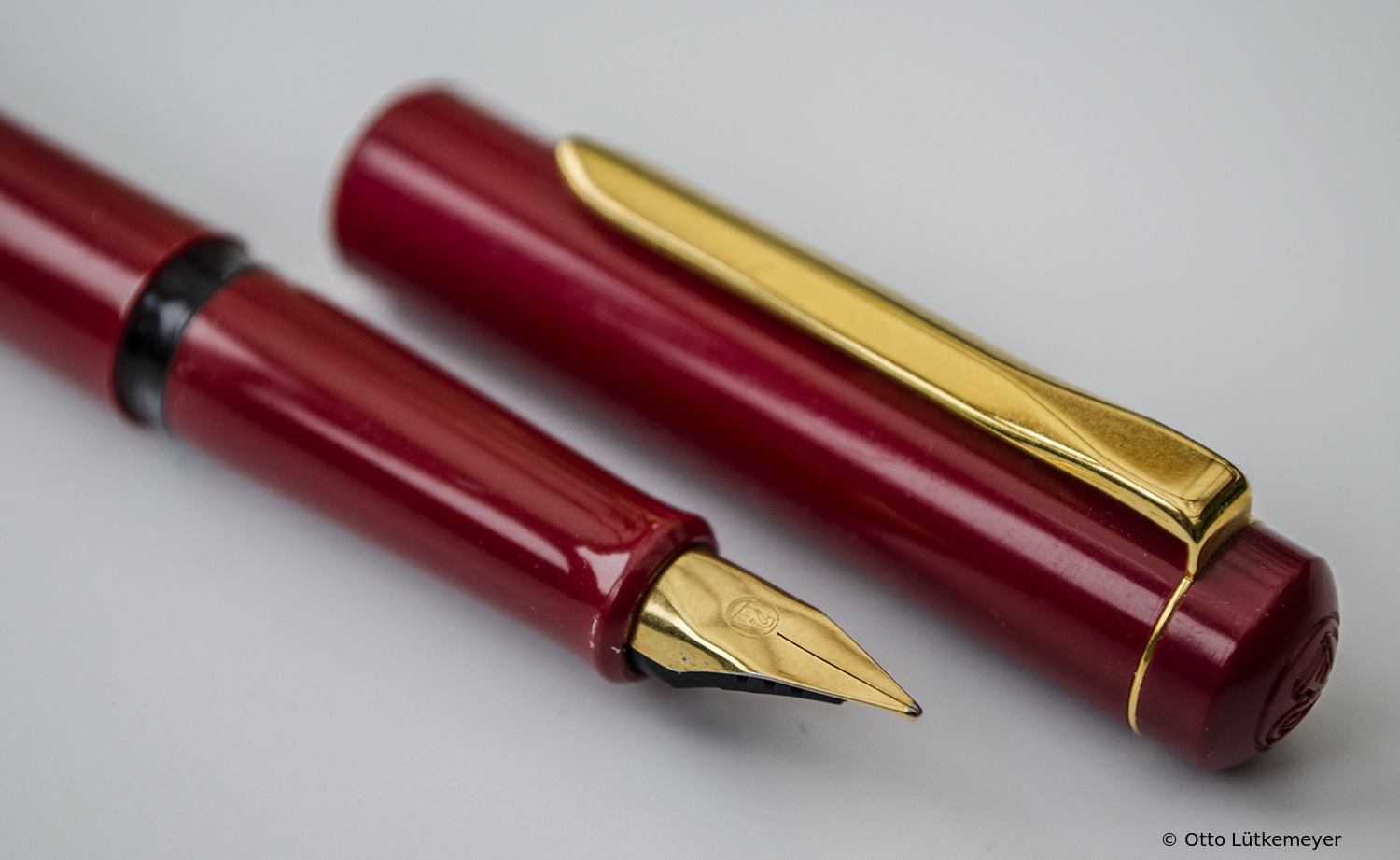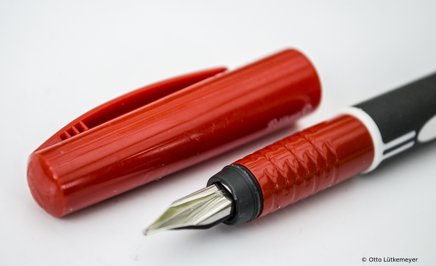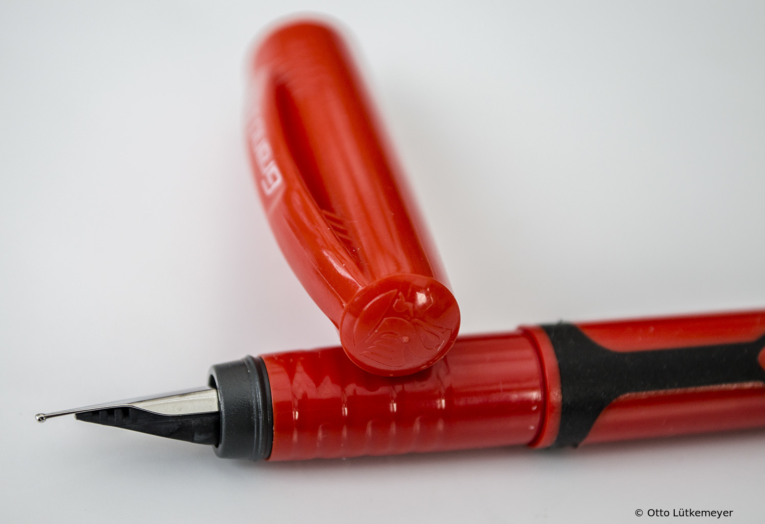 You might think at first sight that these are two identical models in different colors. But taking a closer look we have already seen some differences. If both fountain pens are put side by side, you can see that the decorative ring between the end of the barrel and the grip section does not lie at the same height. In fact, the barrel end of the red fountain pen is shorter, which is offset by a longer ink window in the barrel, so that both fountain pens have the same overall length. Also, the cap top of the pen is slightly different.