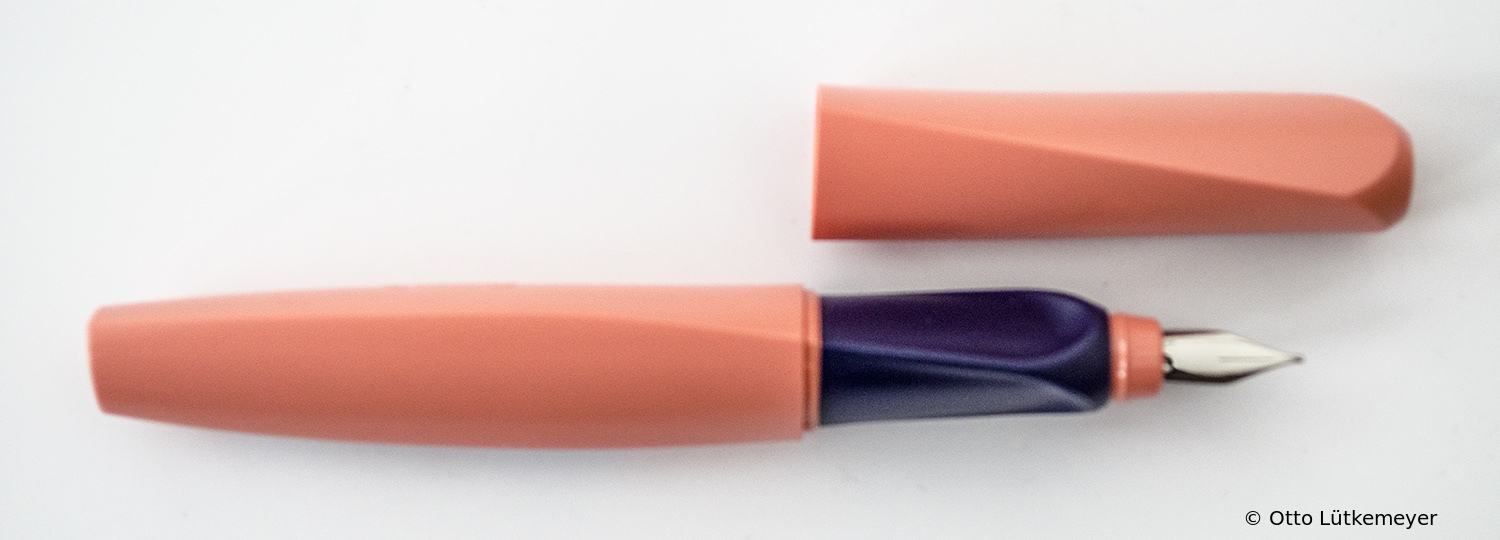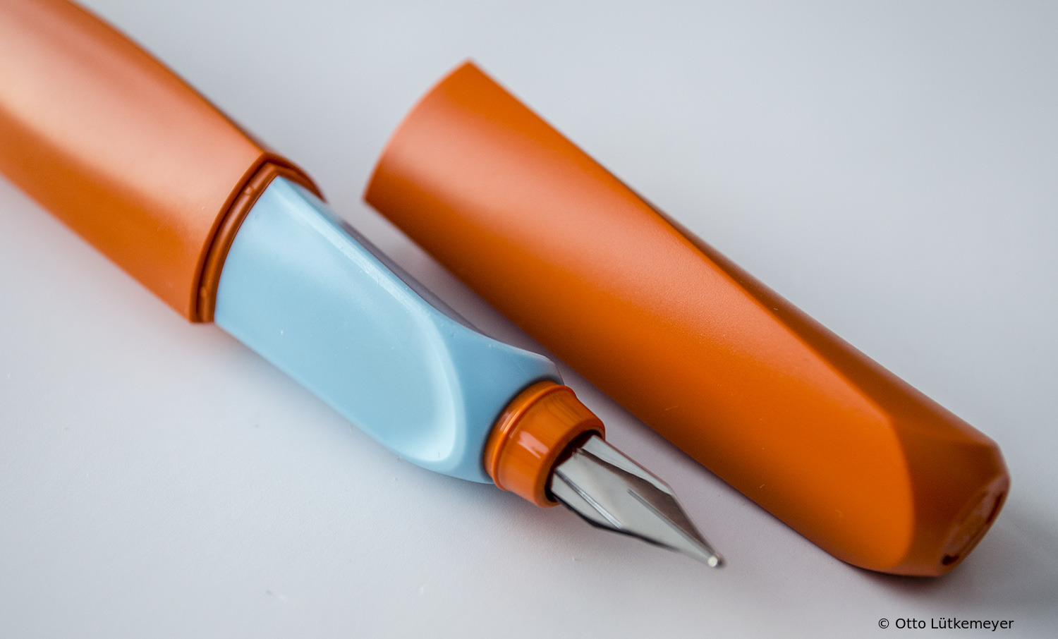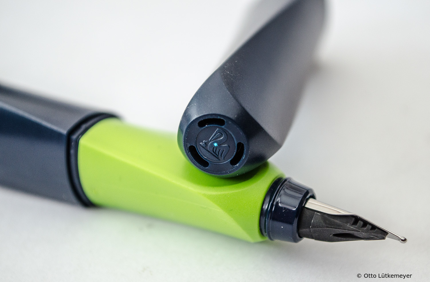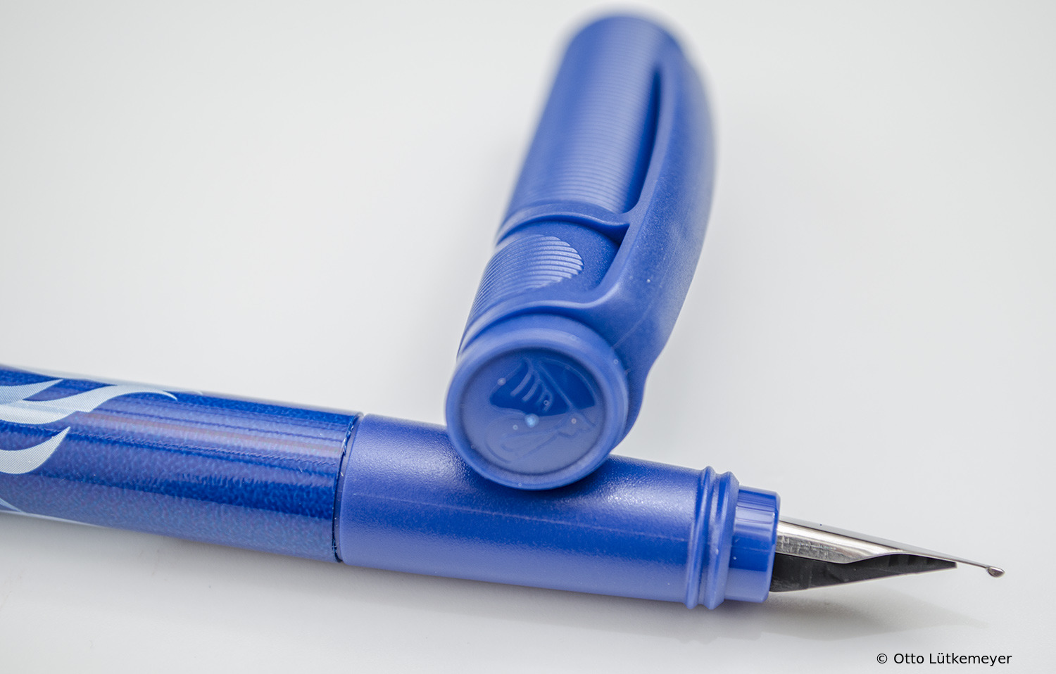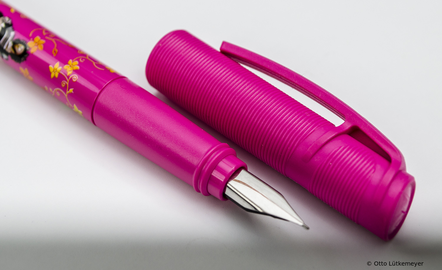 You might think at first sight that these are two identical models in different colors. But taking a closer look we have already seen some differences. If both fountain pens are put side by side, you can see that the decorative ring between the end of the barrel and the grip section does not lie at the same height. In fact, the barrel end of the red fountain pen is shorter, which is offset by a longer ink window in the barrel, so that both fountain pens have the same overall length. Also, the cap top of the pen is slightly different.