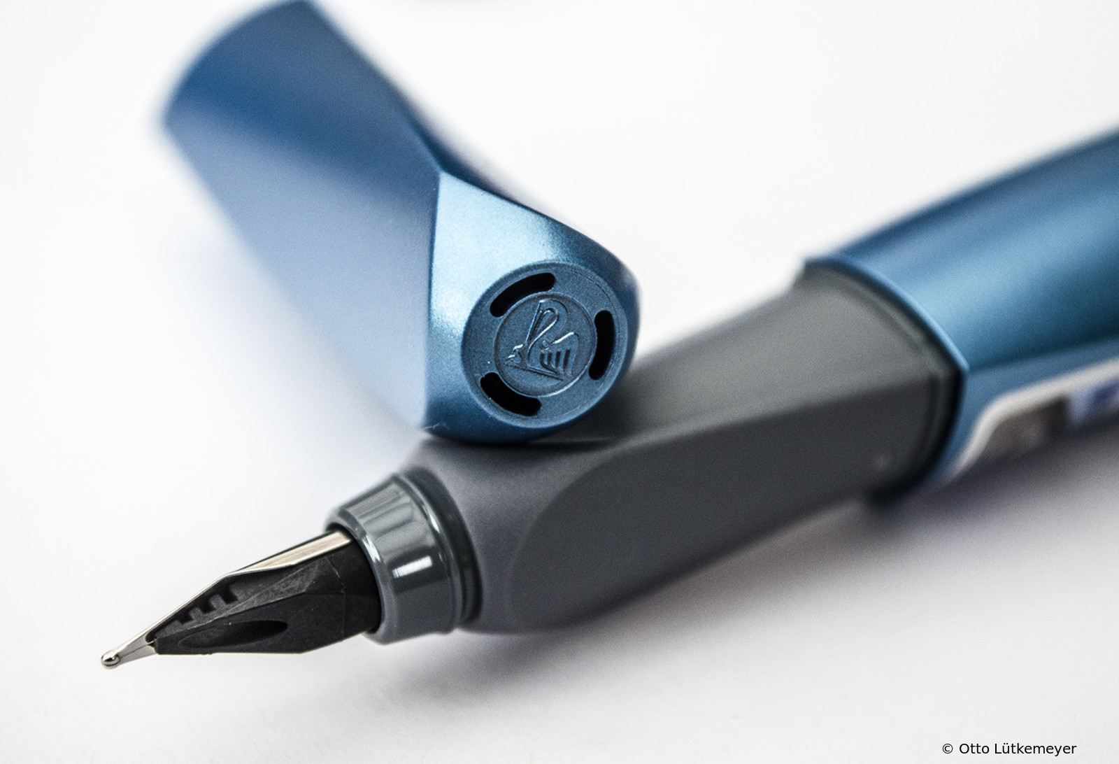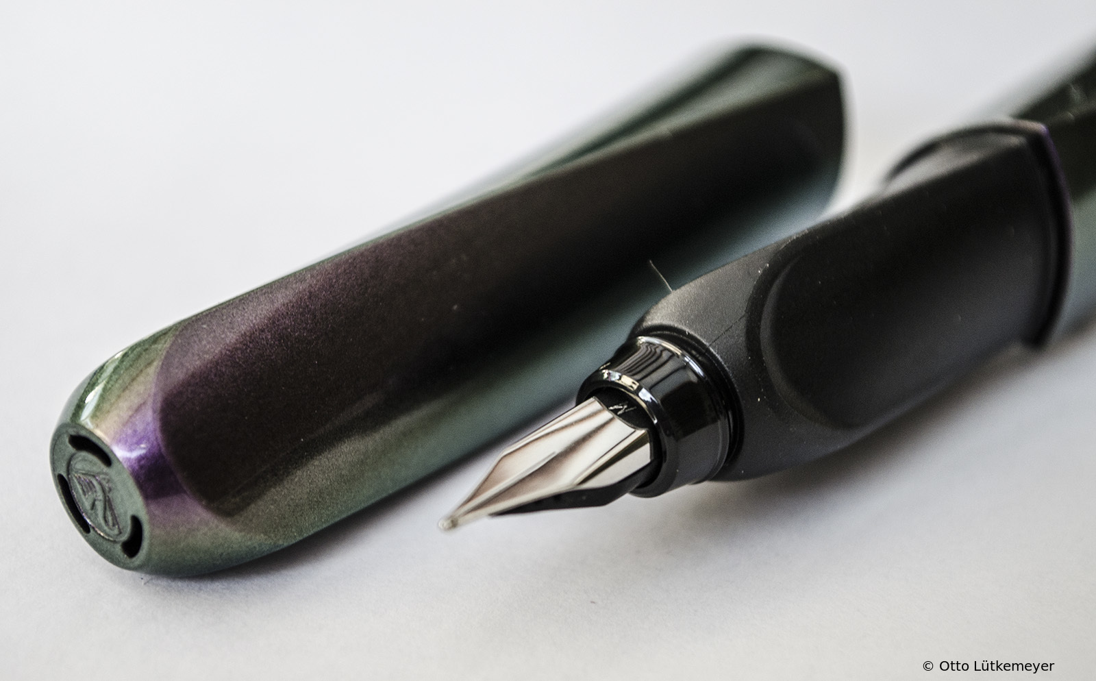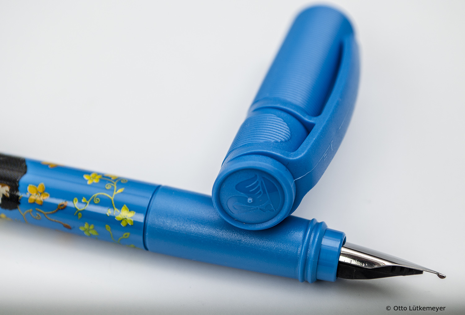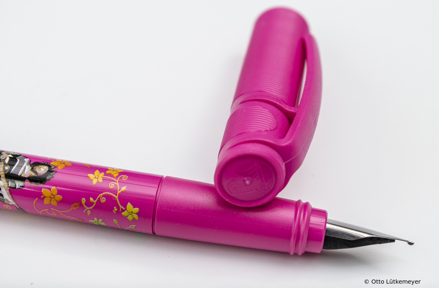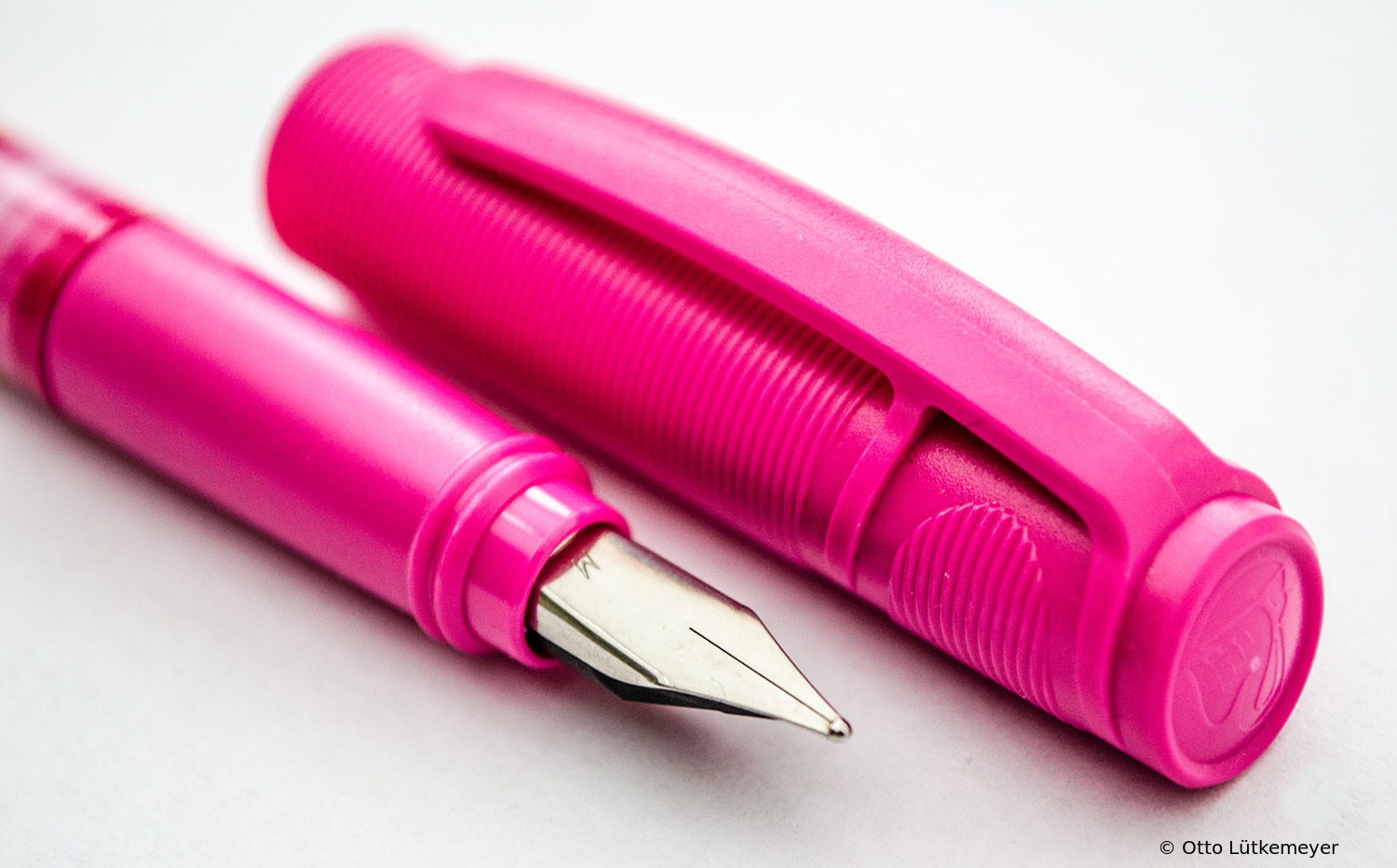 You might think at first sight that these are two identical models in different colors. But taking a closer look we have already seen some differences. If both fountain pens are put side by side, you can see that the decorative ring between the end of the barrel and the grip section does not lie at the same height. In fact, the barrel end of the red fountain pen is shorter, which is offset by a longer ink window in the barrel, so that both fountain pens have the same overall length. Also, the cap top of the pen is slightly different.