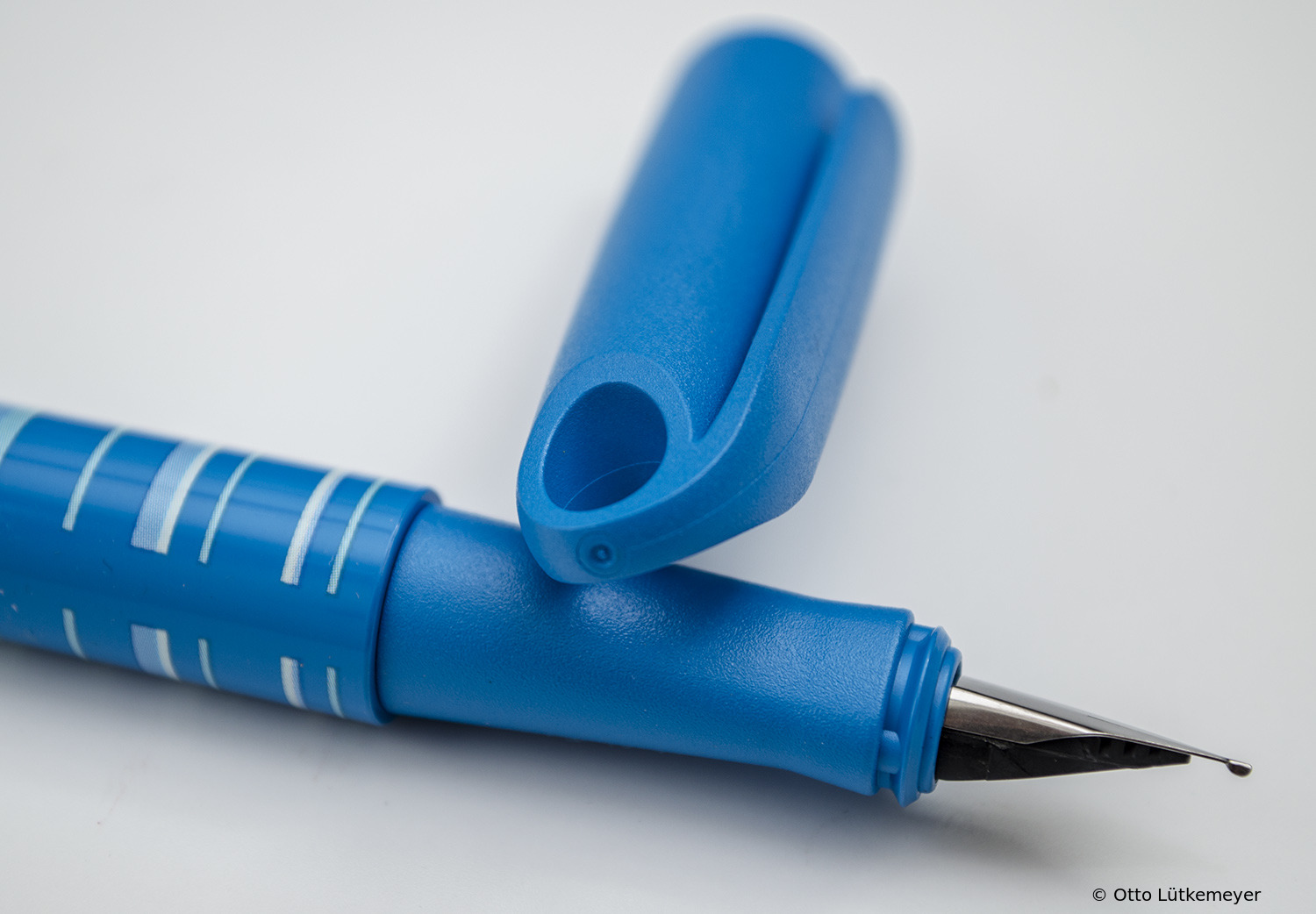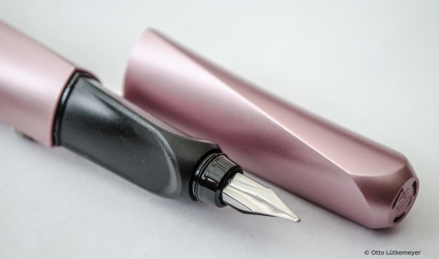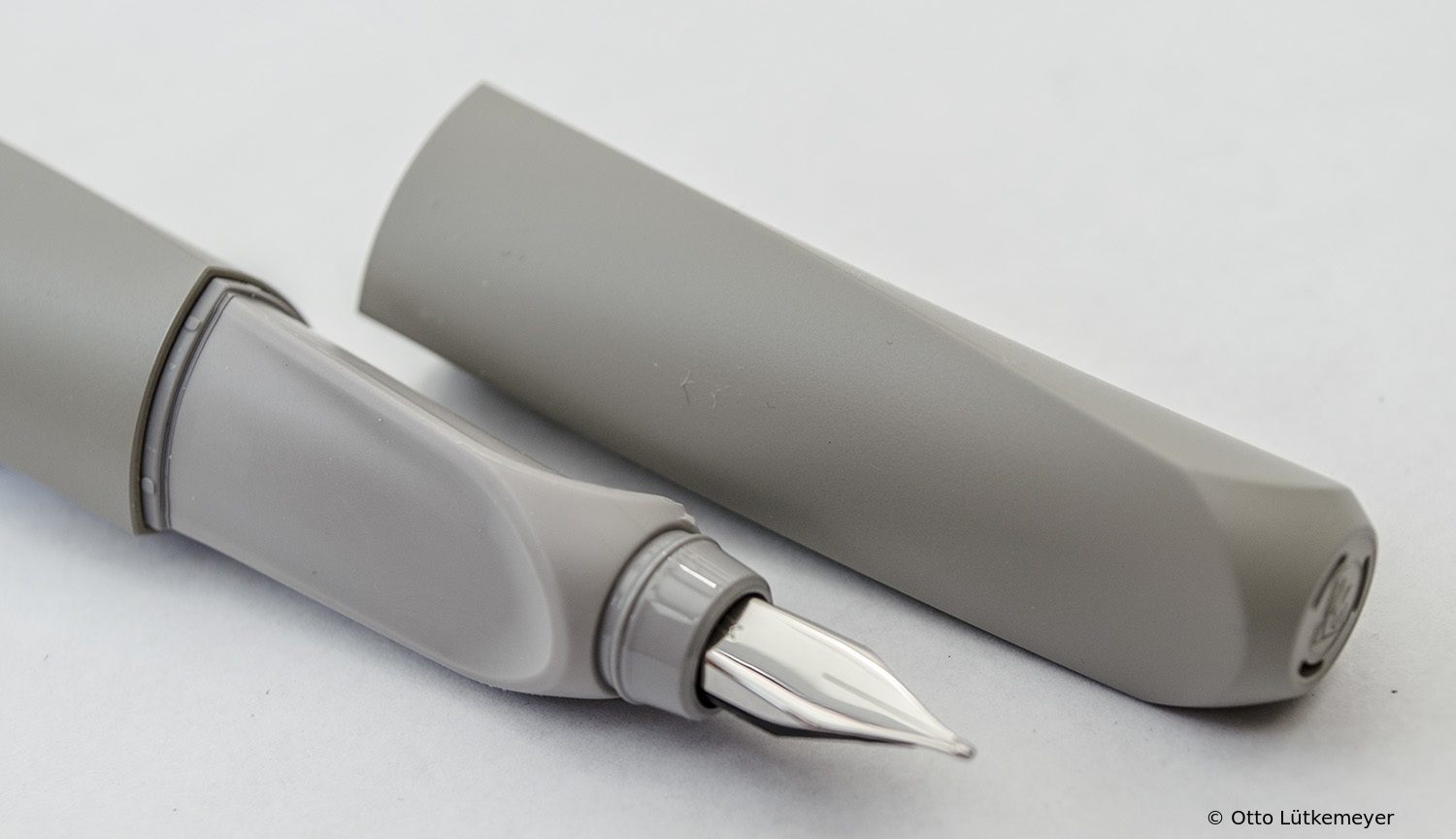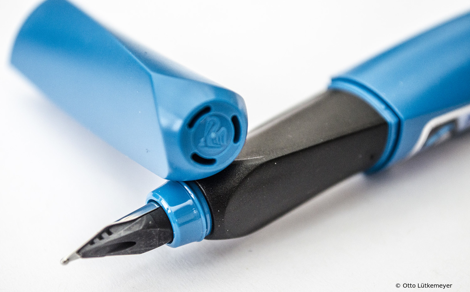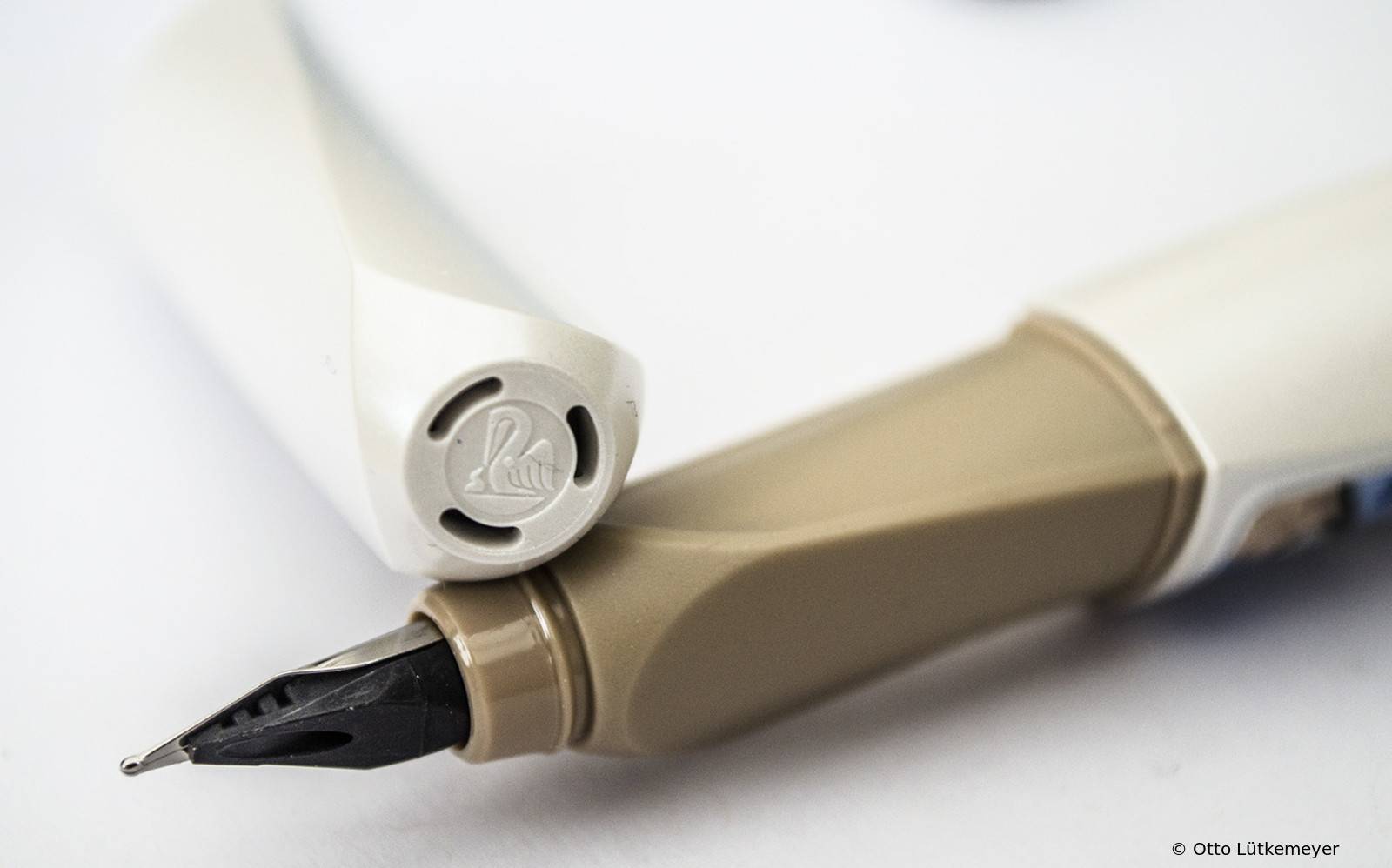 You might think at first sight that these are two identical models in different colors. But taking a closer look we have already seen some differences. If both fountain pens are put side by side, you can see that the decorative ring between the end of the barrel and the grip section does not lie at the same height. In fact, the barrel end of the red fountain pen is shorter, which is offset by a longer ink window in the barrel, so that both fountain pens have the same overall length. Also, the cap top of the pen is slightly different.