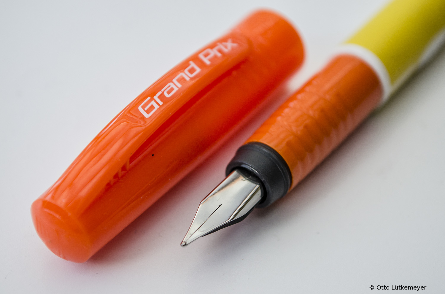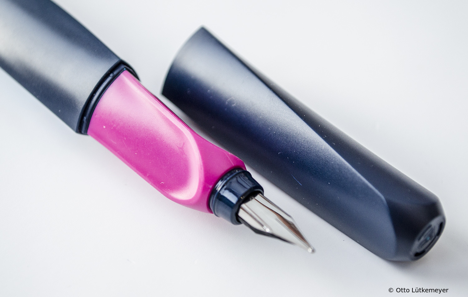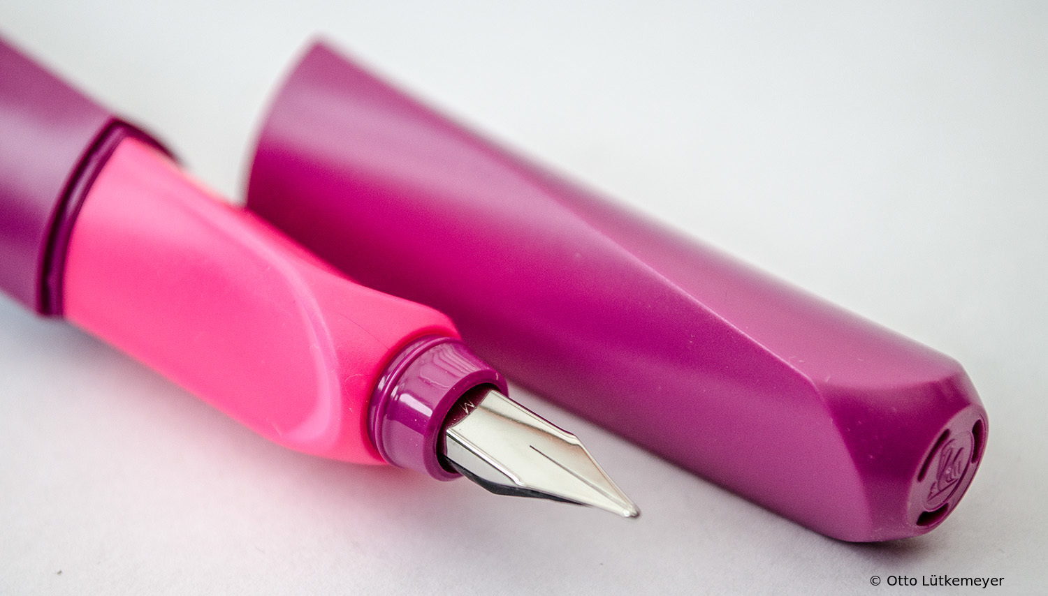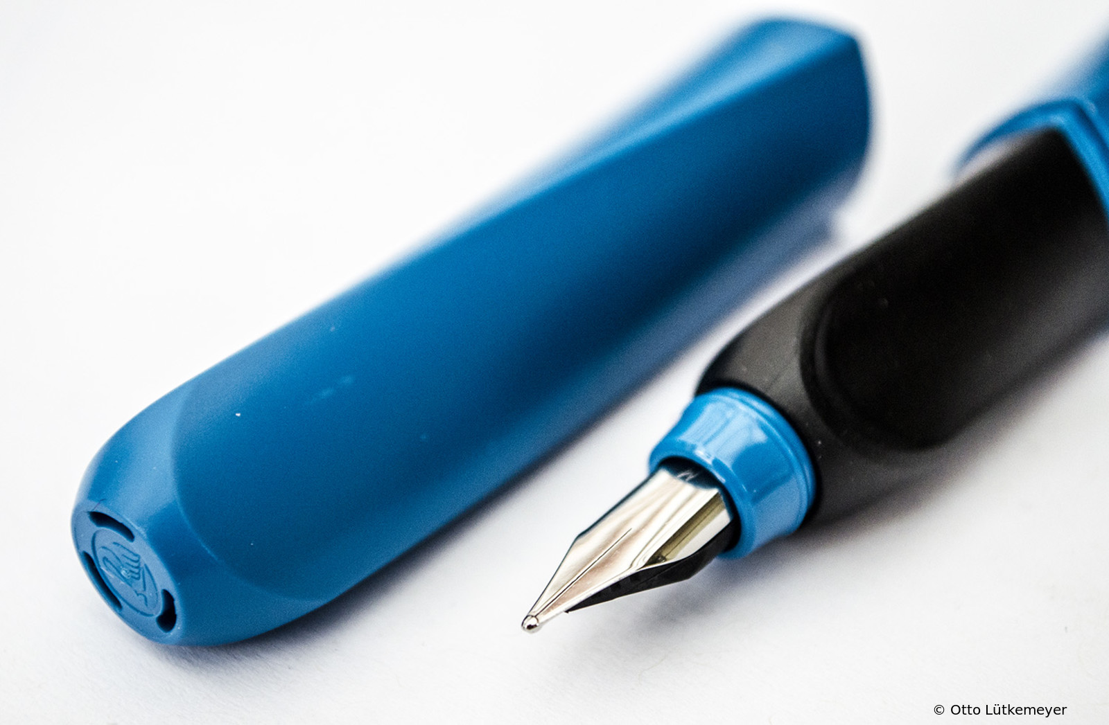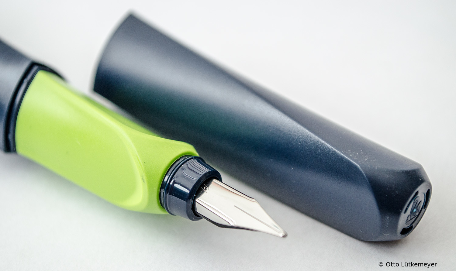 You might think at first sight that these are two identical models in different colors. But taking a closer look we have already seen some differences. If both fountain pens are put side by side, you can see that the decorative ring between the end of the barrel and the grip section does not lie at the same height. In fact, the barrel end of the red fountain pen is shorter, which is offset by a longer ink window in the barrel, so that both fountain pens have the same overall length. Also, the cap top of the pen is slightly different.