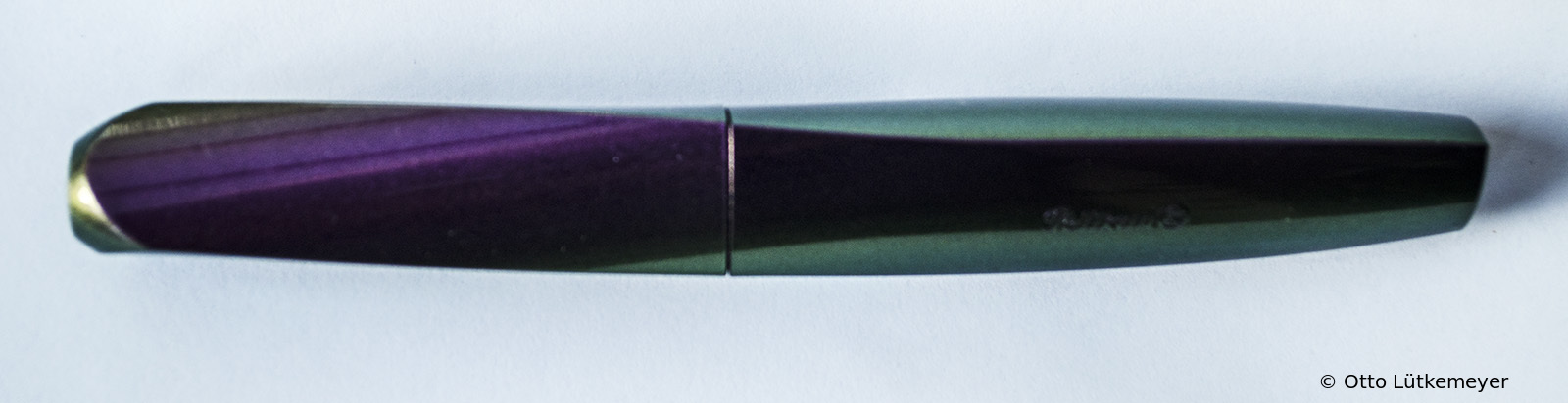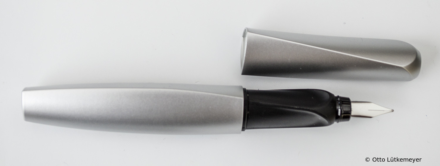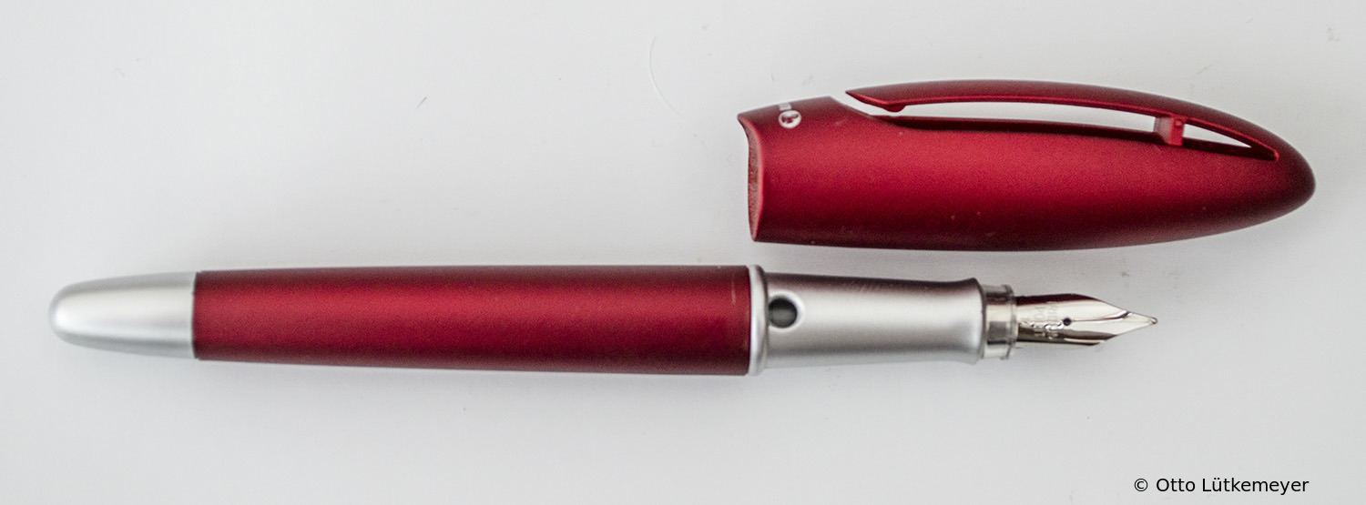 Successor of Galaxia was the Galaxia Iron. The barrel and cap are available in four different colors with metallic effect, barrel end and grip section are aluminum-colored. Two round cut-outs in the grip section reflect the views freely on the amount of ink remaining.