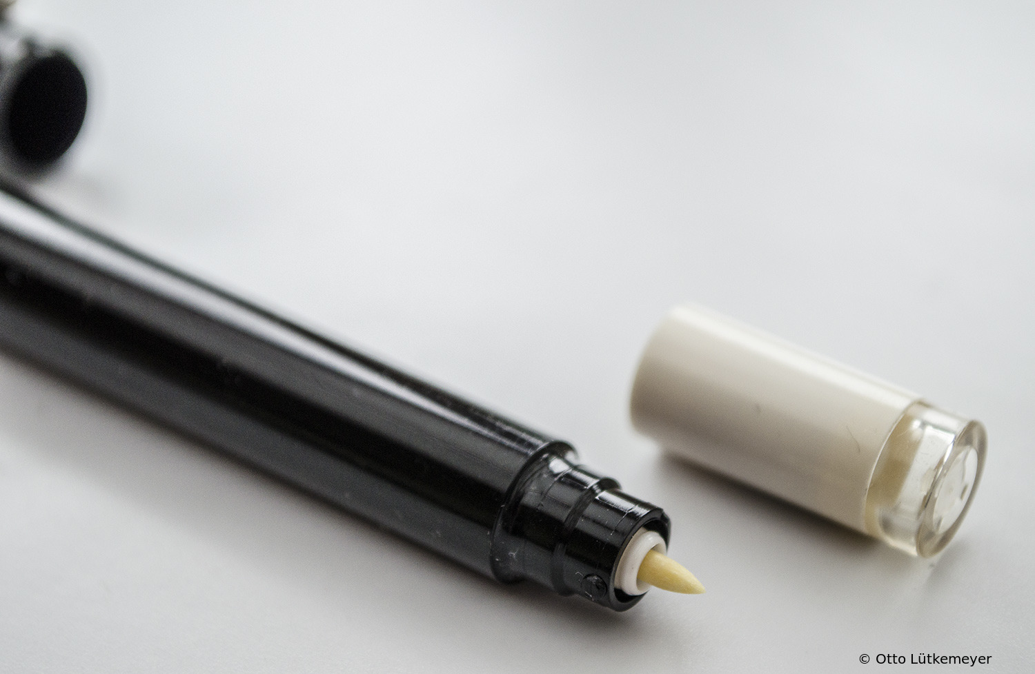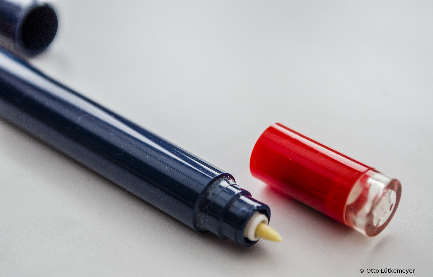 Analogous to the Super Pirate Pen P25 also the cartridge pen GO! P70 can be equipped with an erase cartridge instead of the reserve ink cartridge. A small cap at the end of the barrel released the eraser tip.