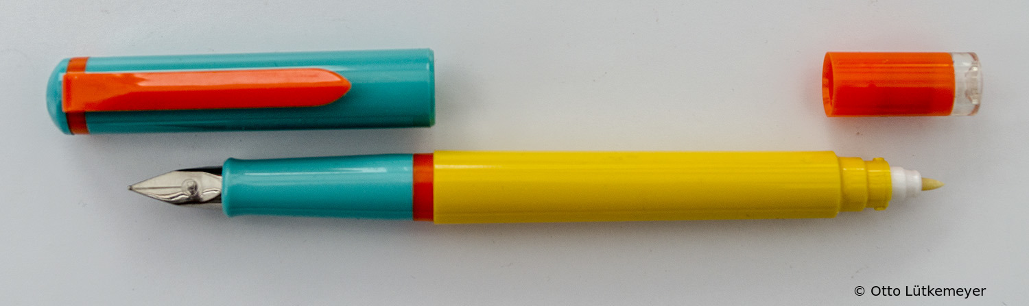 In addition to the school fountain pen Pelikano Pelikan from 1973 produced more writing instruments which were tuned to youthful buyers. Colors and design matched the particular taste of that generation and were intended to distinguish the pen clearly from the beginners´ image of the Pelikano.