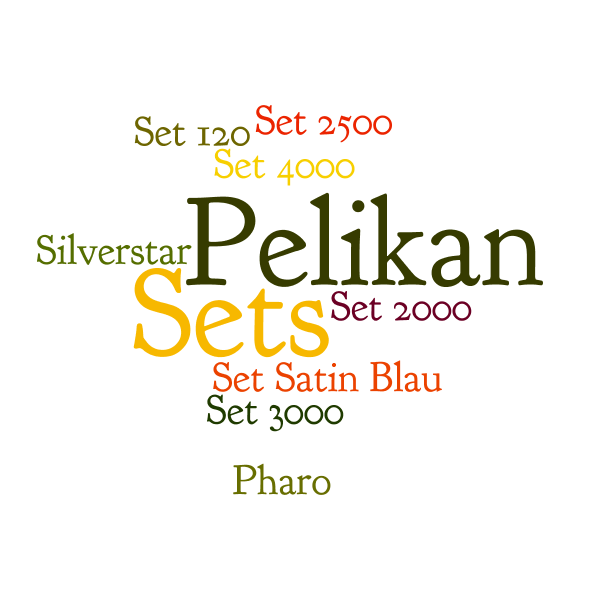 Pelikan Sets Silverstar, Set 2000, Set 2500, Set 3000, Set 4000 and Pharo.
