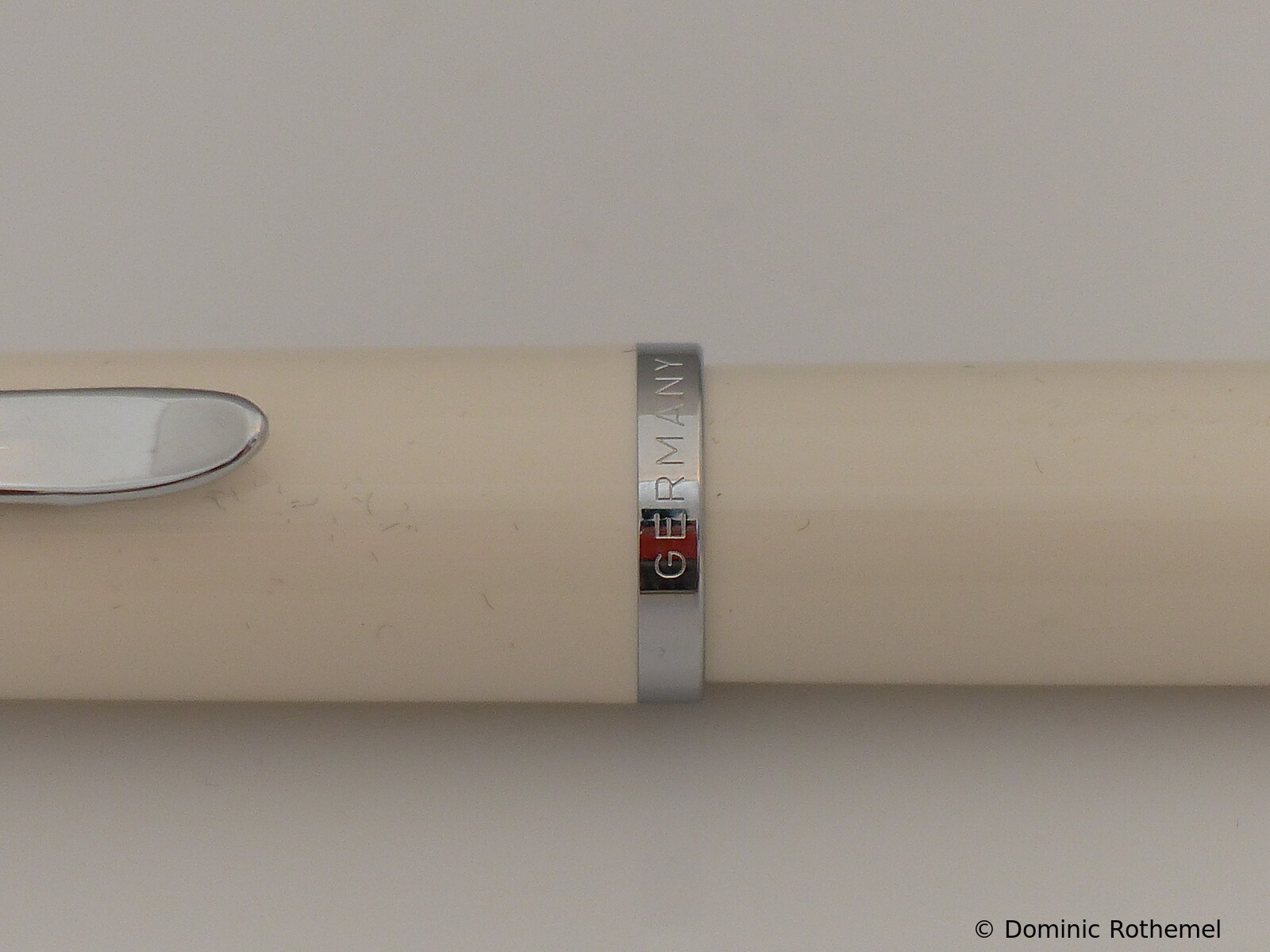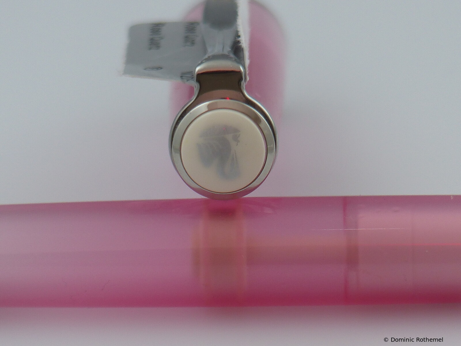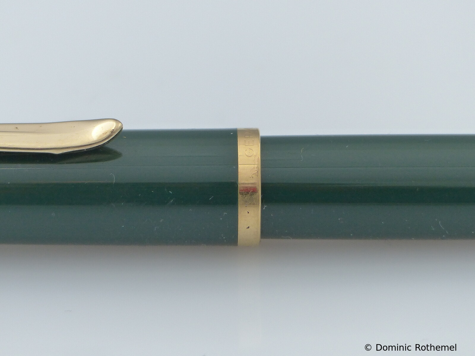 This item has instead of a clip a 14 ct gold nib on a small chain. These pens were given to stationery shops. A corresponding ballpoint pen was also manufactured.