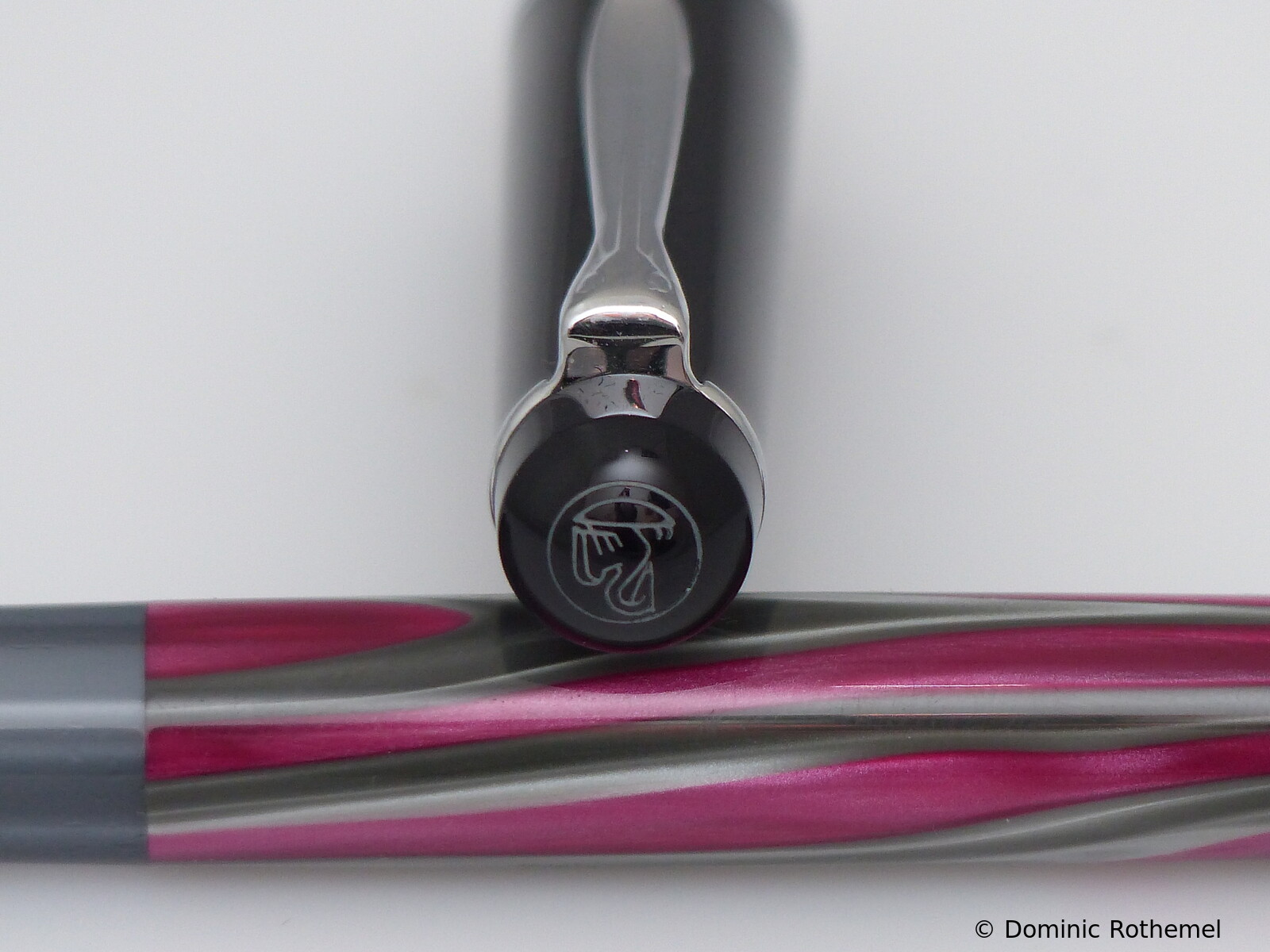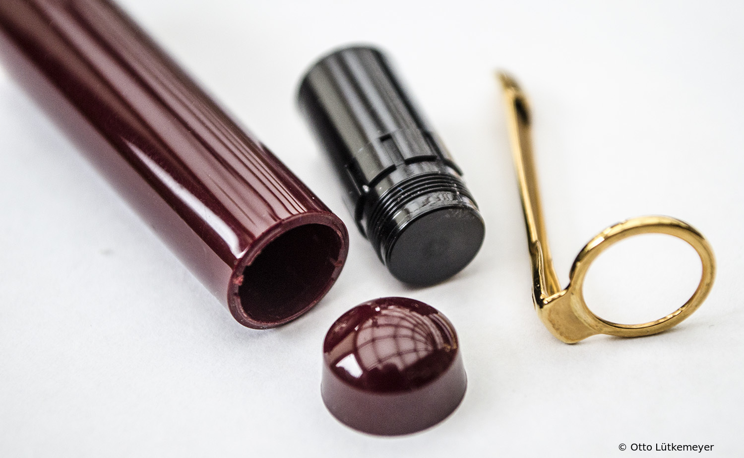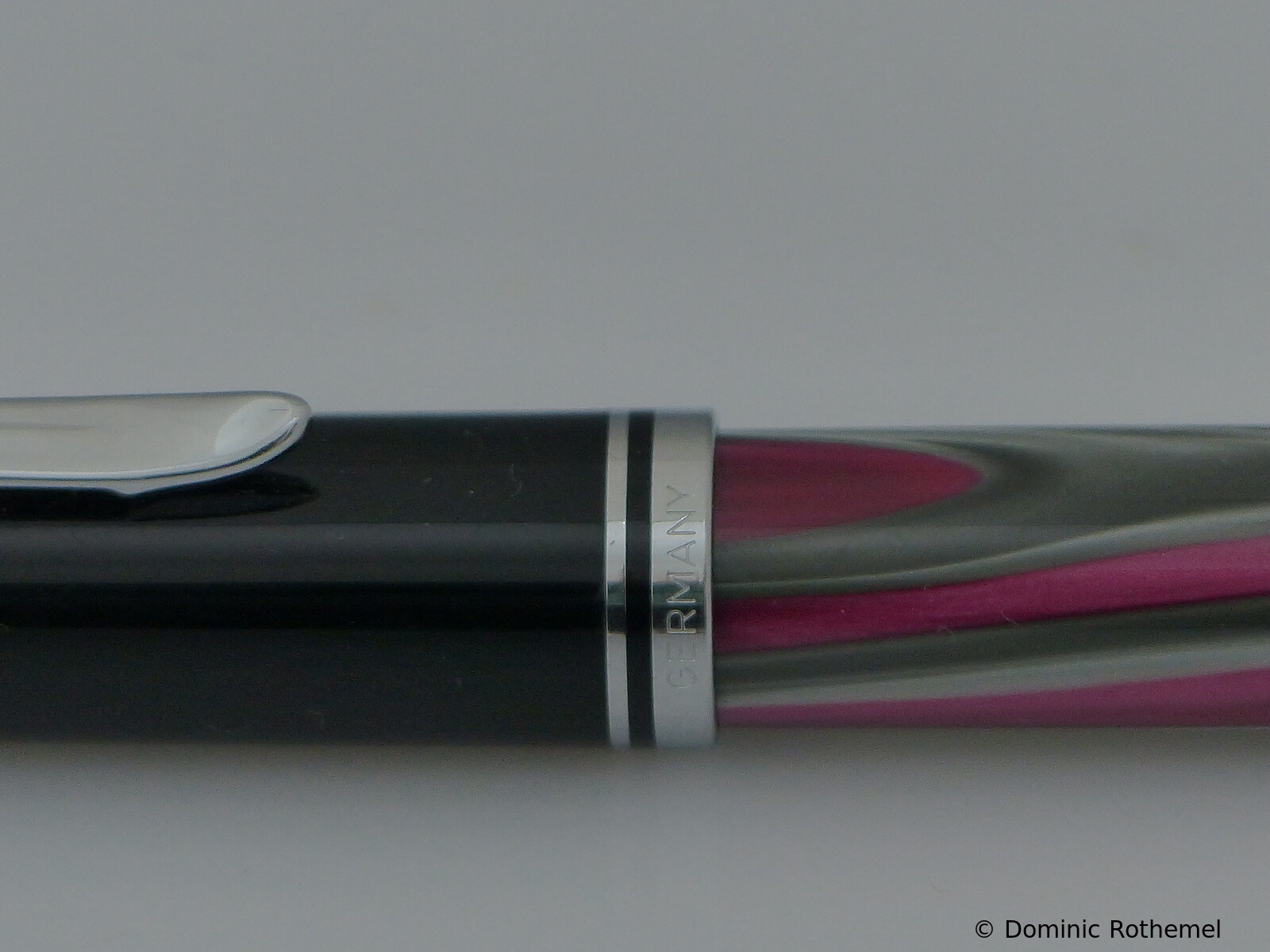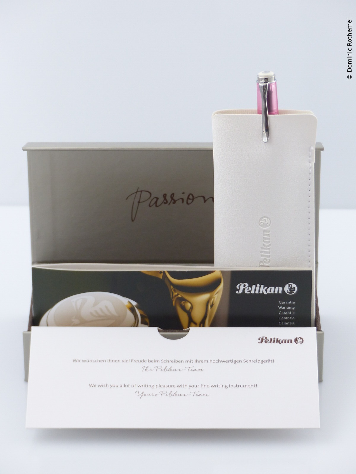 This item has instead of a clip a 14 ct gold nib on a small chain. These pens were given to stationery shops. A corresponding ballpoint pen was also manufactured.