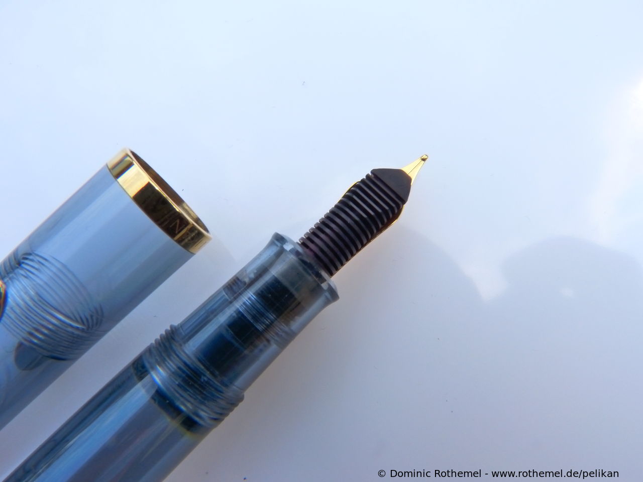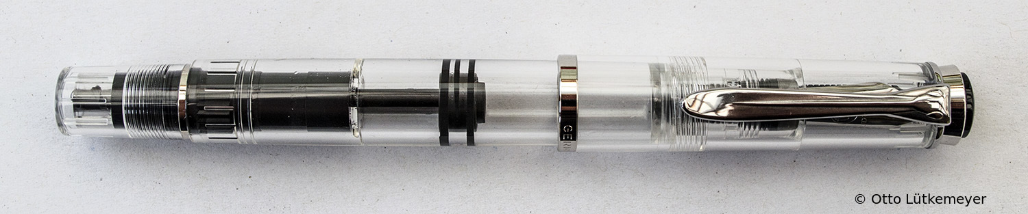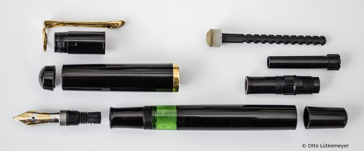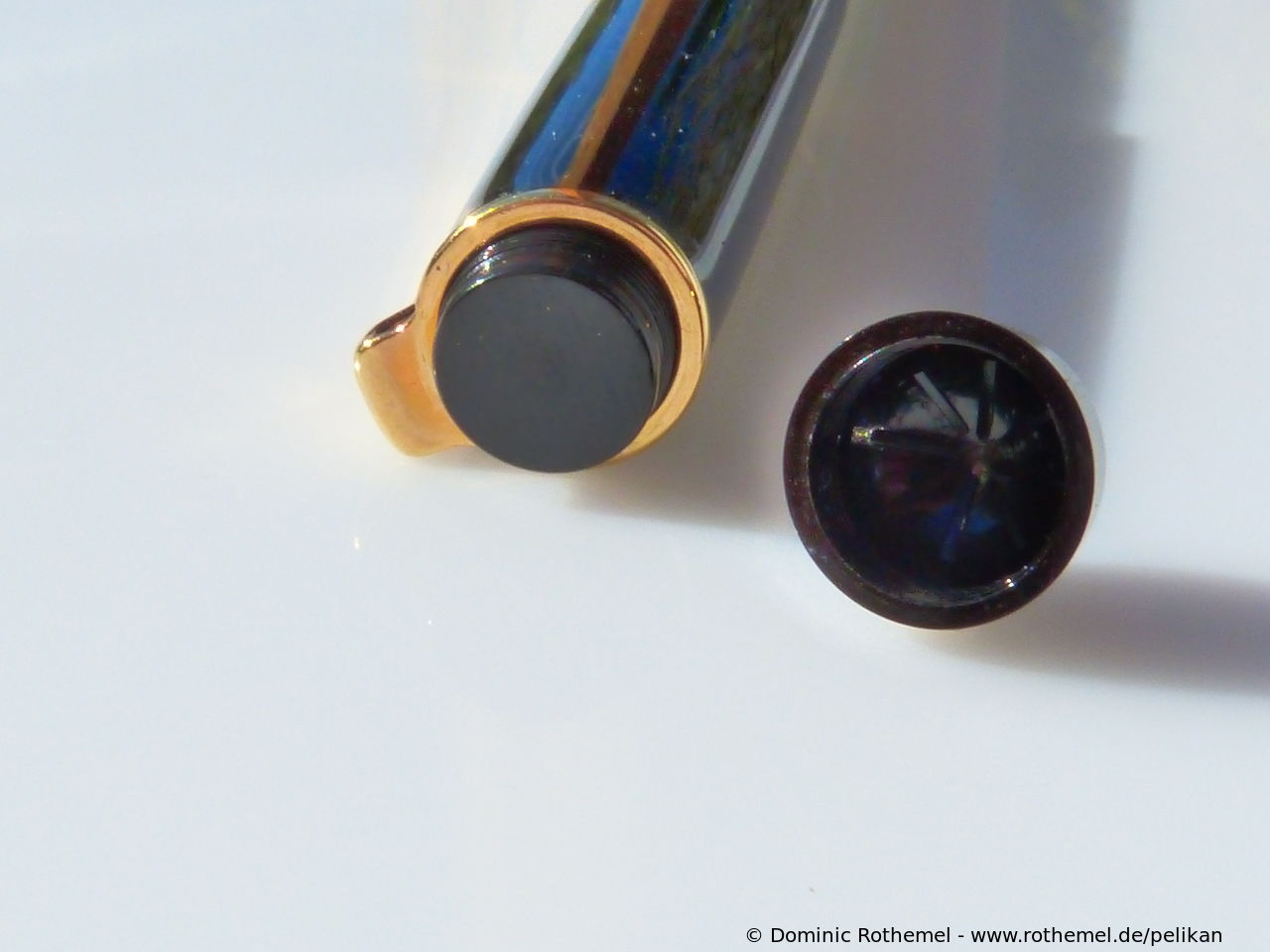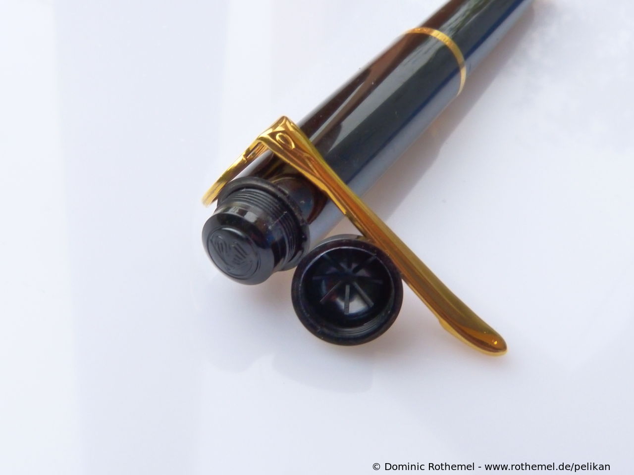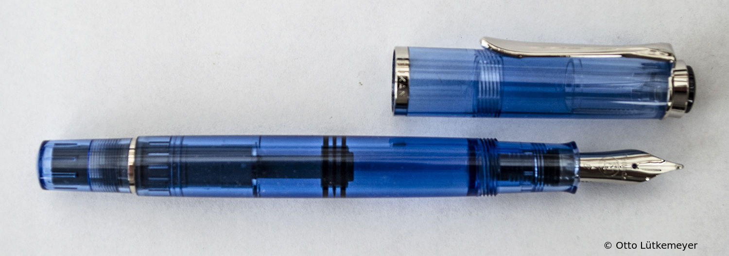 These cap inserts are identical to those of the M400 series, which are decorated with the logo and are held by a golden crown (clip ring). Since the M481 is the cheap version of the M400, he got the insignificant cap (the blind cap) instead of the golden crown, the logo disappeared. Later on, the M200 had the Pelikan logo on the cap. Initially it was screwed, later glued.