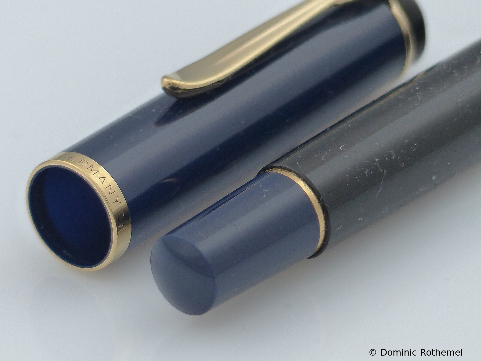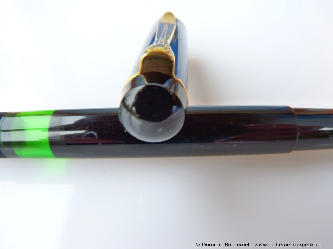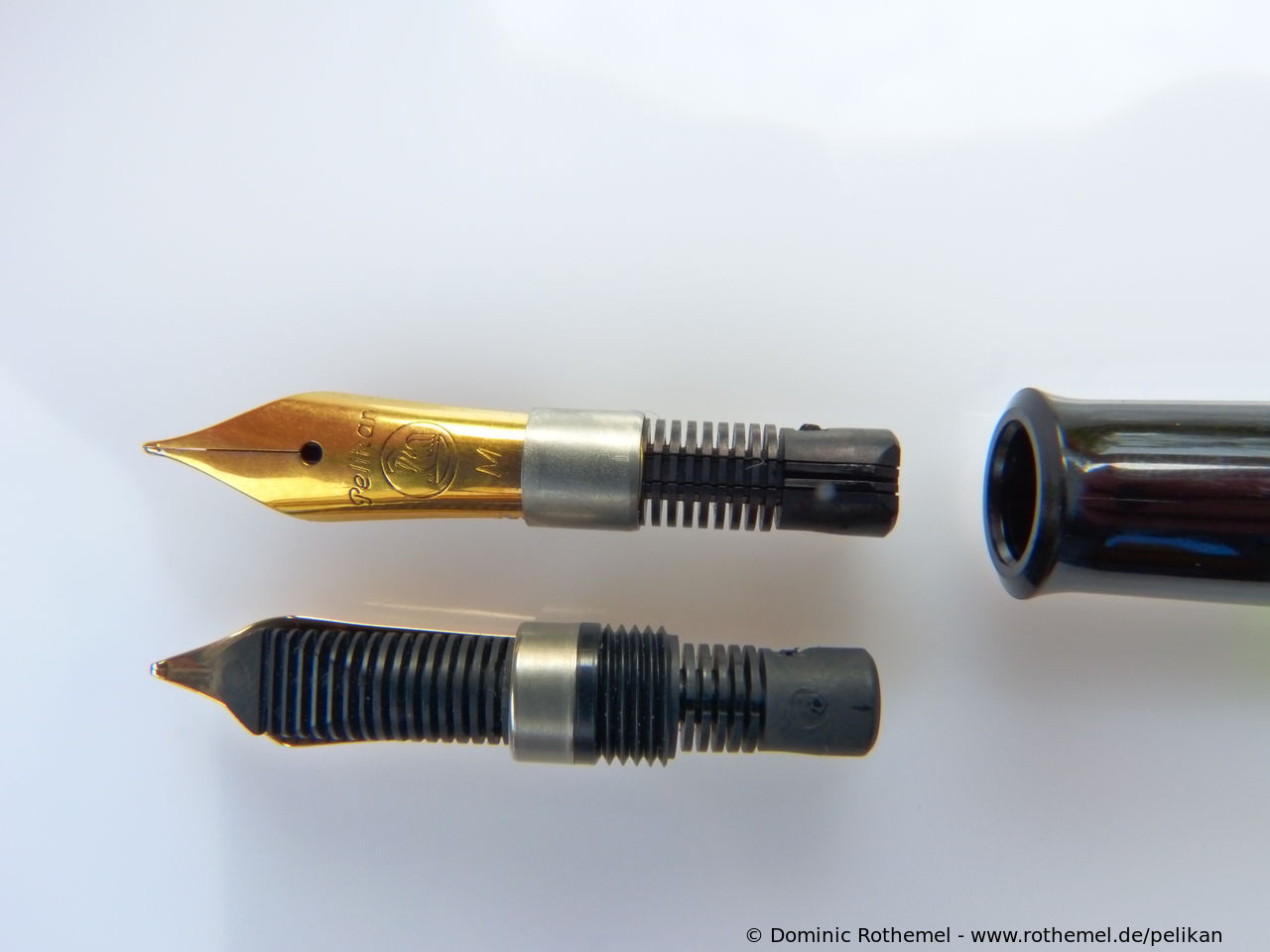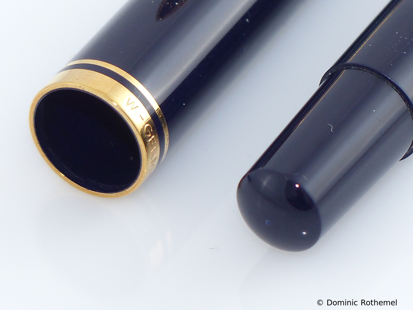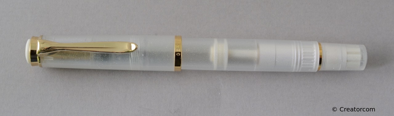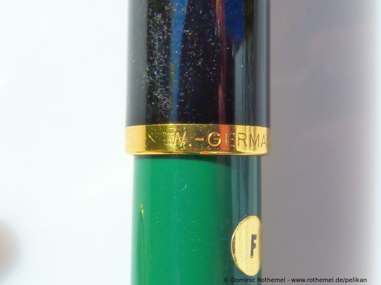 These cap inserts are identical to those of the M400 series, which are decorated with the logo and are held by a golden crown (clip ring). Since the M481 is the cheap version of the M400, he got the insignificant cap (the blind cap) instead of the golden crown, the logo disappeared. Later on, the M200 had the Pelikan logo on the cap. Initially it was screwed, later glued.