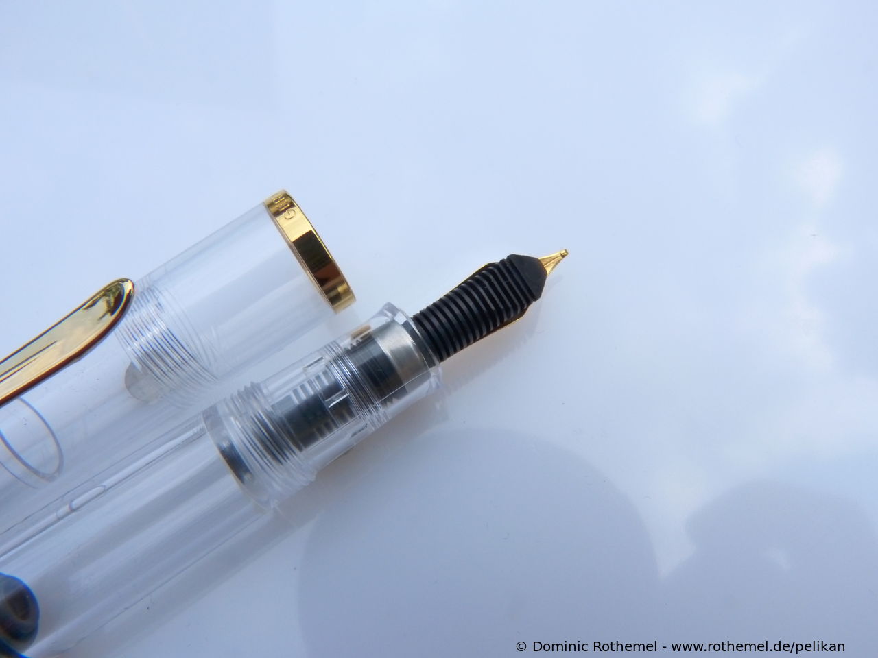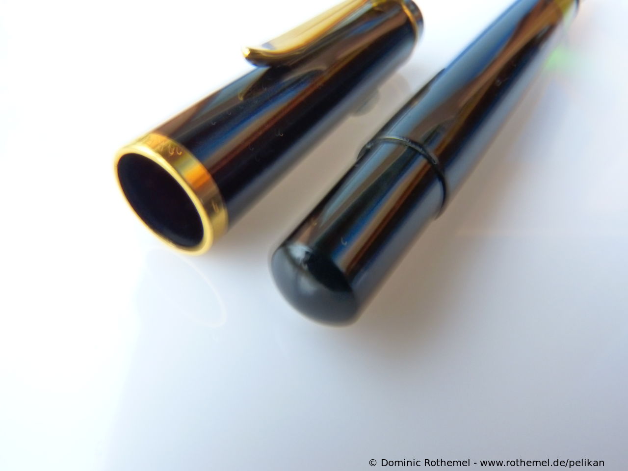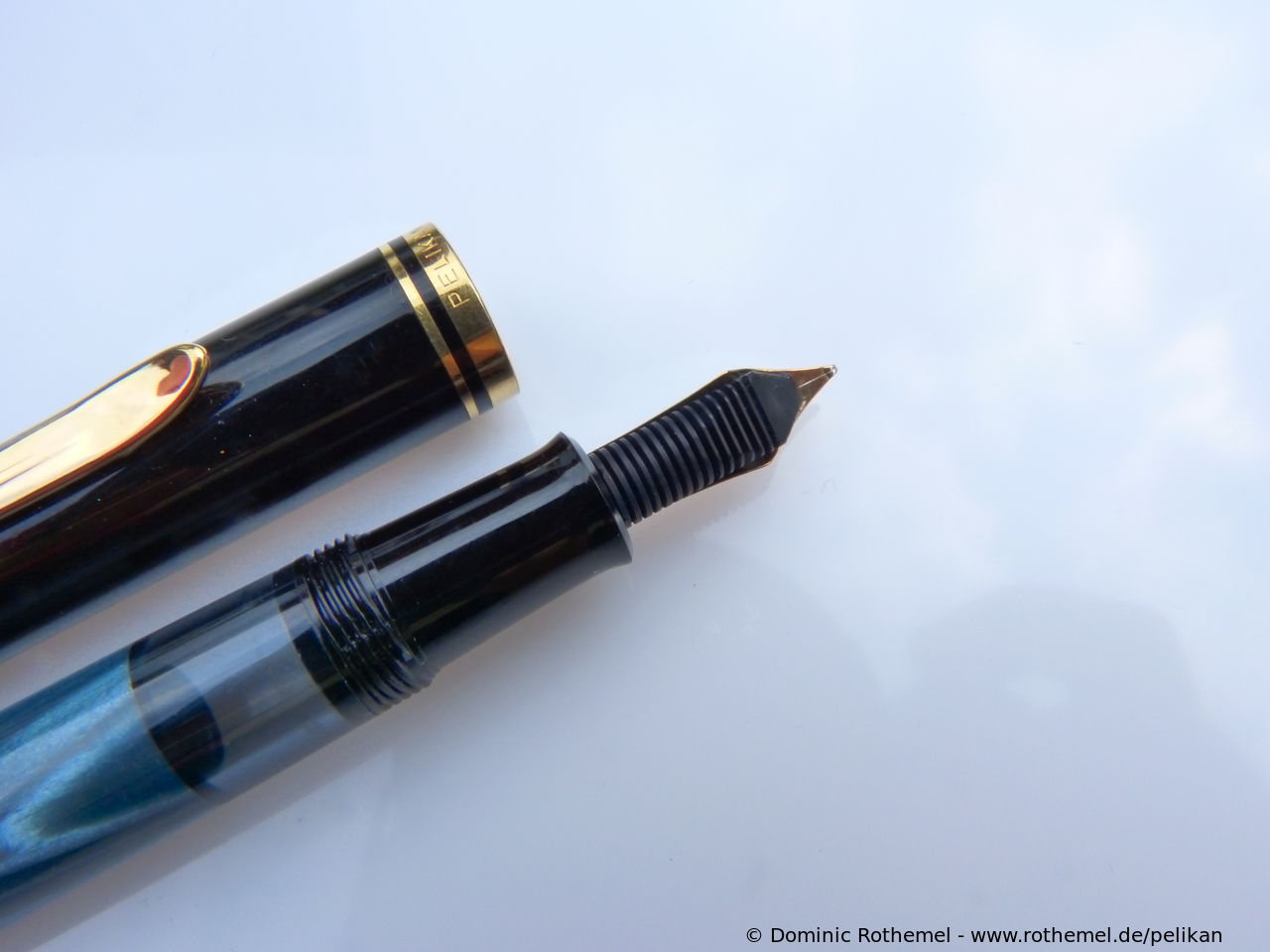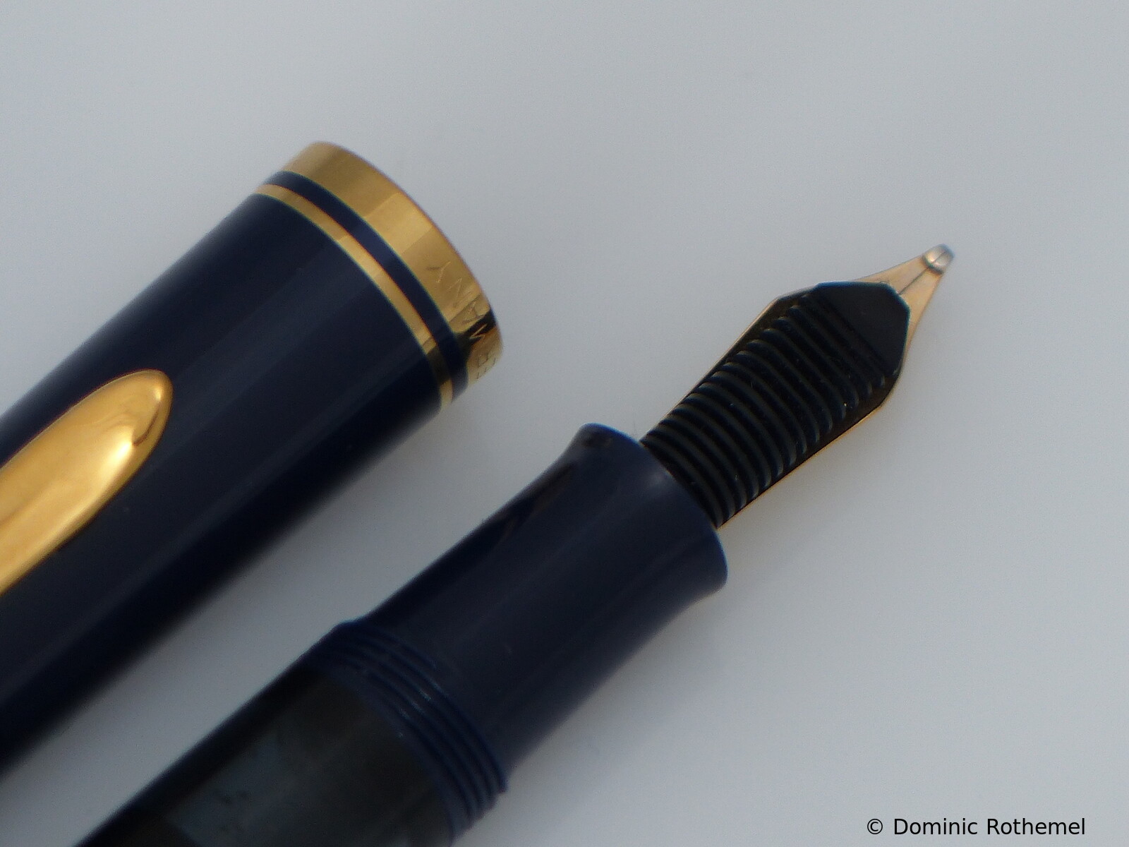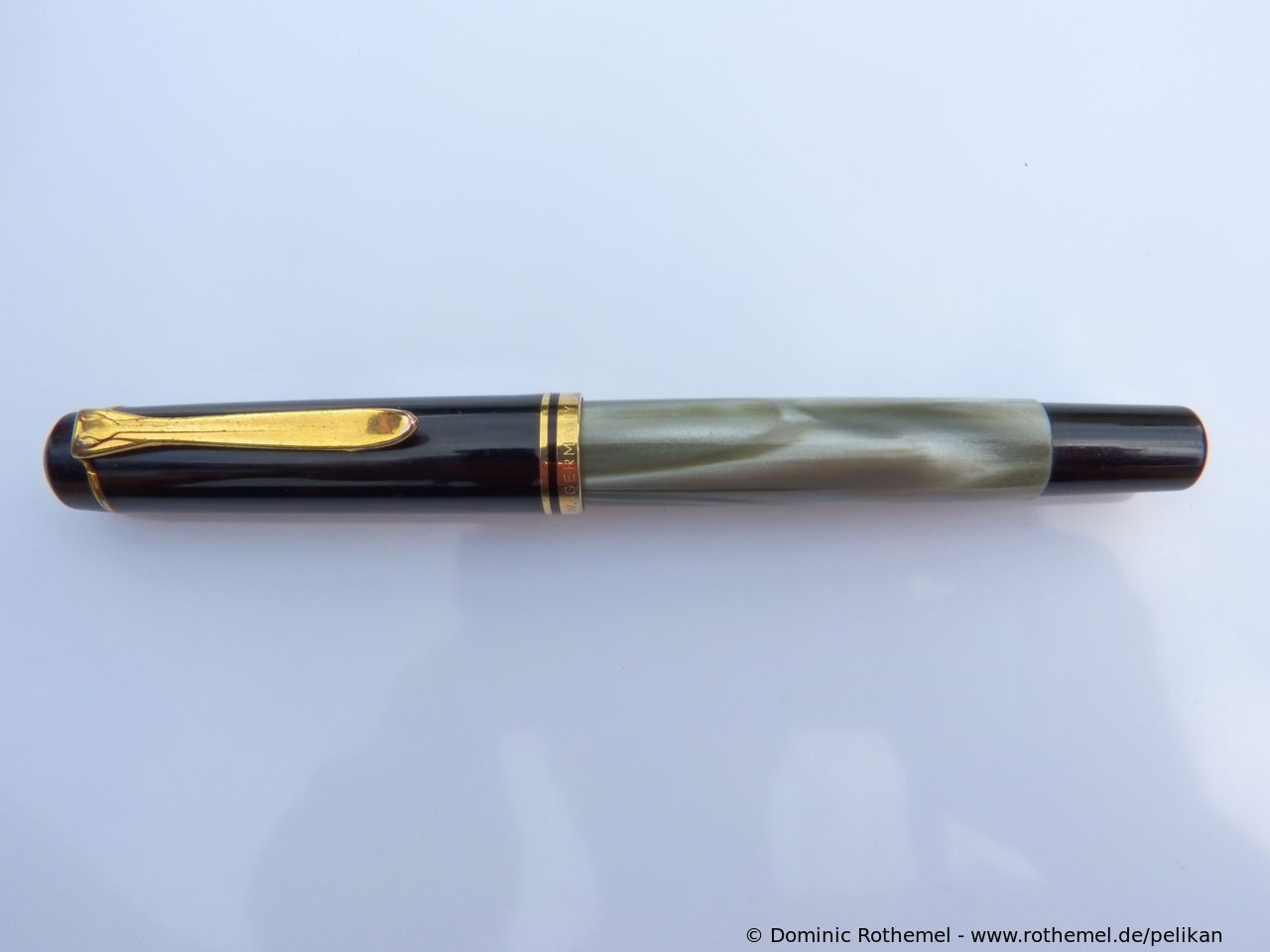 These cap inserts are identical to those of the M400 series, which are decorated with the logo and are held by a golden crown (clip ring). Since the M481 is the cheap version of the M400, he got the insignificant cap (the blind cap) instead of the golden crown, the logo disappeared. Later on, the M200 had the Pelikan logo on the cap. Initially it was screwed, later glued.