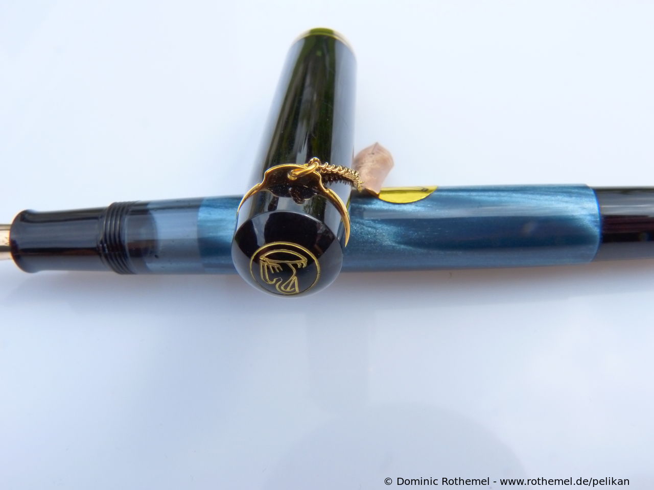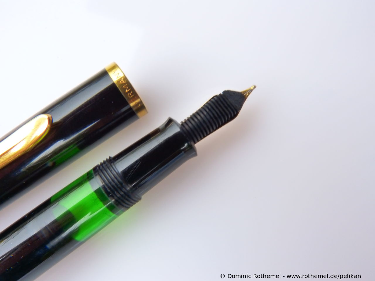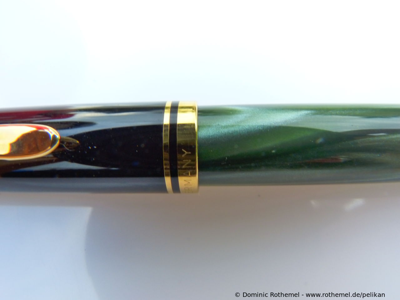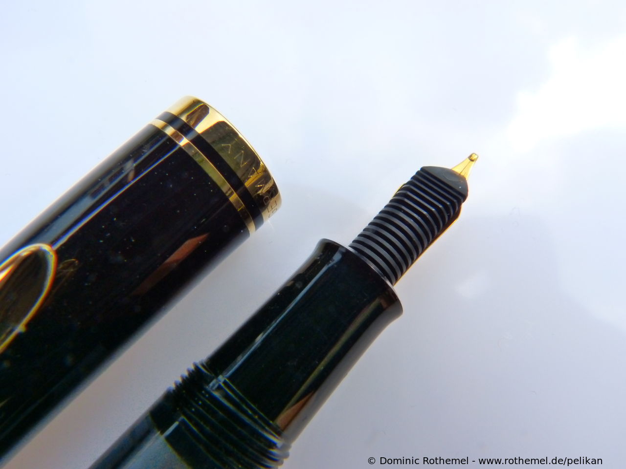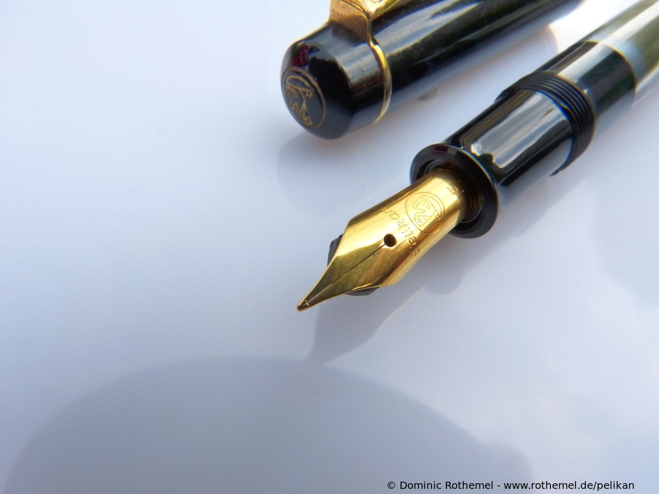 These cap inserts are identical to those of the M400 series, which are decorated with the logo and are held by a golden crown (clip ring). Since the M481 is the cheap version of the M400, he got the insignificant cap (the blind cap) instead of the golden crown, the logo disappeared. Later on, the M200 had the Pelikan logo on the cap. Initially it was screwed, later glued.