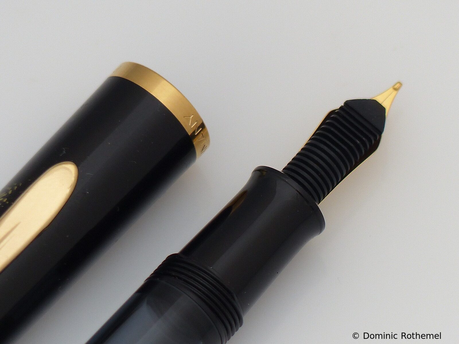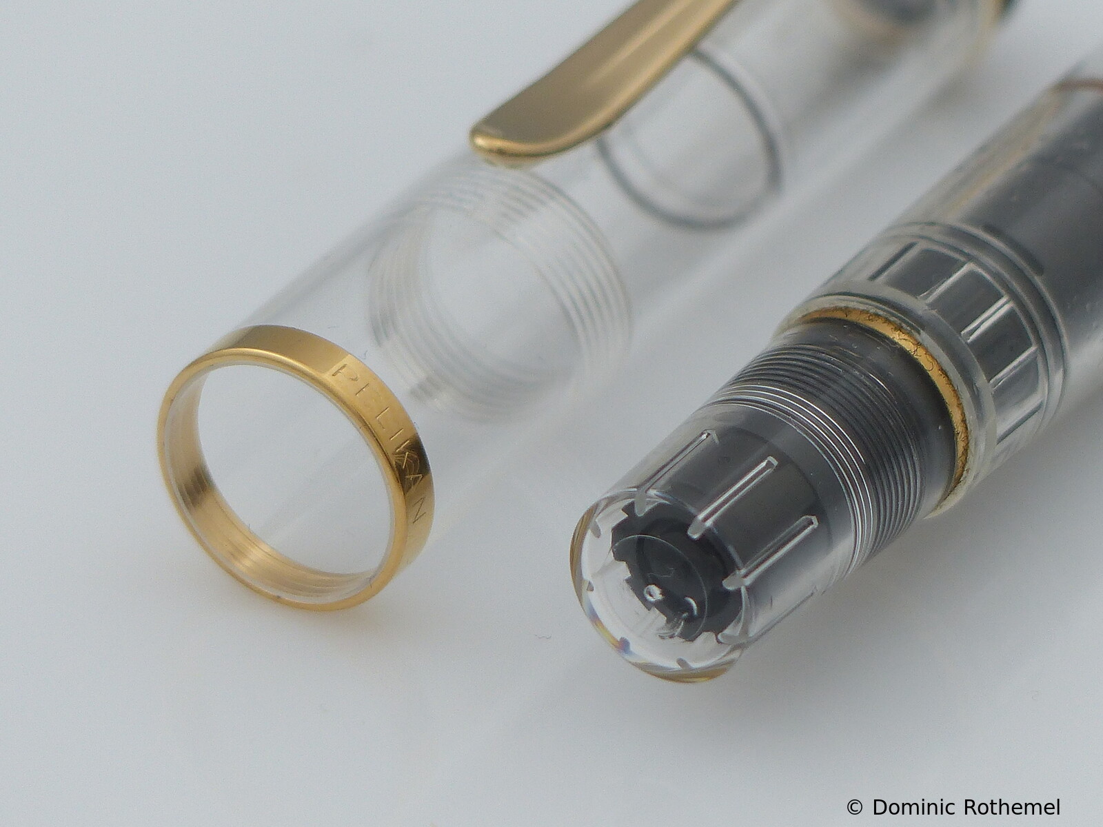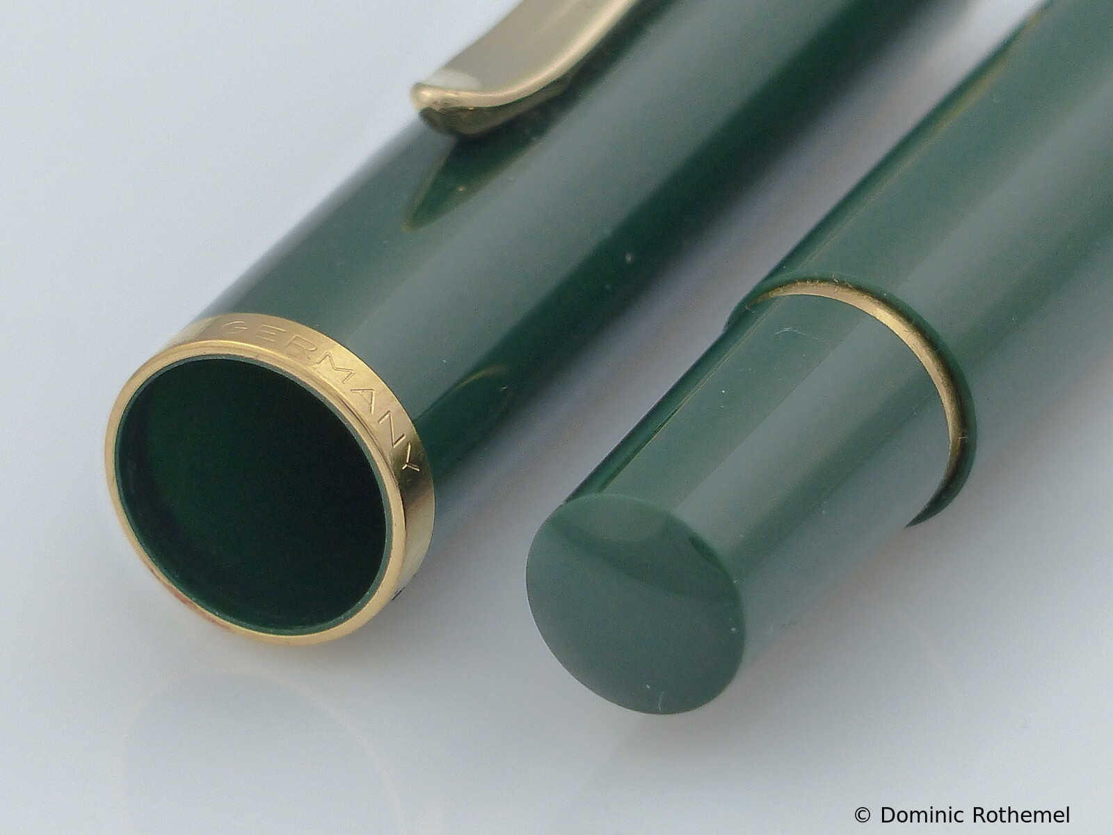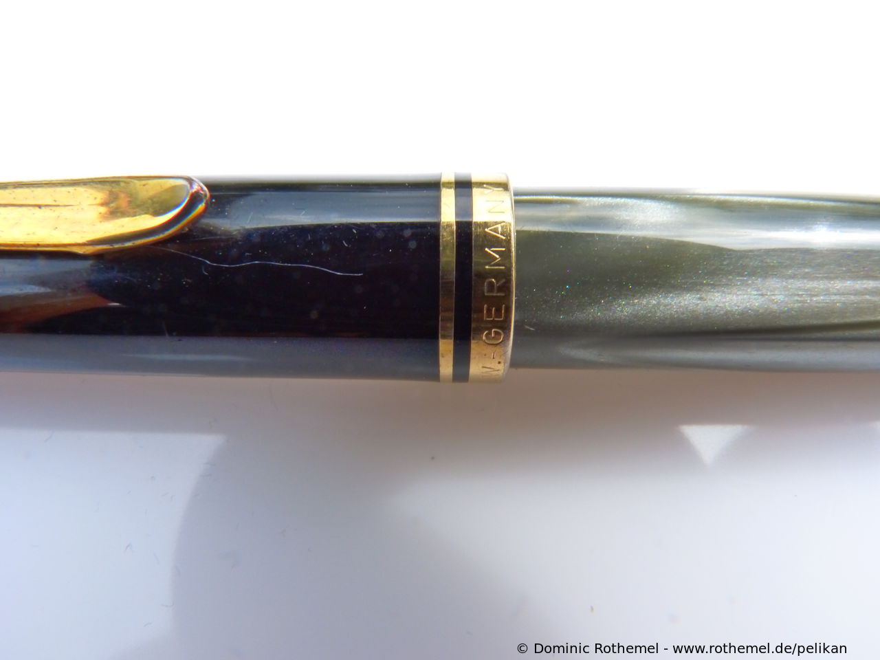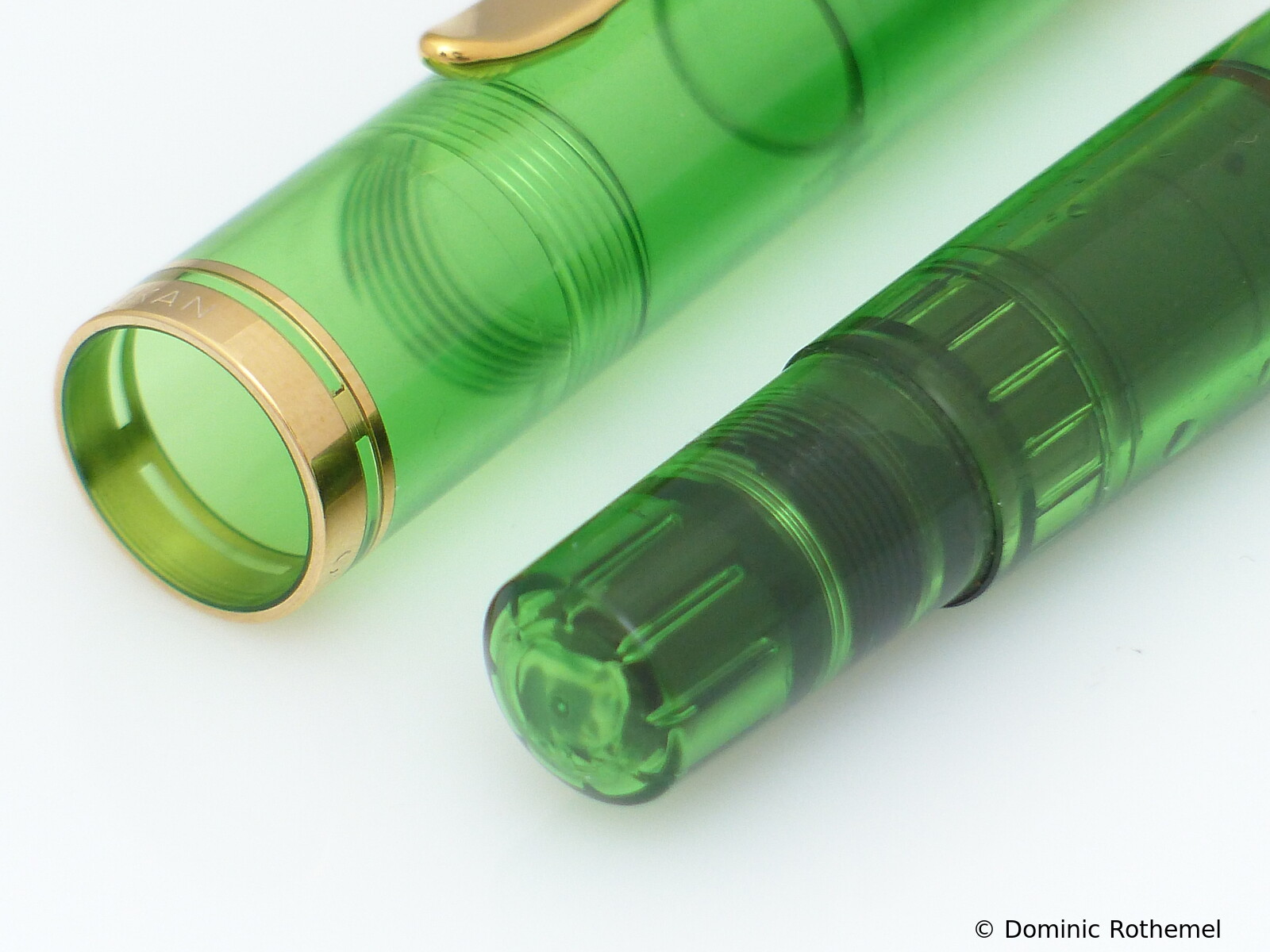 These cap inserts are identical to those of the M400 series, which are decorated with the logo and are held by a golden crown (clip ring). Since the M481 is the cheap version of the M400, he got the insignificant cap (the blind cap) instead of the golden crown, the logo disappeared. Later on, the M200 had the Pelikan logo on the cap. Initially it was screwed, later glued.