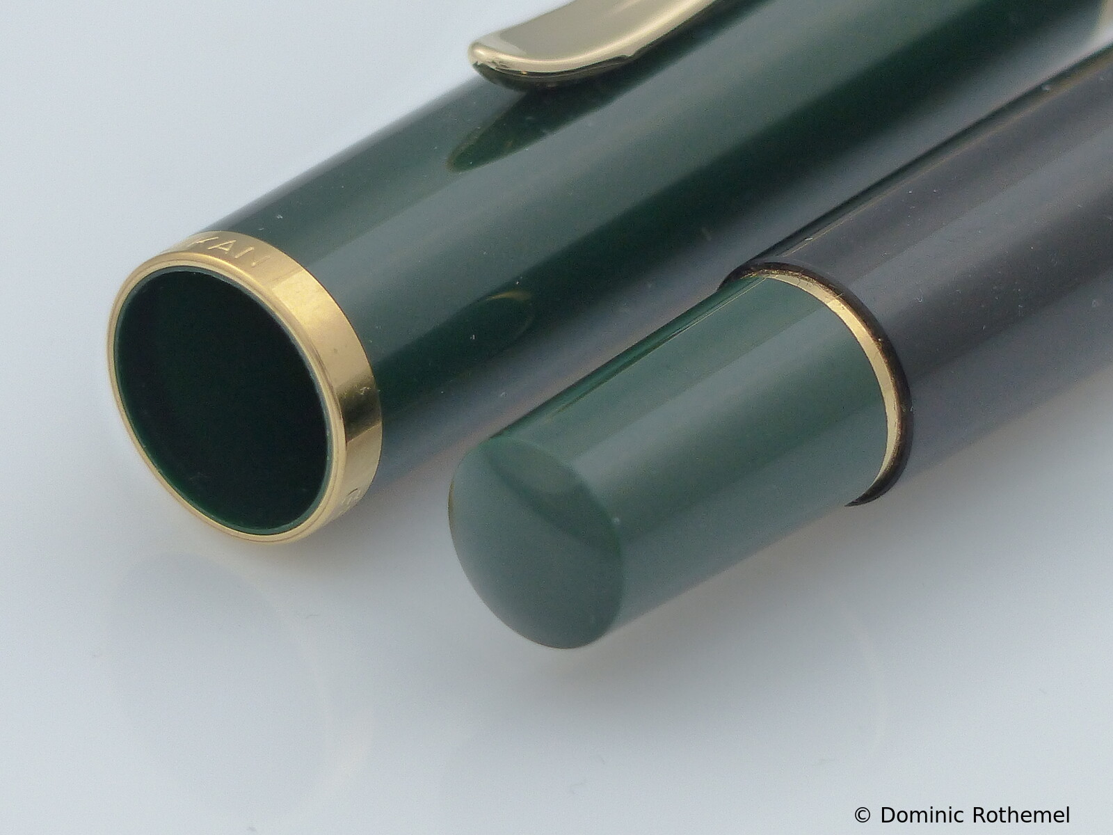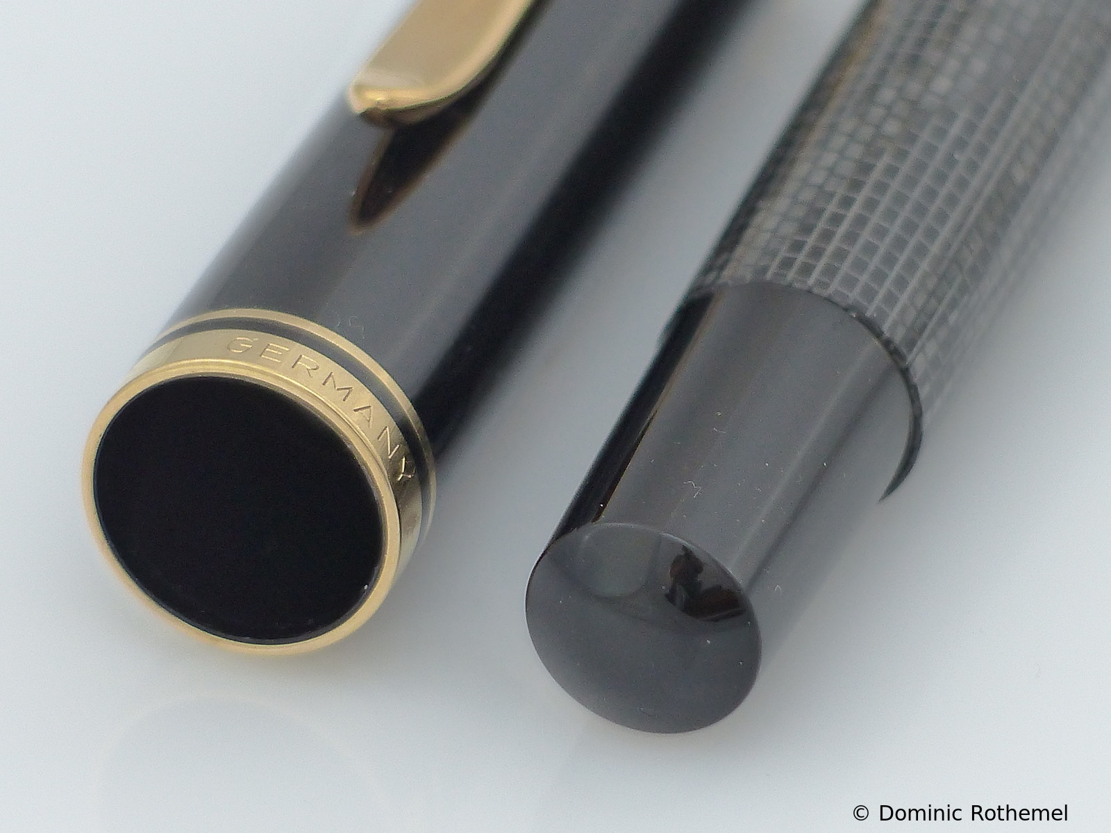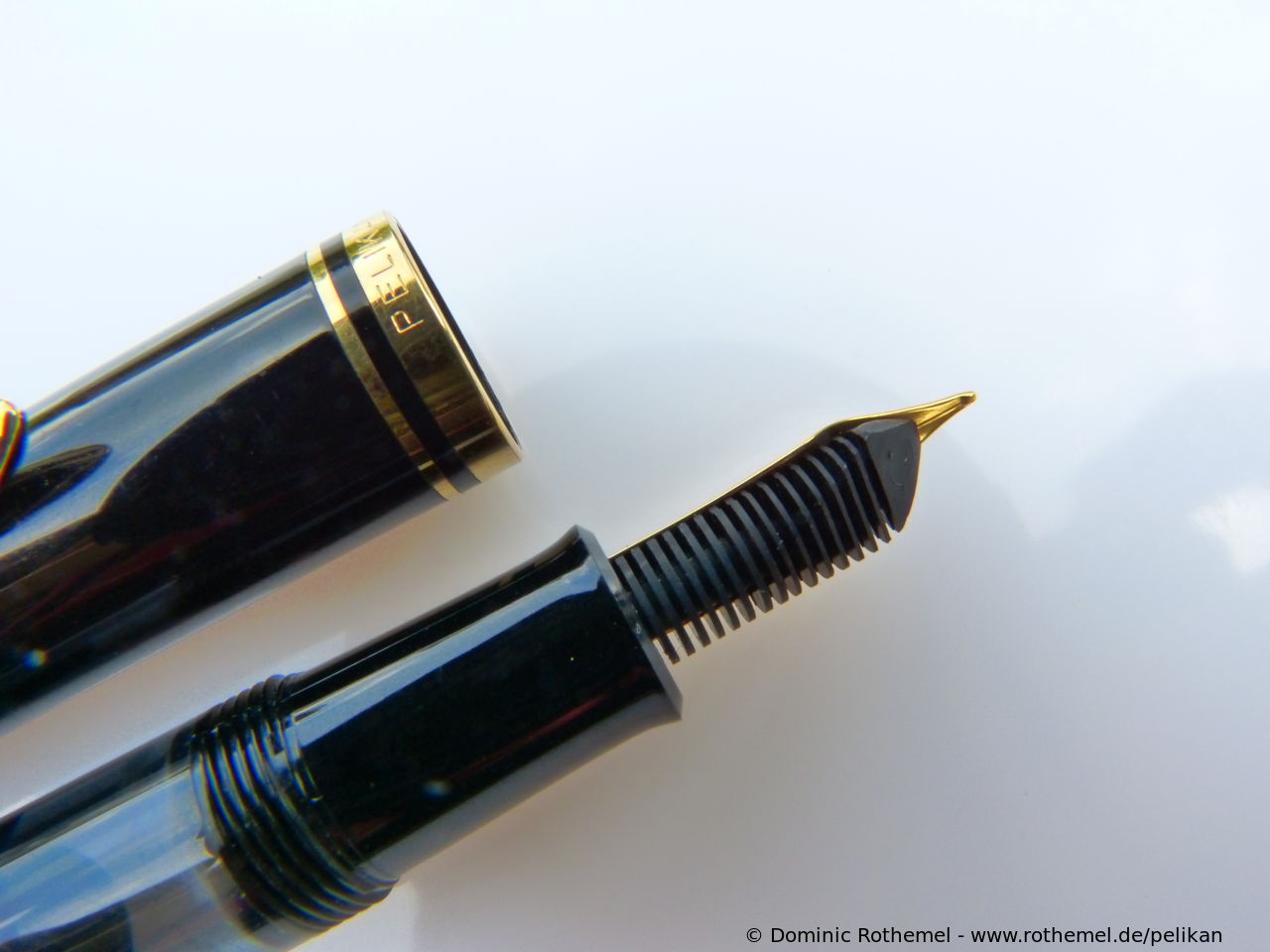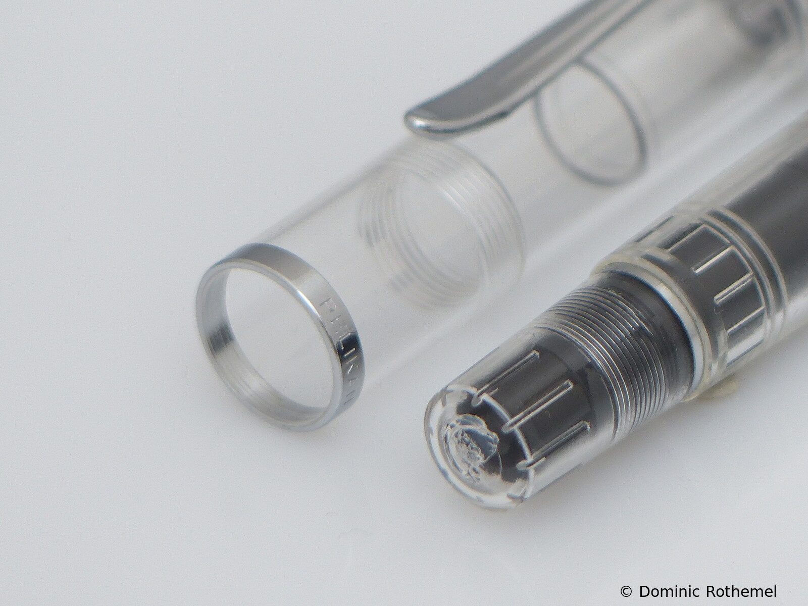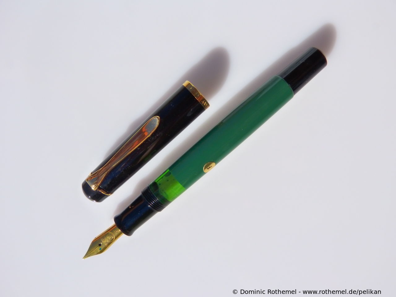 These cap inserts are identical to those of the M400 series, which are decorated with the logo and are held by a golden crown (clip ring). Since the M481 is the cheap version of the M400, he got the insignificant cap (the blind cap) instead of the golden crown, the logo disappeared. Later on, the M200 had the Pelikan logo on the cap. Initially it was screwed, later glued.