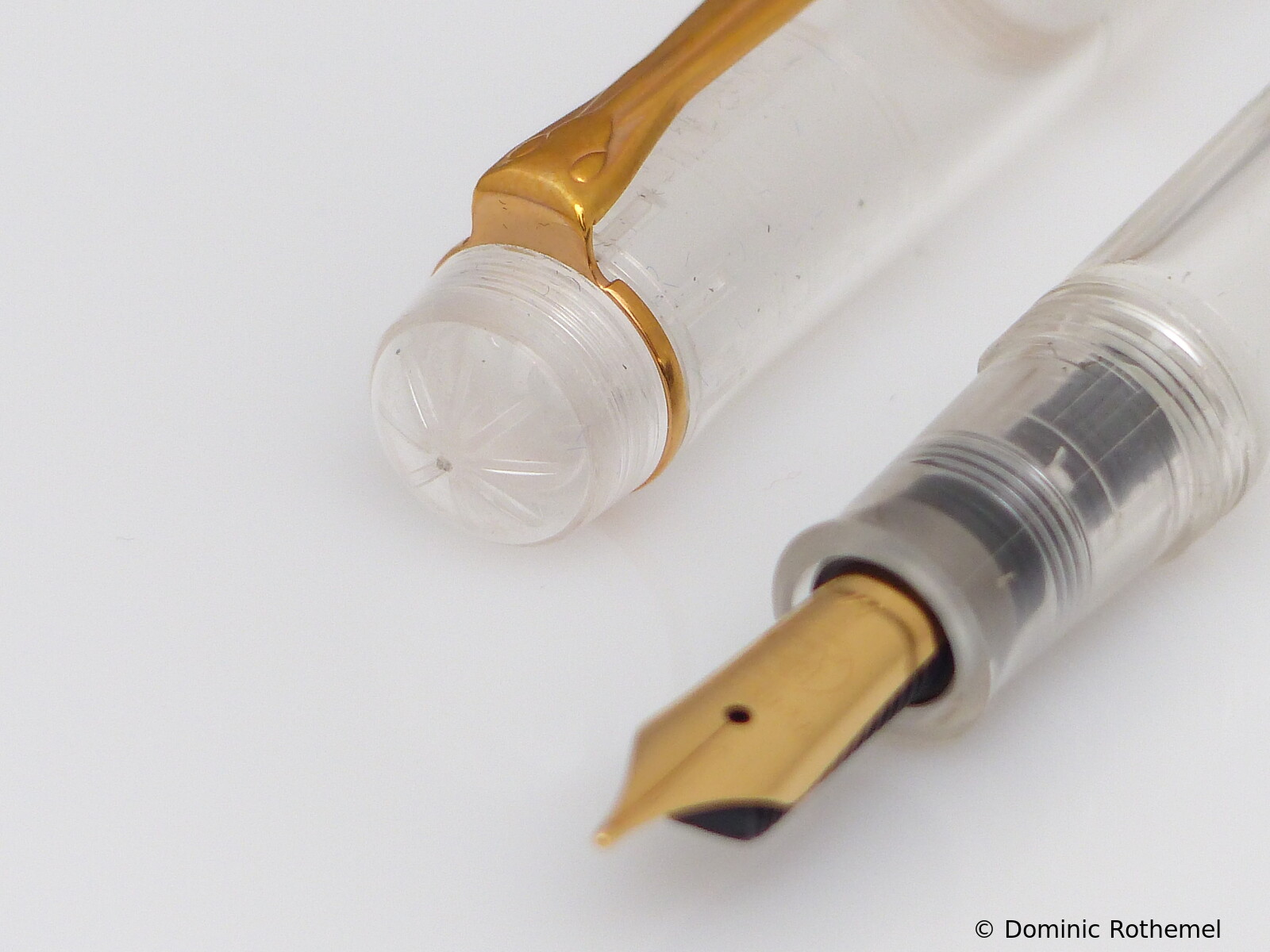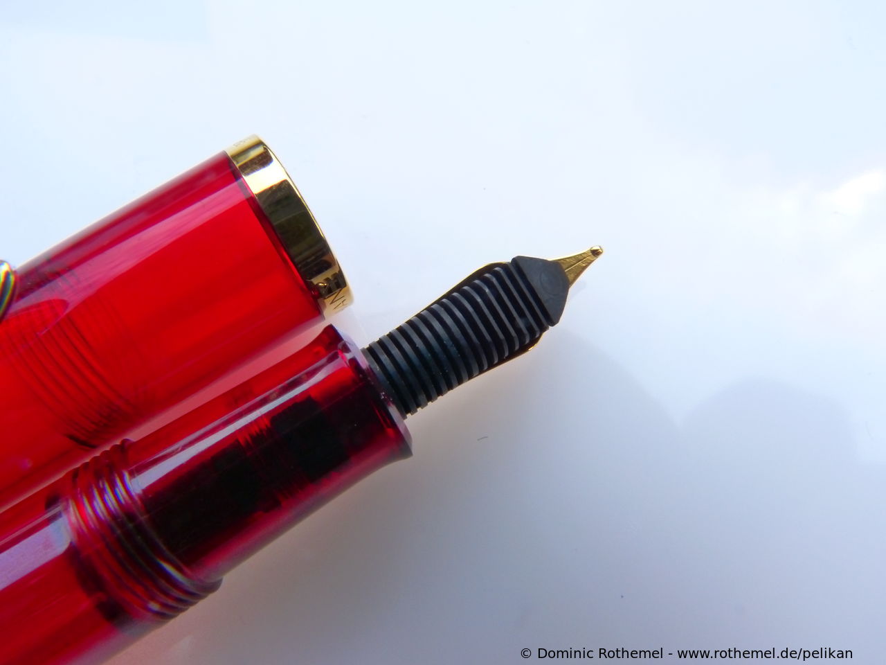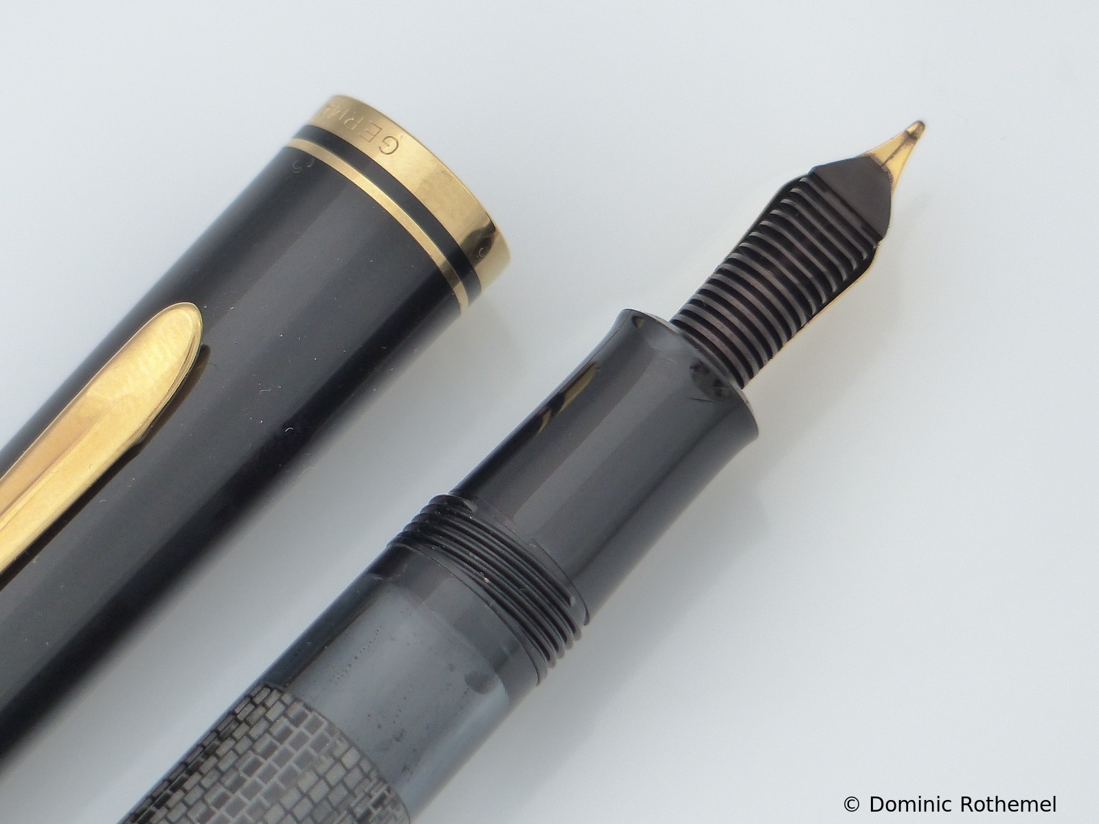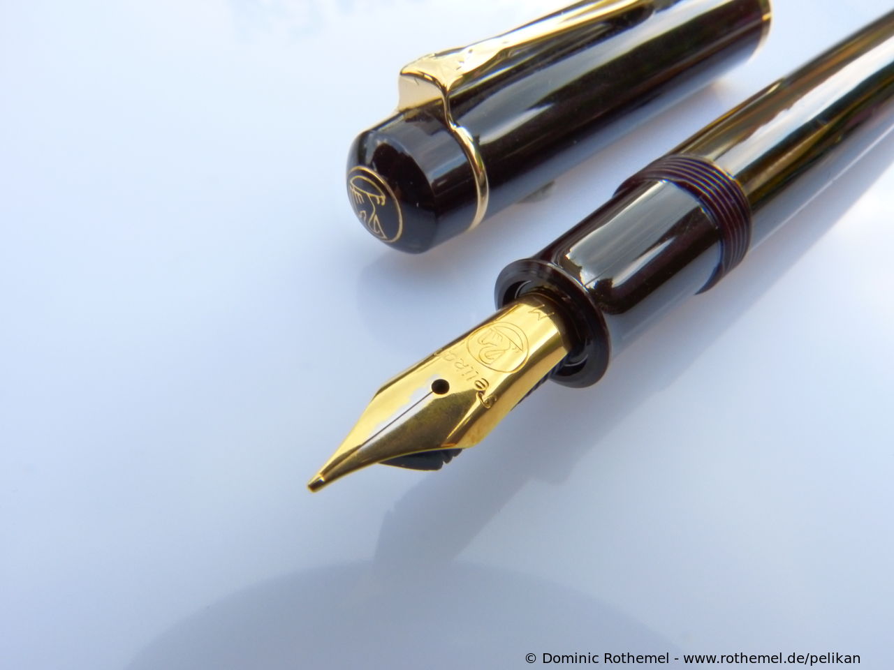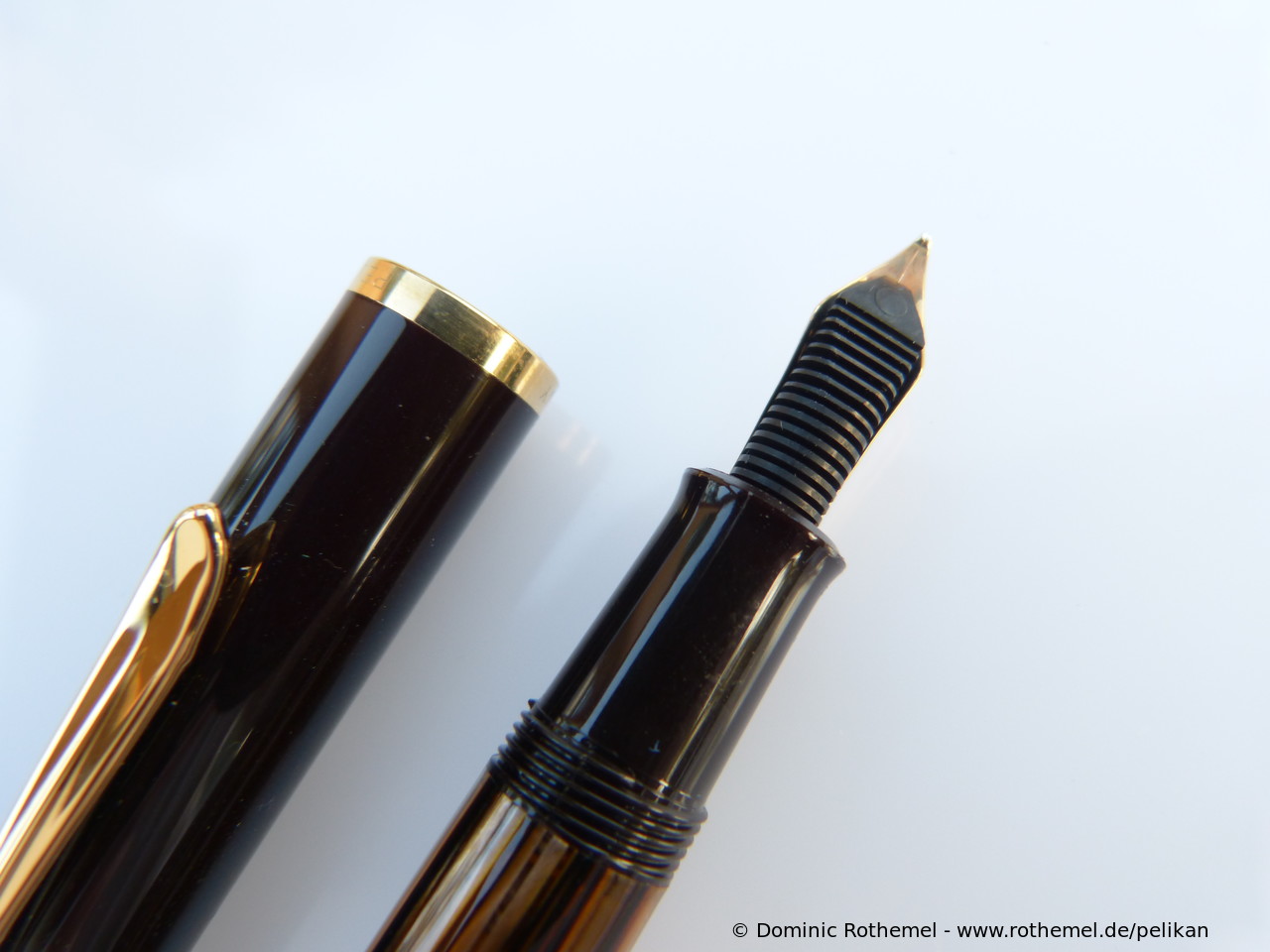 These cap inserts are identical to those of the M400 series, which are decorated with the logo and are held by a golden crown (clip ring). Since the M481 is the cheap version of the M400, he got the insignificant cap (the blind cap) instead of the golden crown, the logo disappeared. Later on, the M200 had the Pelikan logo on the cap. Initially it was screwed, later glued.
