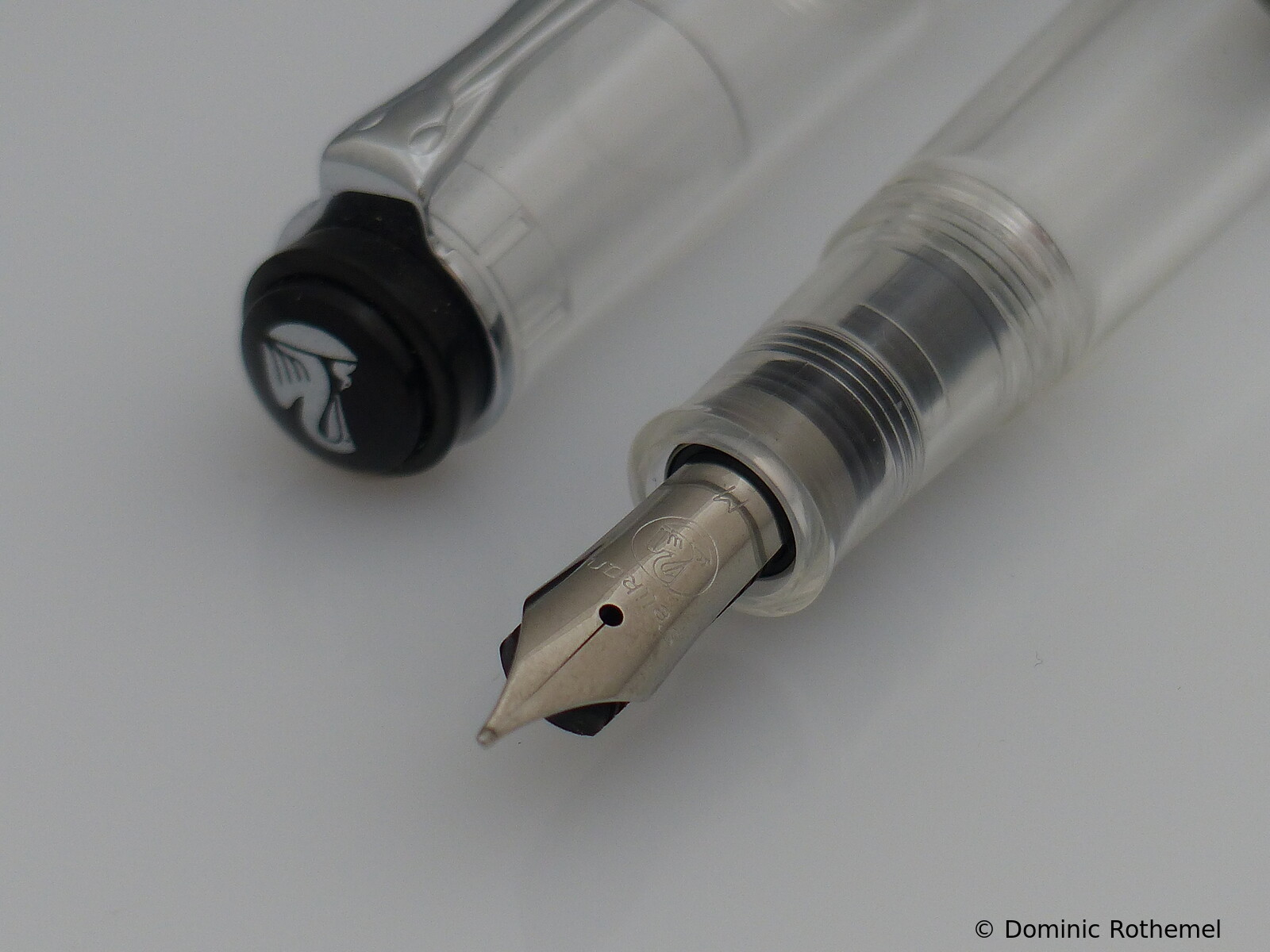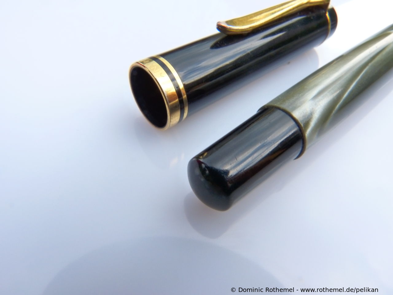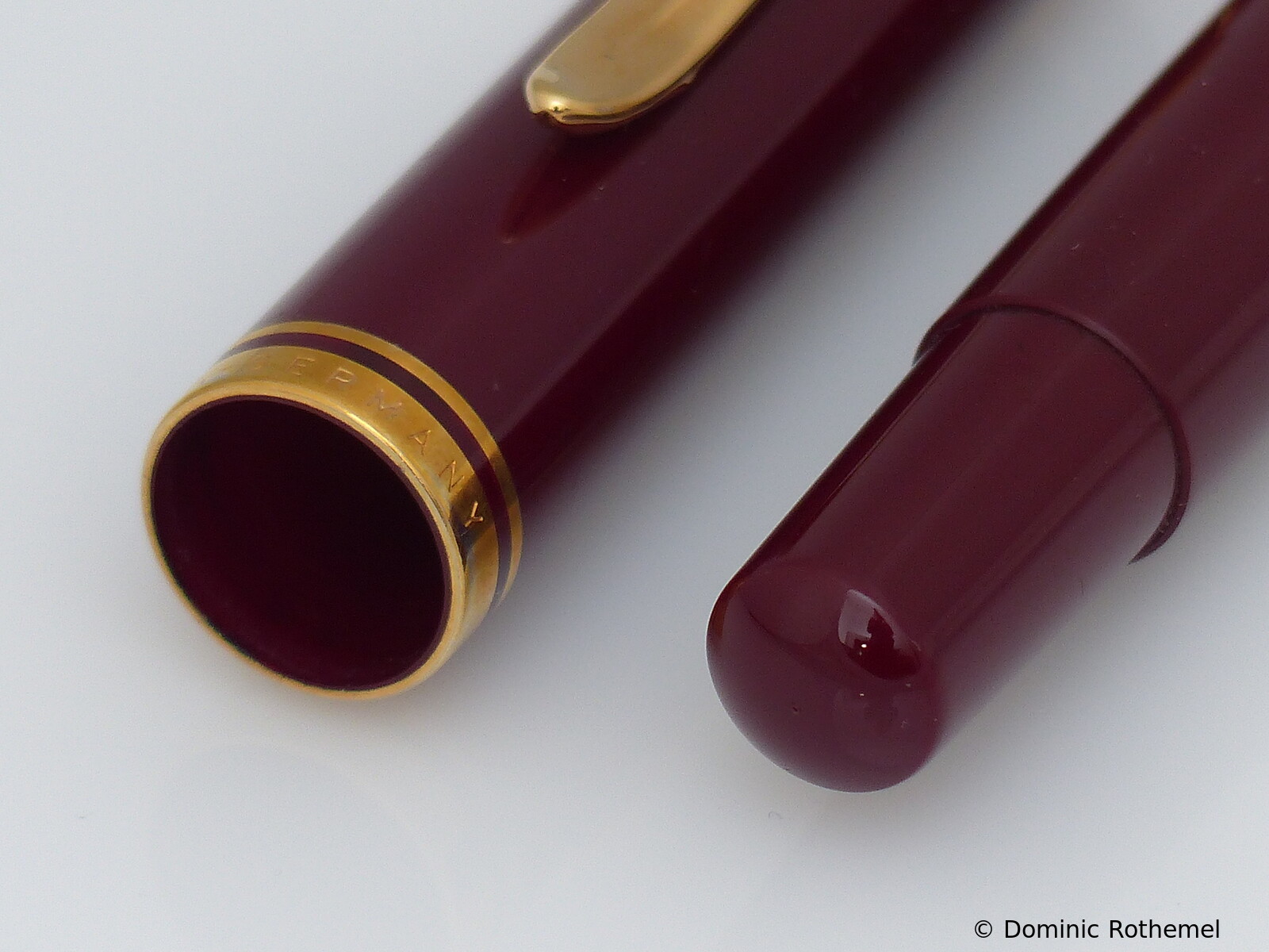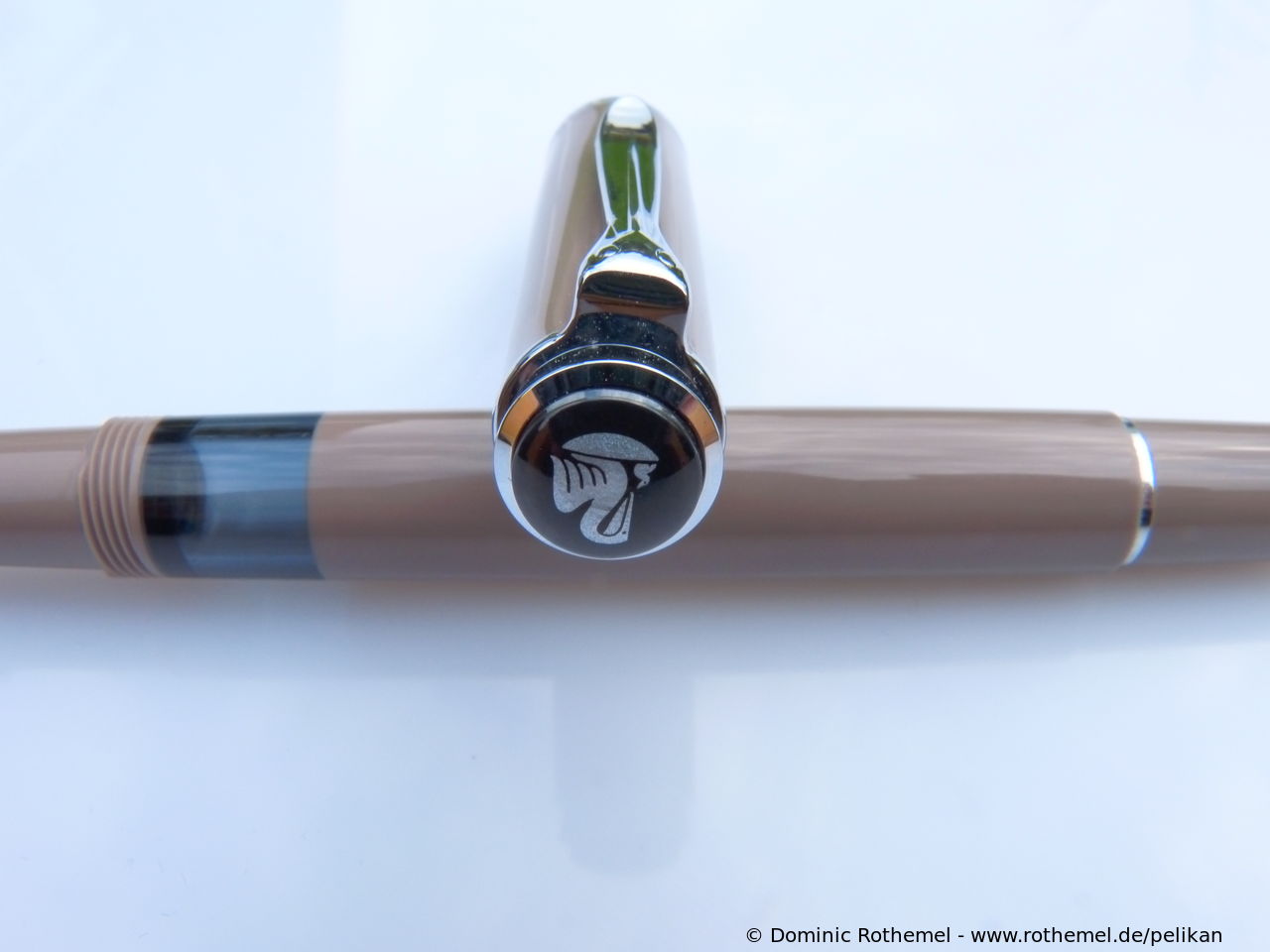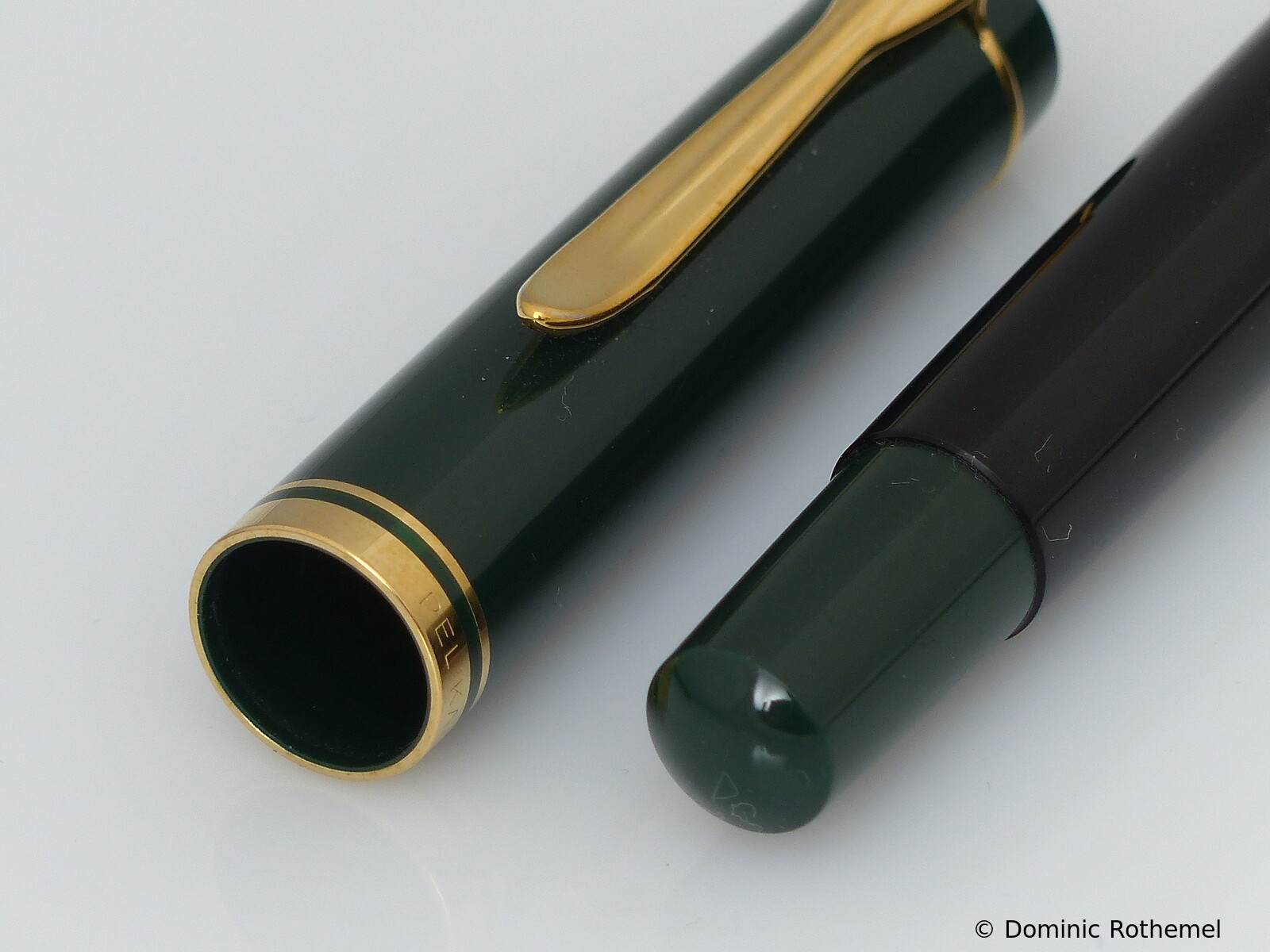 These cap inserts are identical to those of the M400 series, which are decorated with the logo and are held by a golden crown (clip ring). Since the M481 is the cheap version of the M400, he got the insignificant cap (the blind cap) instead of the golden crown, the logo disappeared. Later on, the M200 had the Pelikan logo on the cap. Initially it was screwed, later glued.