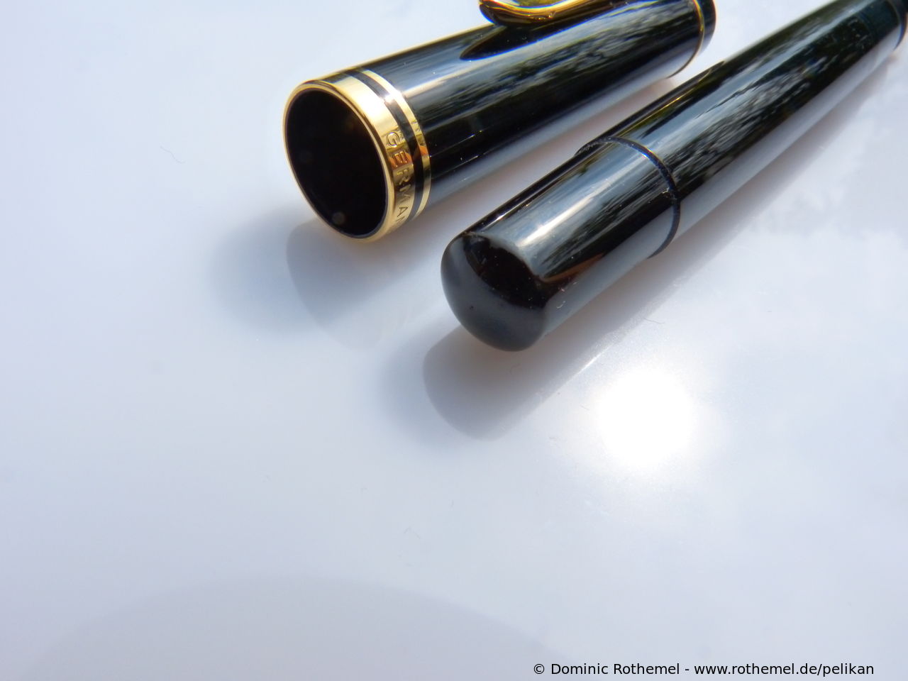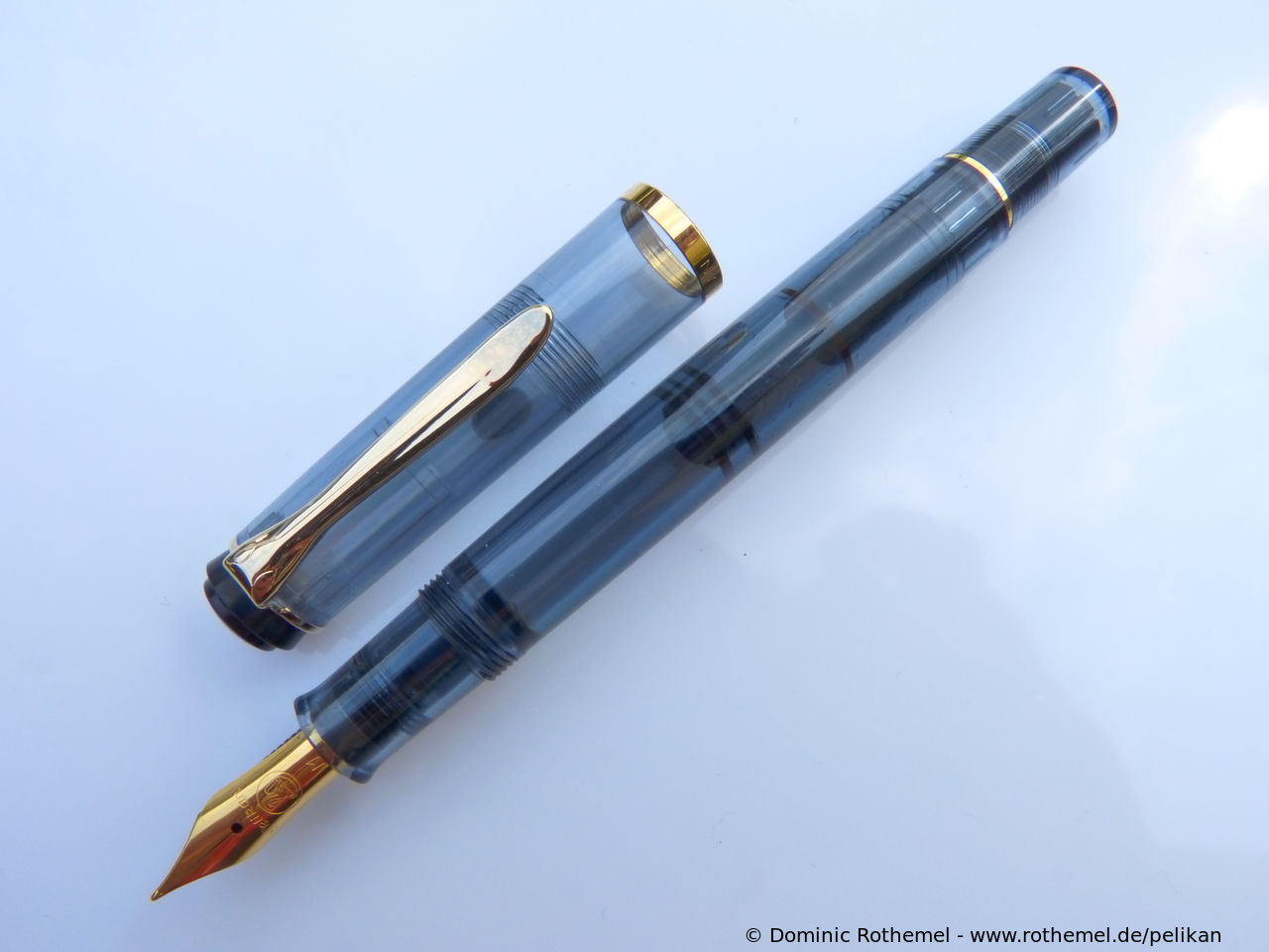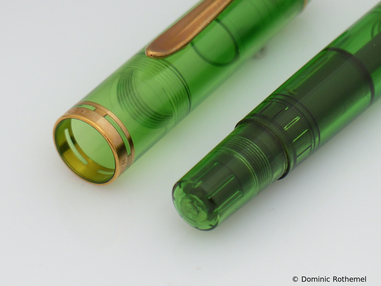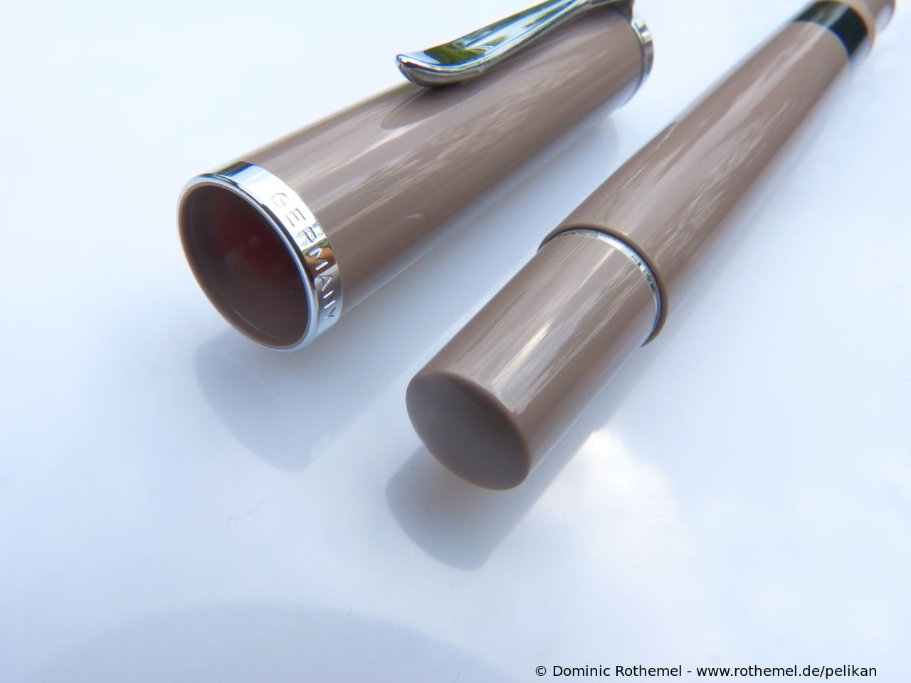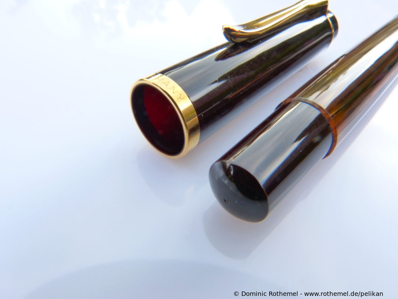 These cap inserts are identical to those of the M400 series, which are decorated with the logo and are held by a golden crown (clip ring). Since the M481 is the cheap version of the M400, he got the insignificant cap (the blind cap) instead of the golden crown, the logo disappeared. Later on, the M200 had the Pelikan logo on the cap. Initially it was screwed, later glued.