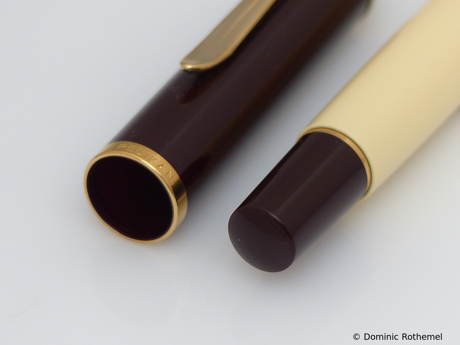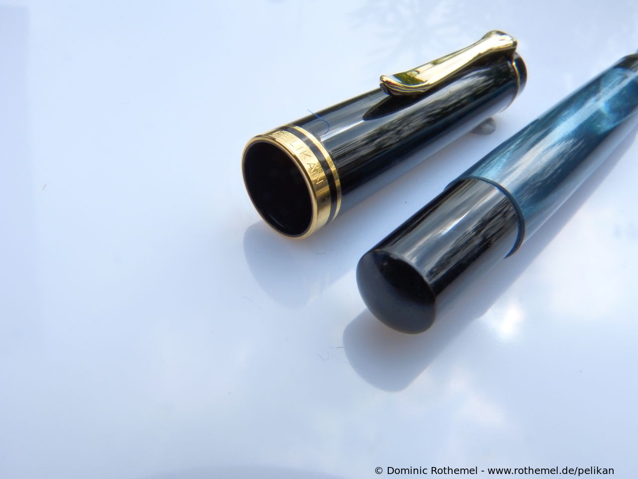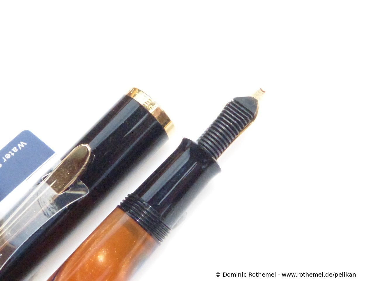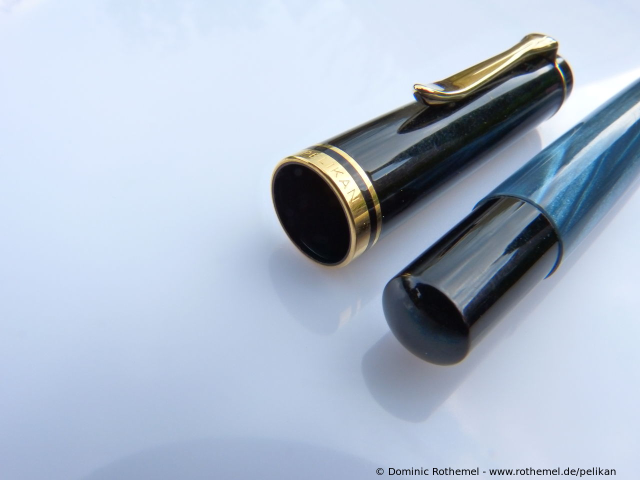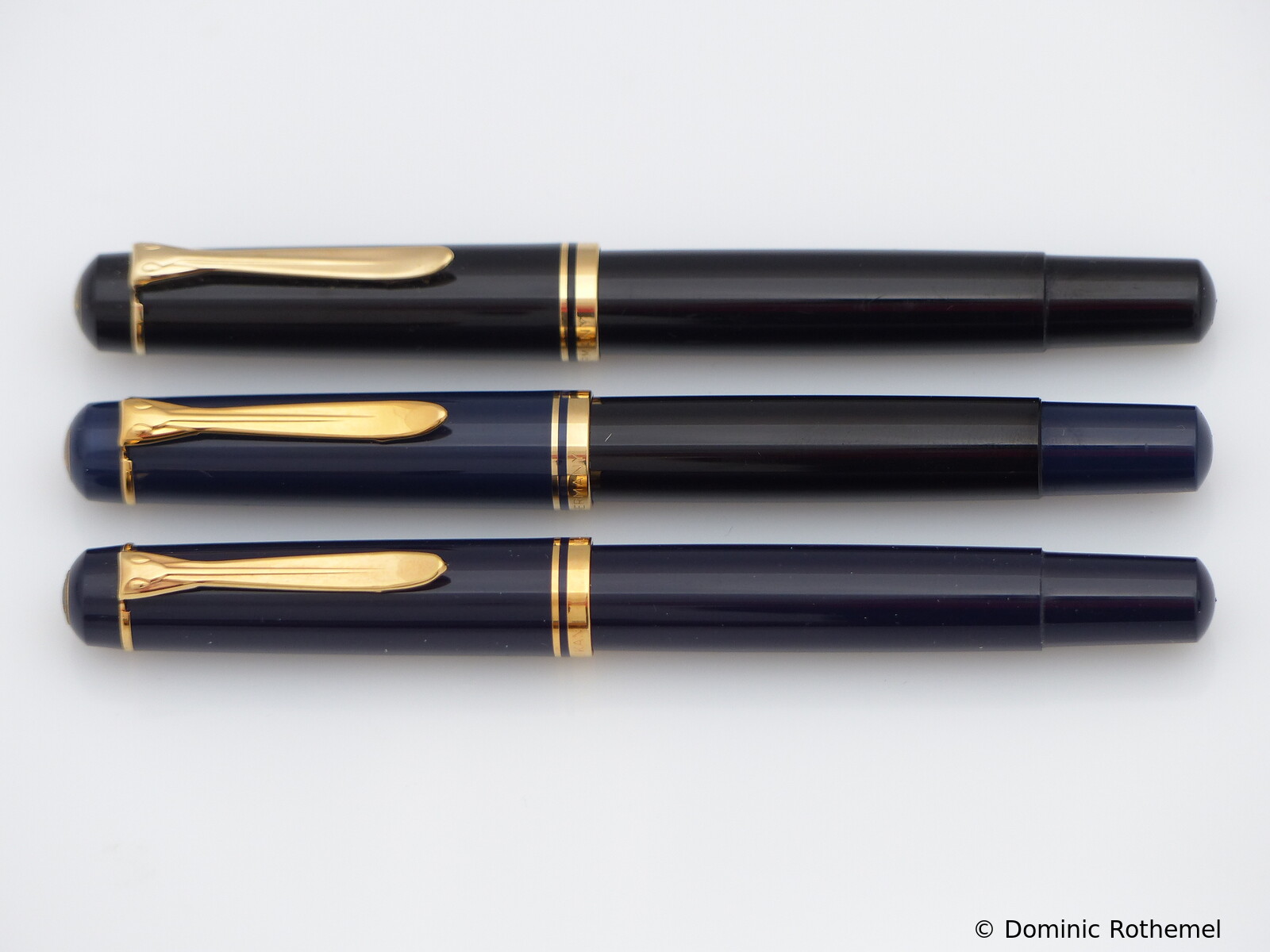 These cap inserts are identical to those of the M400 series, which are decorated with the logo and are held by a golden crown (clip ring). Since the M481 is the cheap version of the M400, he got the insignificant cap (the blind cap) instead of the golden crown, the logo disappeared. Later on, the M200 had the Pelikan logo on the cap. Initially it was screwed, later glued.