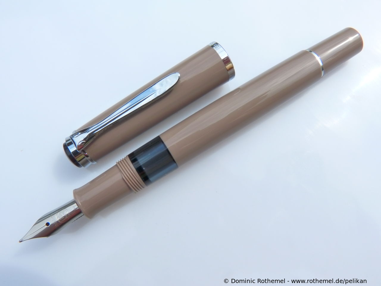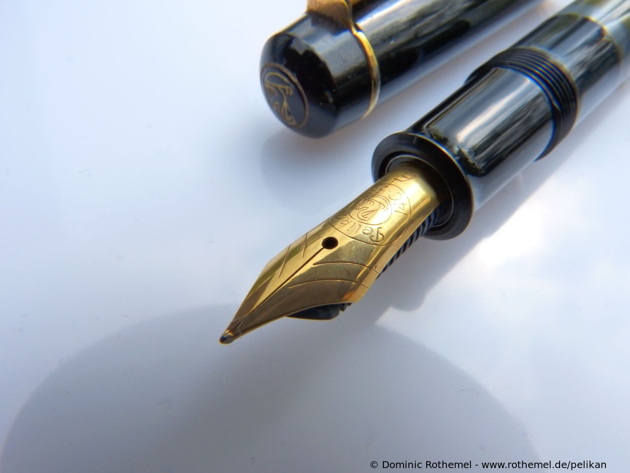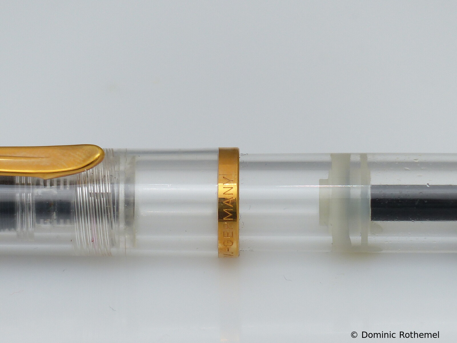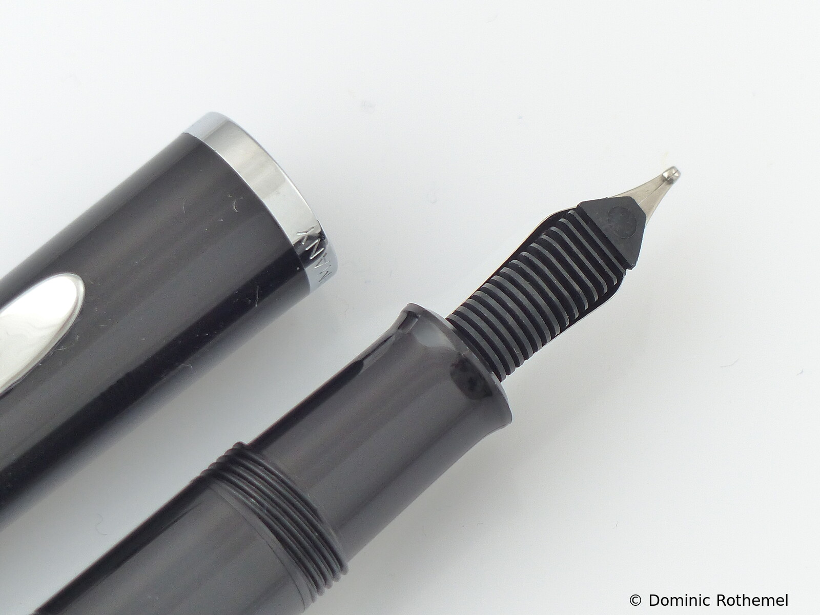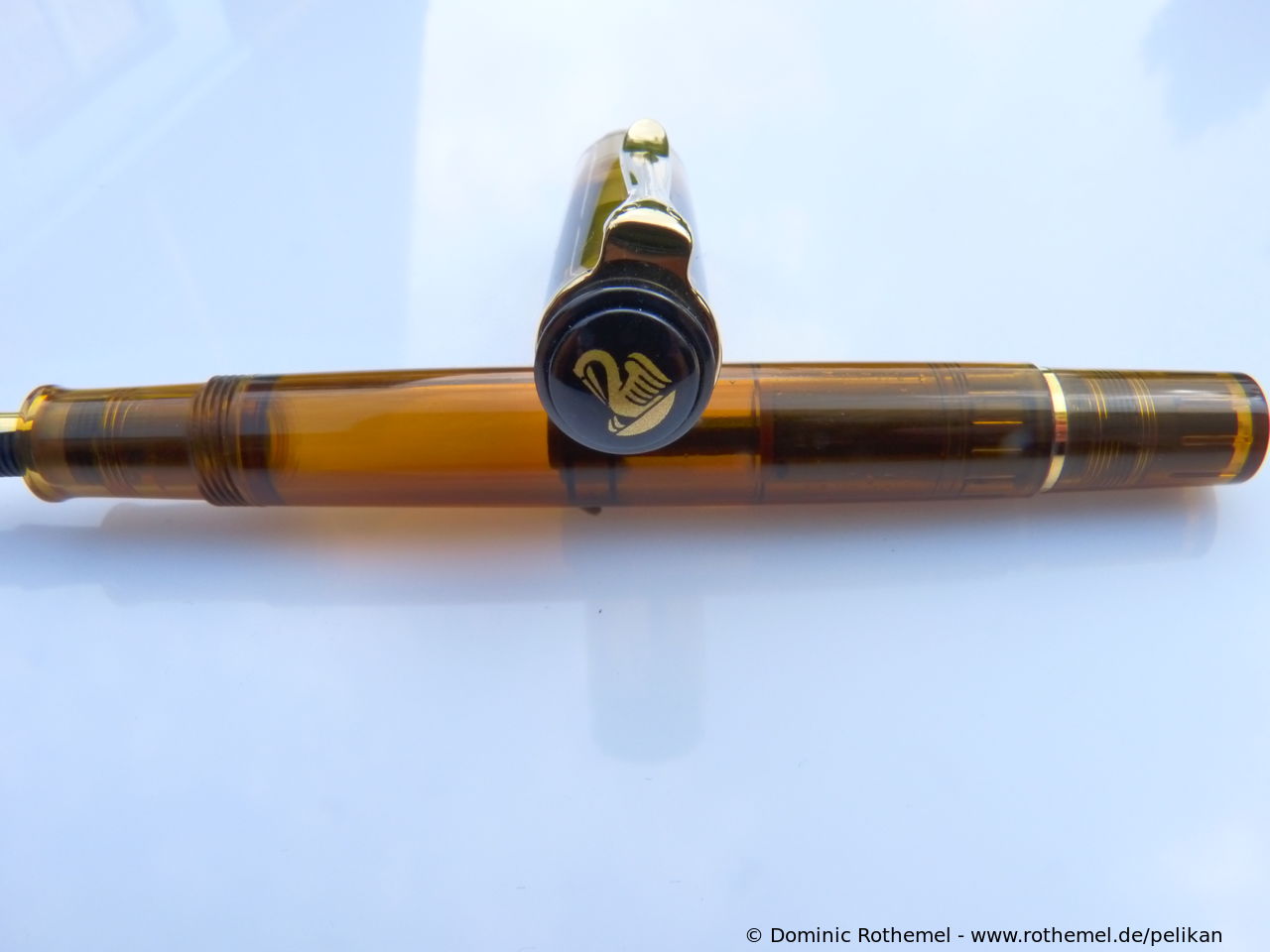 These cap inserts are identical to those of the M400 series, which are decorated with the logo and are held by a golden crown (clip ring). Since the M481 is the cheap version of the M400, he got the insignificant cap (the blind cap) instead of the golden crown, the logo disappeared. Later on, the M200 had the Pelikan logo on the cap. Initially it was screwed, later glued.
