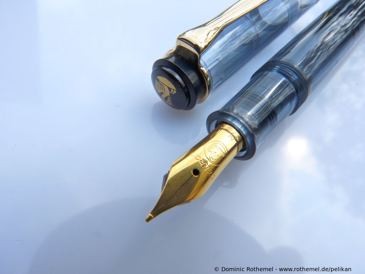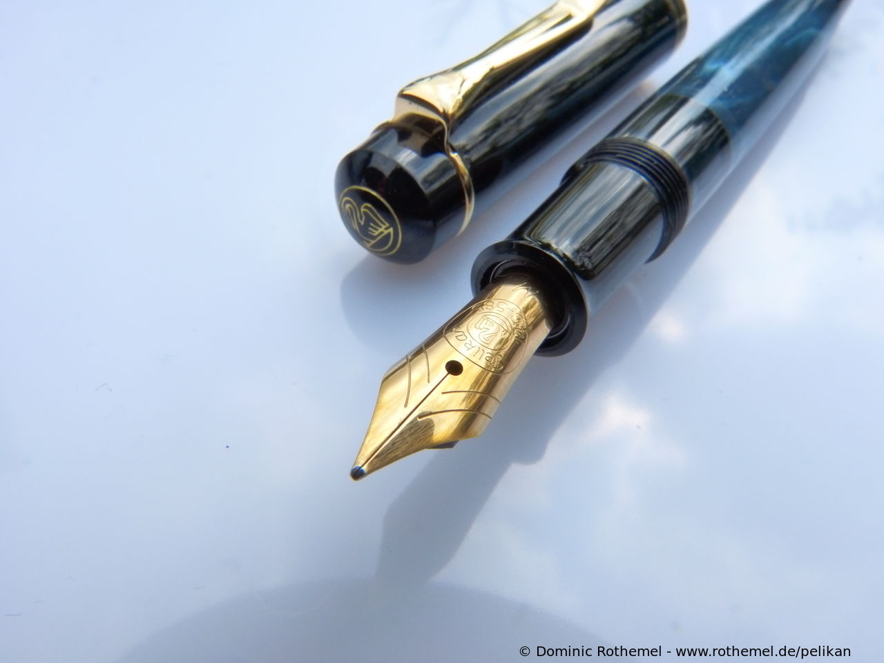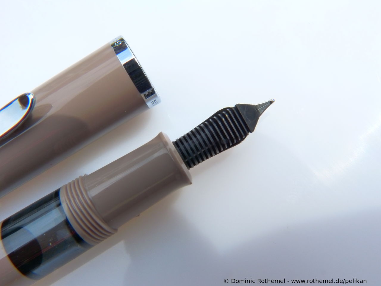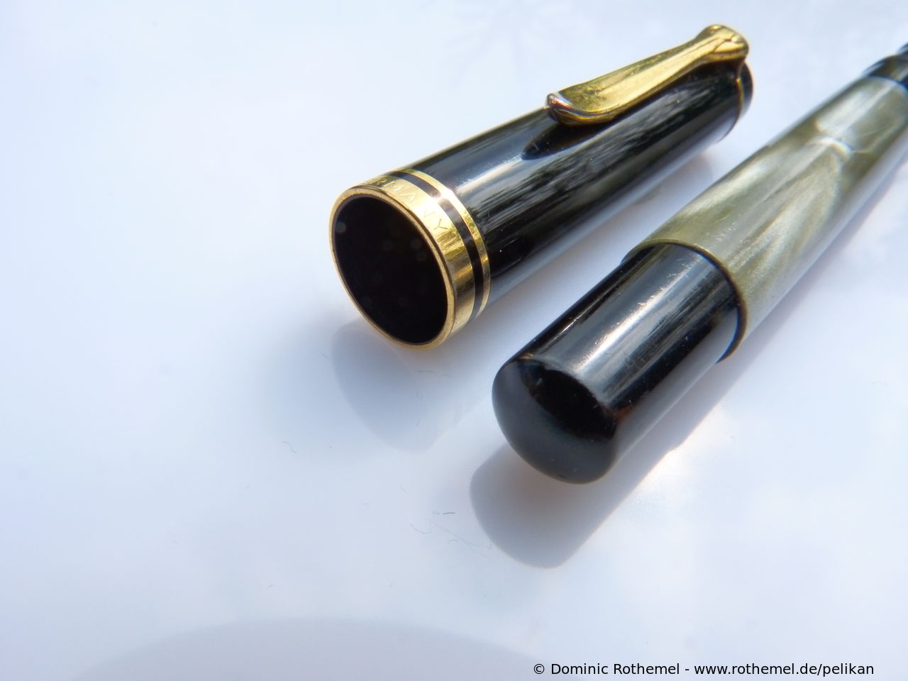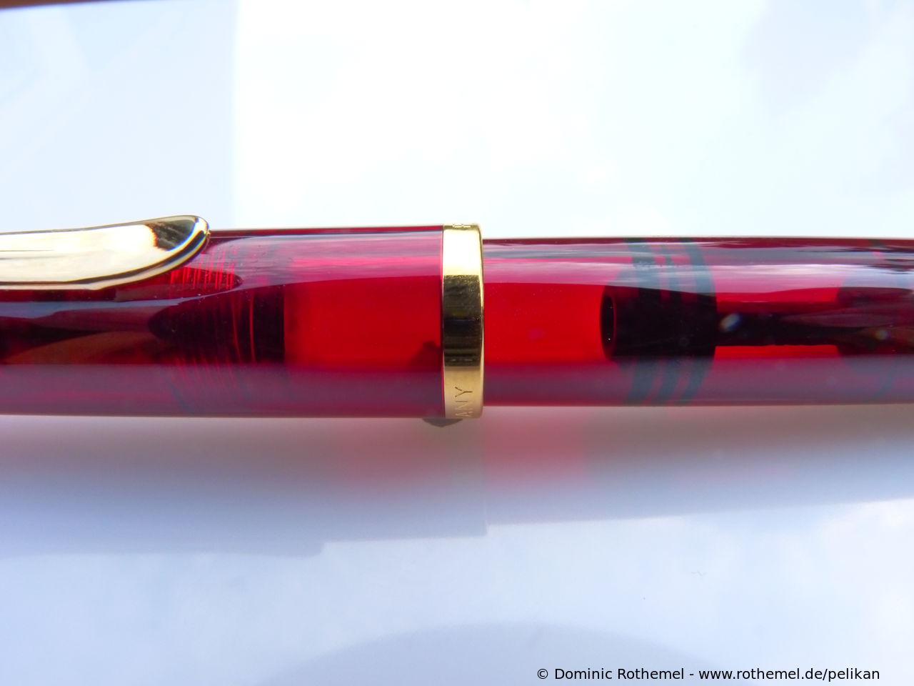 These cap inserts are identical to those of the M400 series, which are decorated with the logo and are held by a golden crown (clip ring). Since the M481 is the cheap version of the M400, he got the insignificant cap (the blind cap) instead of the golden crown, the logo disappeared. Later on, the M200 had the Pelikan logo on the cap. Initially it was screwed, later glued.