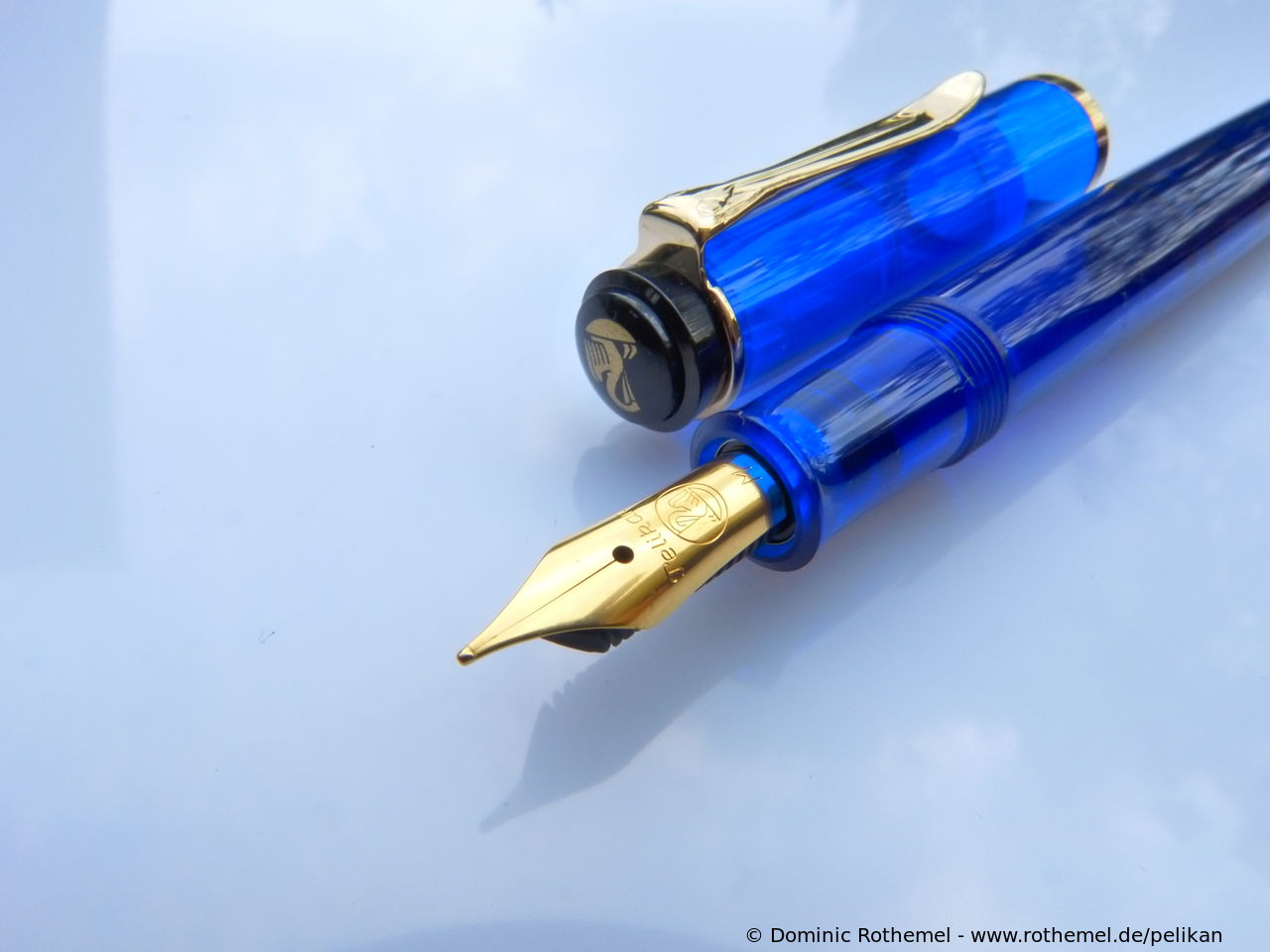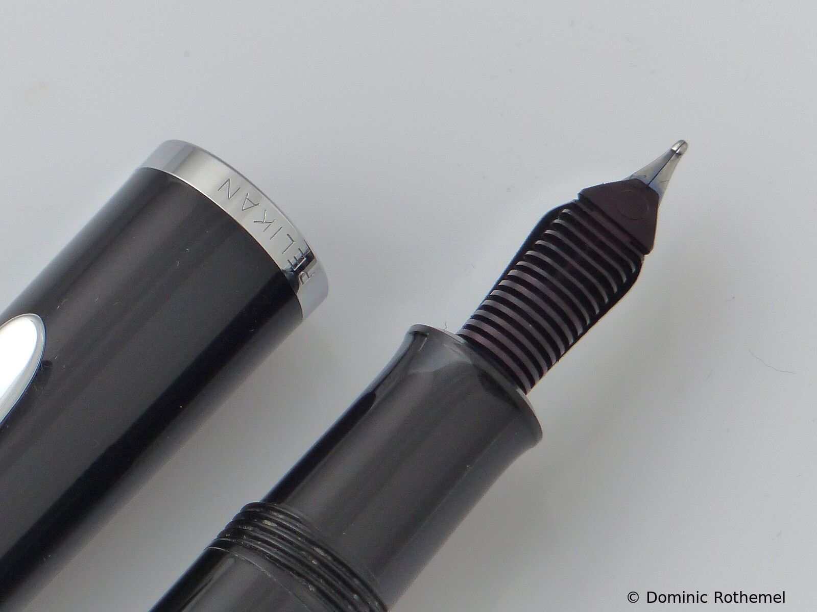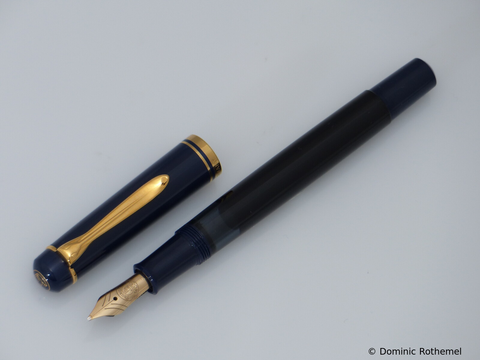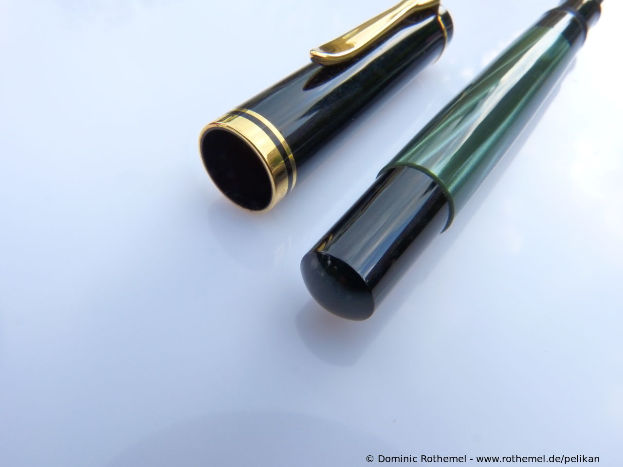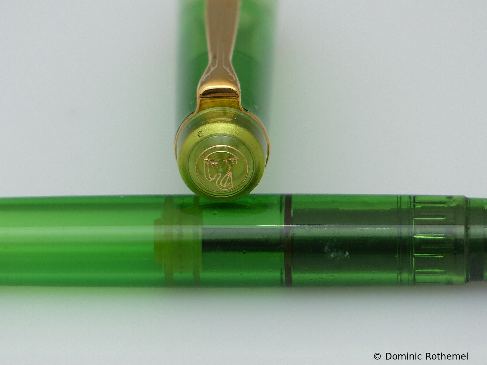 These cap inserts are identical to those of the M400 series, which are decorated with the logo and are held by a golden crown (clip ring). Since the M481 is the cheap version of the M400, he got the insignificant cap (the blind cap) instead of the golden crown, the logo disappeared. Later on, the M200 had the Pelikan logo on the cap. Initially it was screwed, later glued.
