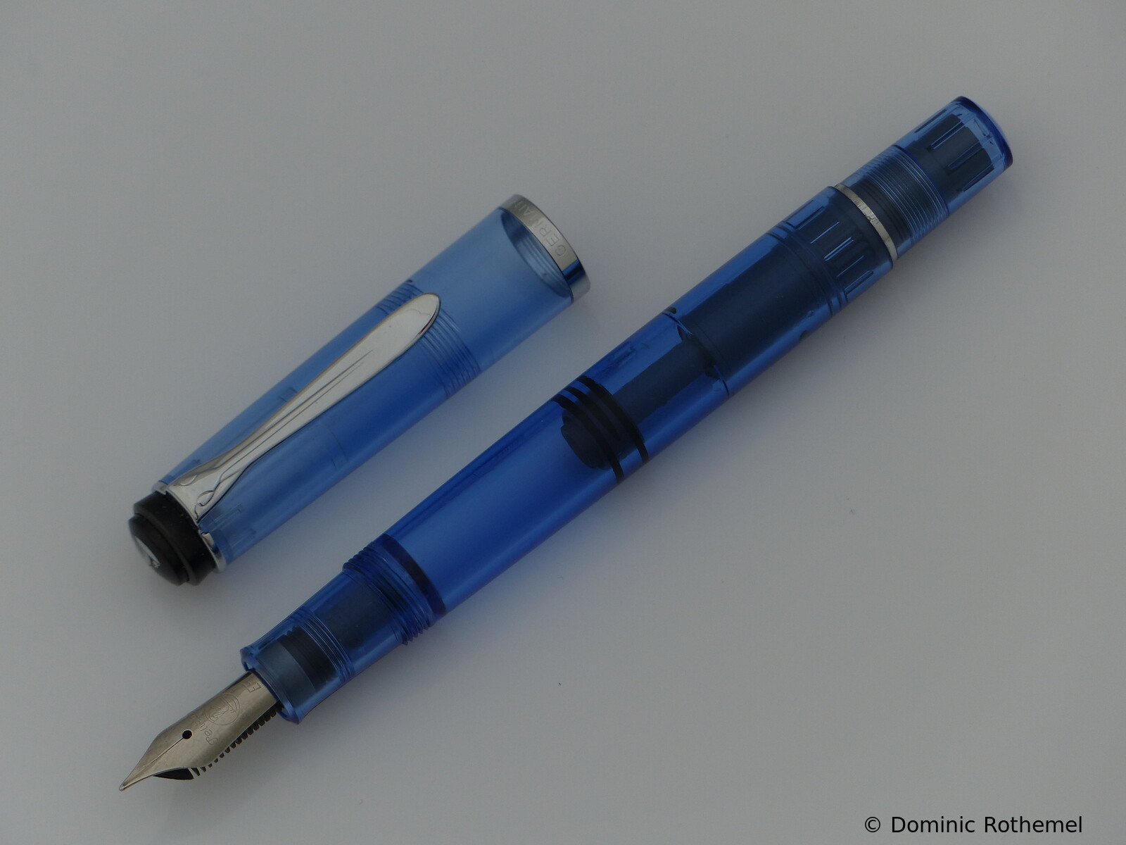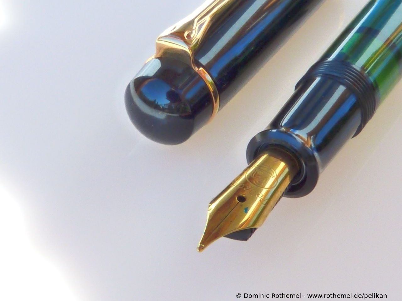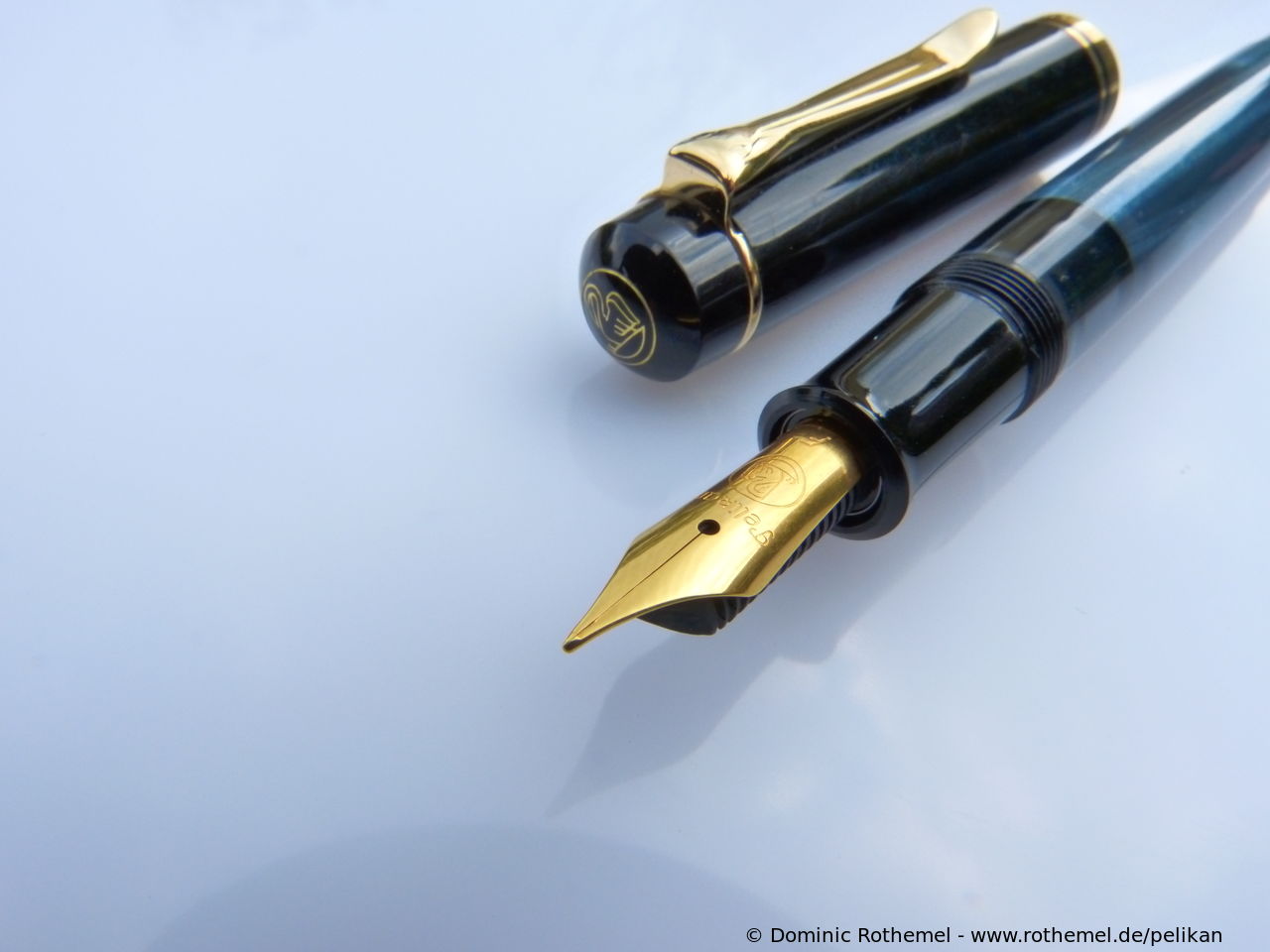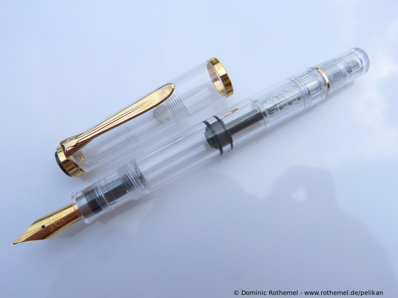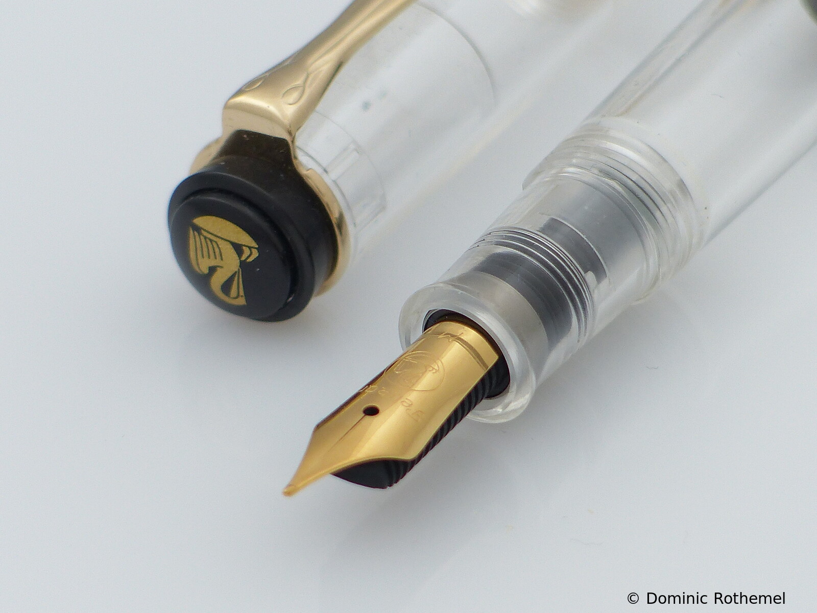 These cap inserts are identical to those of the M400 series, which are decorated with the logo and are held by a golden crown (clip ring). Since the M481 is the cheap version of the M400, he got the insignificant cap (the blind cap) instead of the golden crown, the logo disappeared. Later on, the M200 had the Pelikan logo on the cap. Initially it was screwed, later glued.