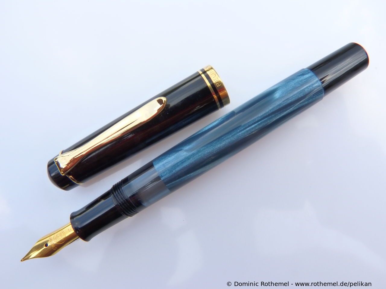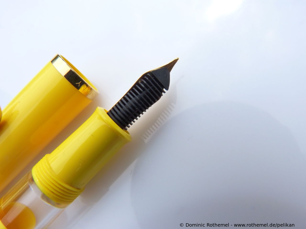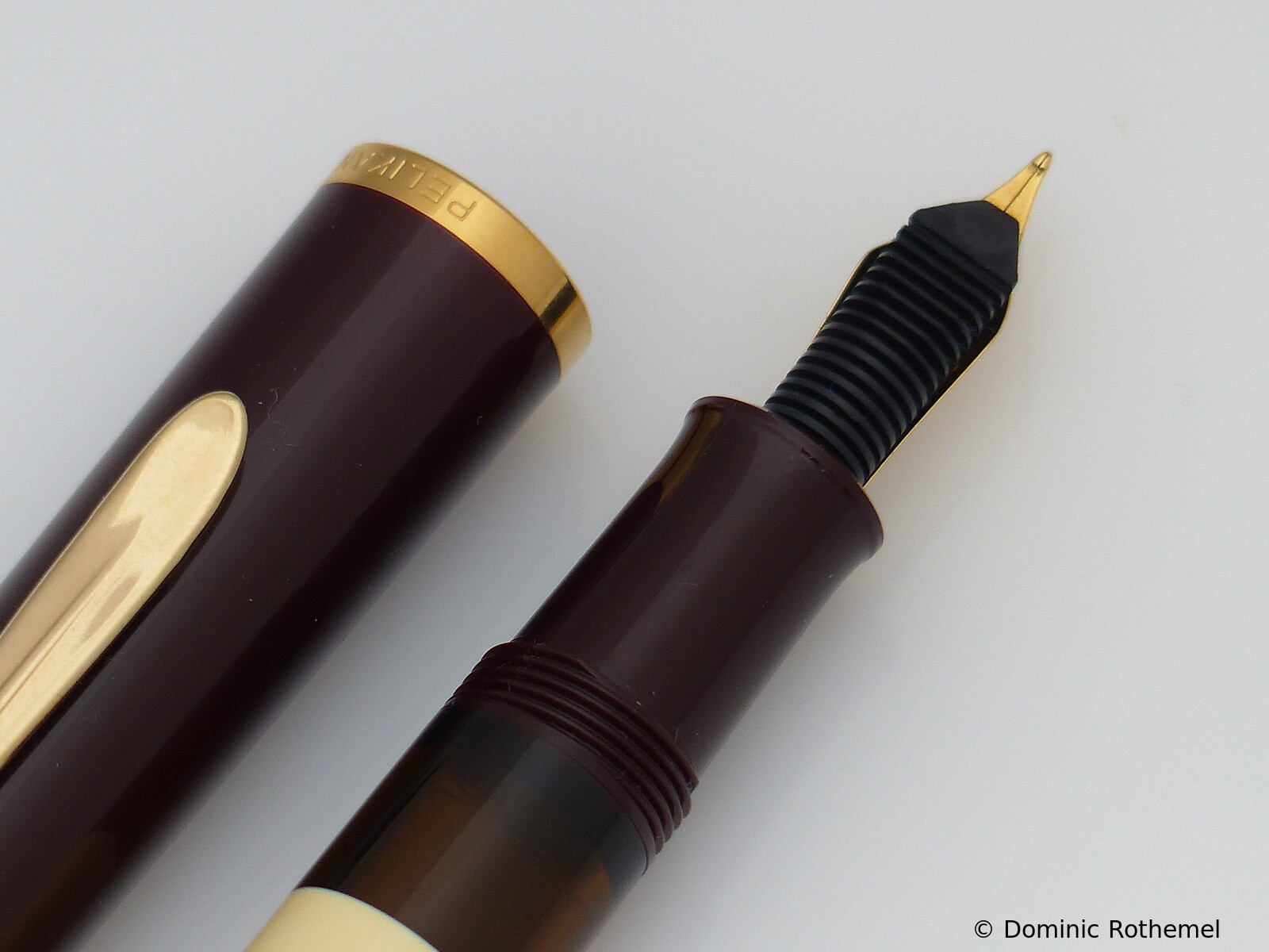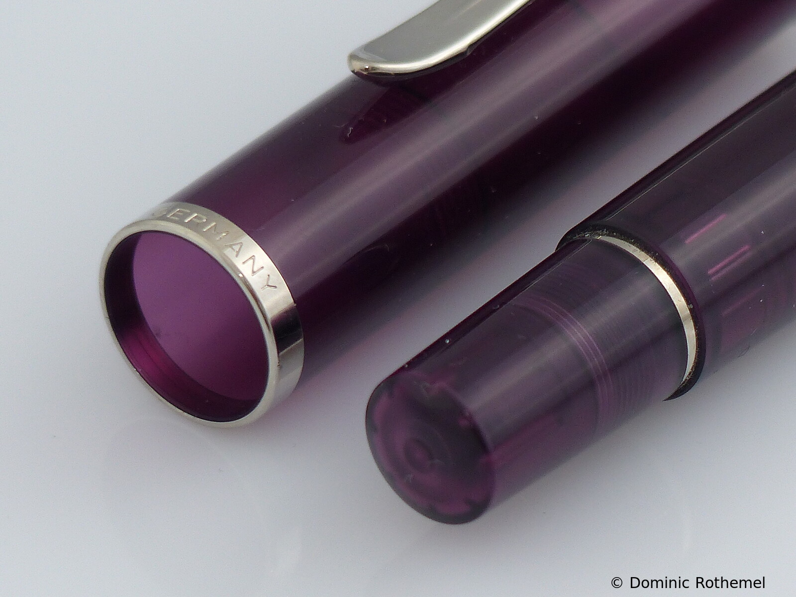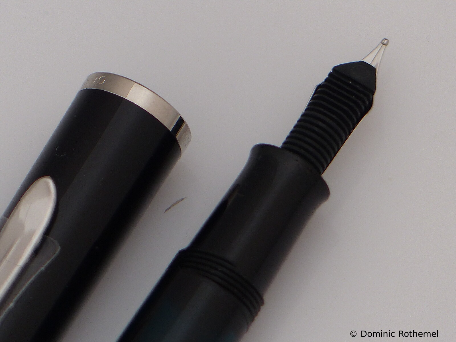 These cap inserts are identical to those of the M400 series, which are decorated with the logo and are held by a golden crown (clip ring). Since the M481 is the cheap version of the M400, he got the insignificant cap (the blind cap) instead of the golden crown, the logo disappeared. Later on, the M200 had the Pelikan logo on the cap. Initially it was screwed, later glued.
