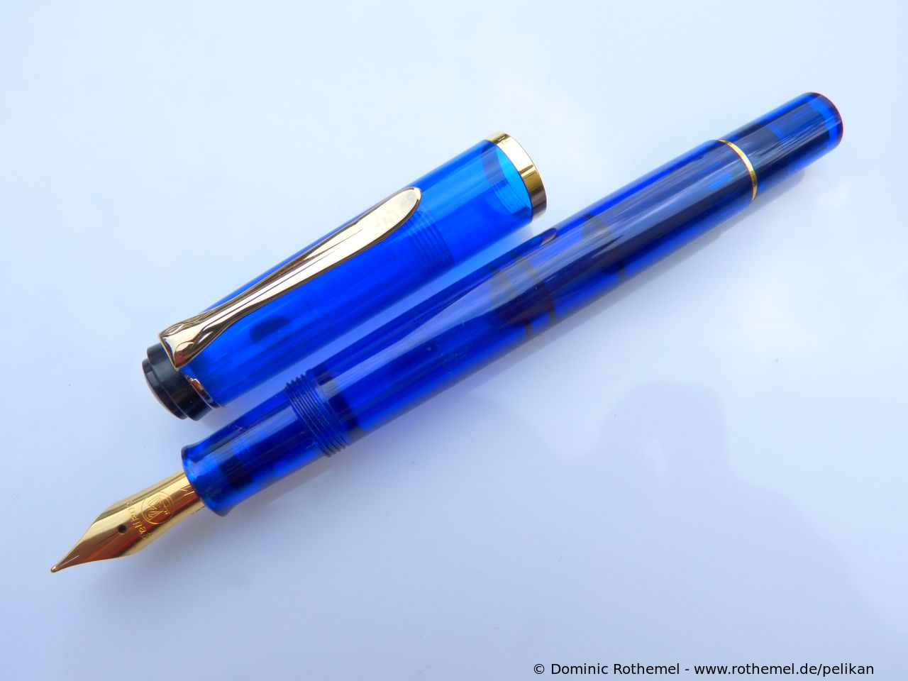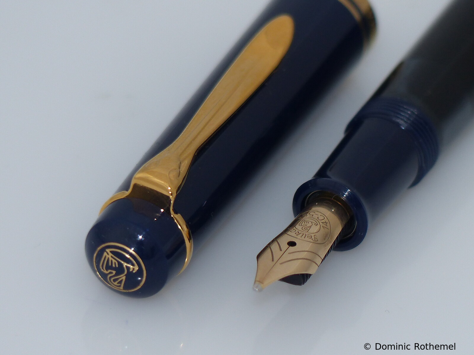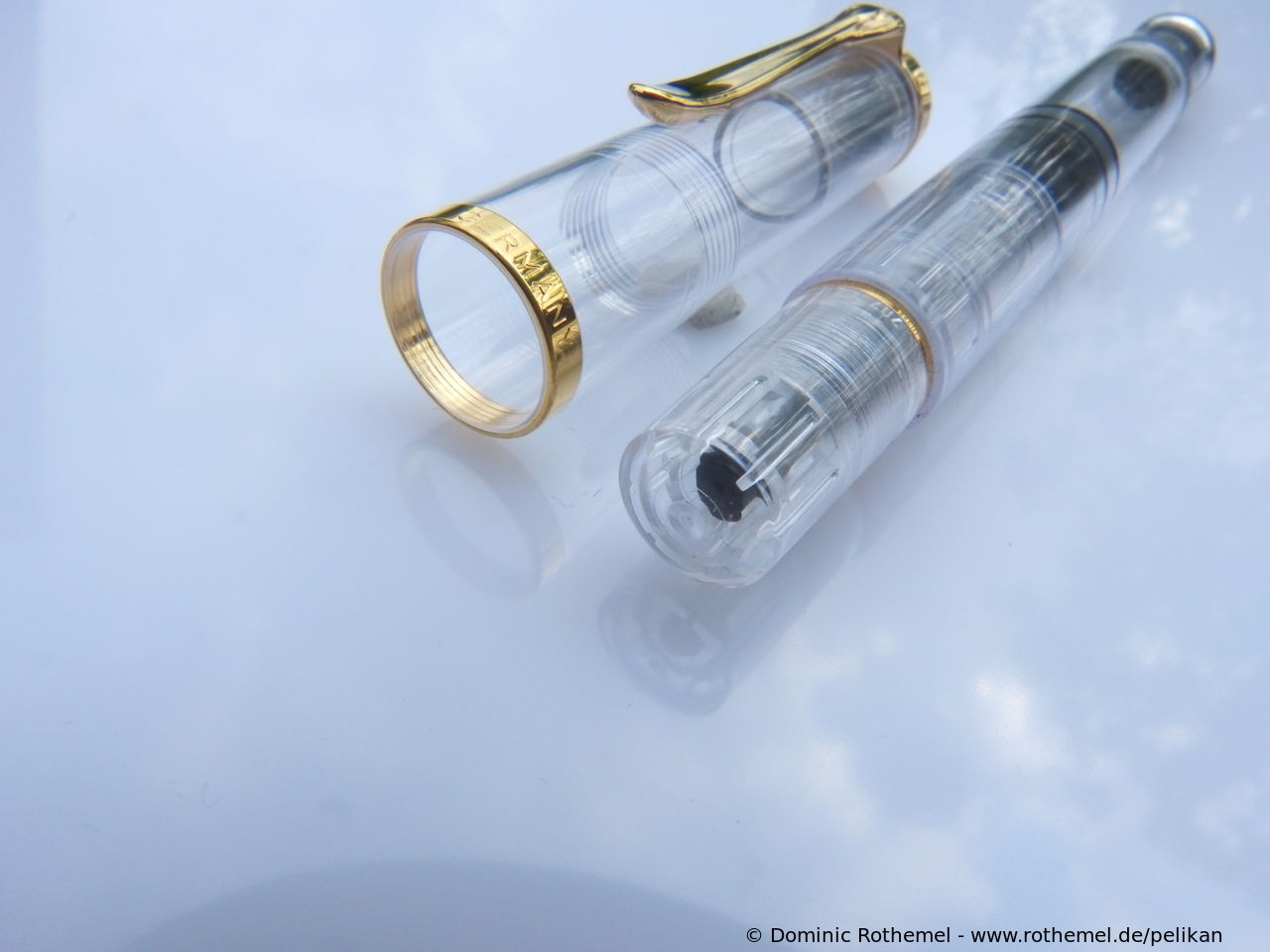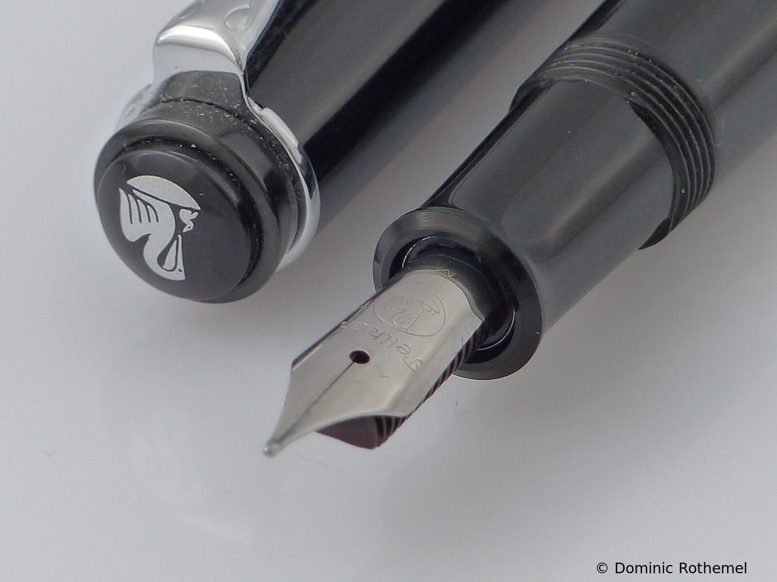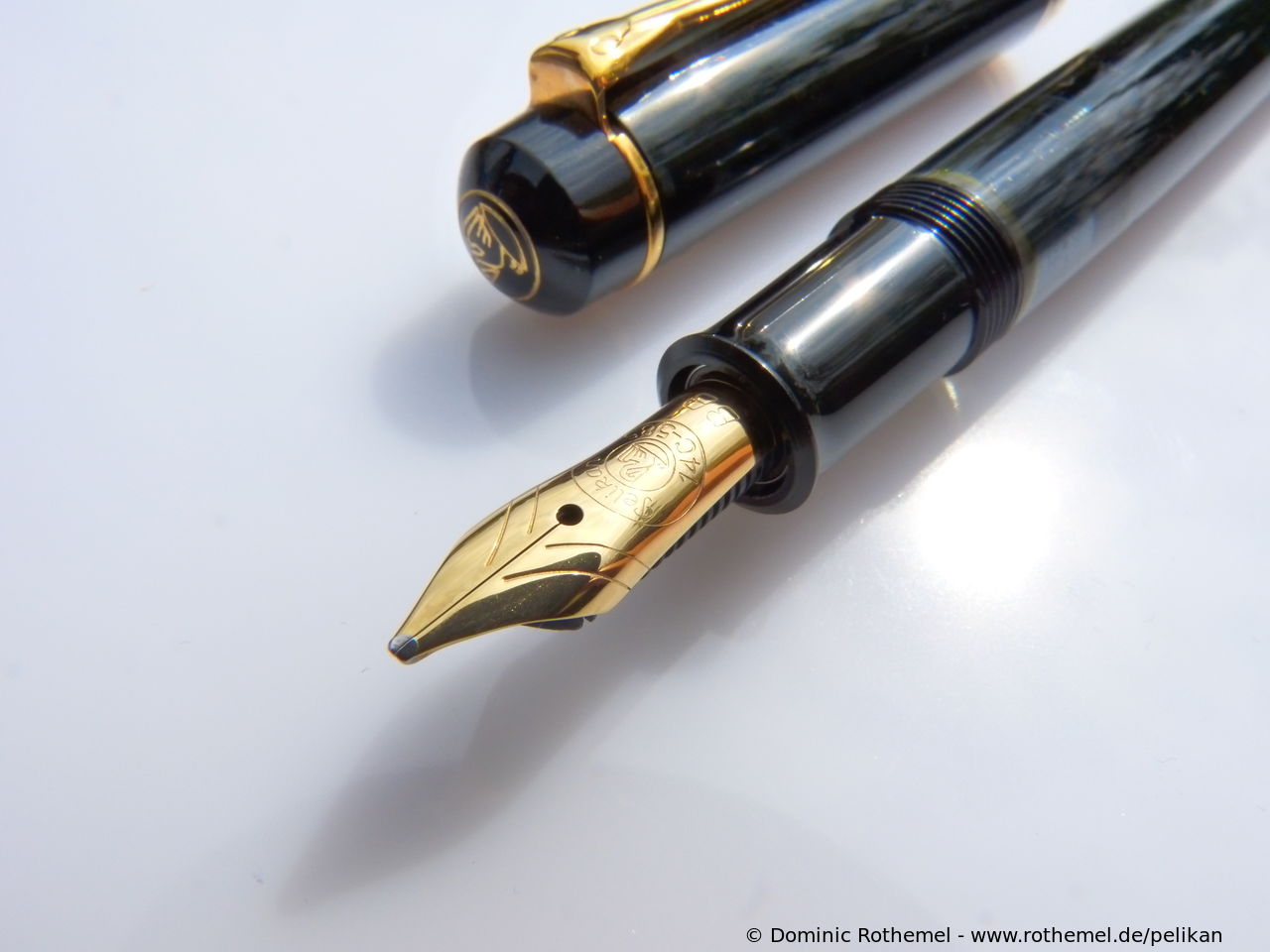 These cap inserts are identical to those of the M400 series, which are decorated with the logo and are held by a golden crown (clip ring). Since the M481 is the cheap version of the M400, he got the insignificant cap (the blind cap) instead of the golden crown, the logo disappeared. Later on, the M200 had the Pelikan logo on the cap. Initially it was screwed, later glued.