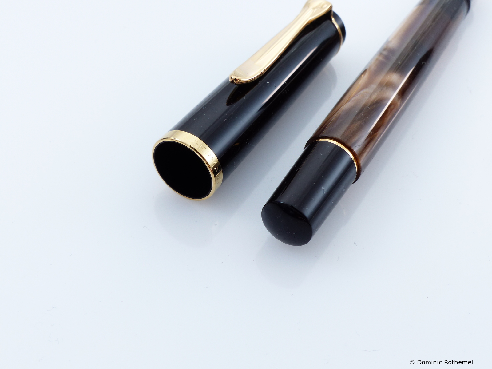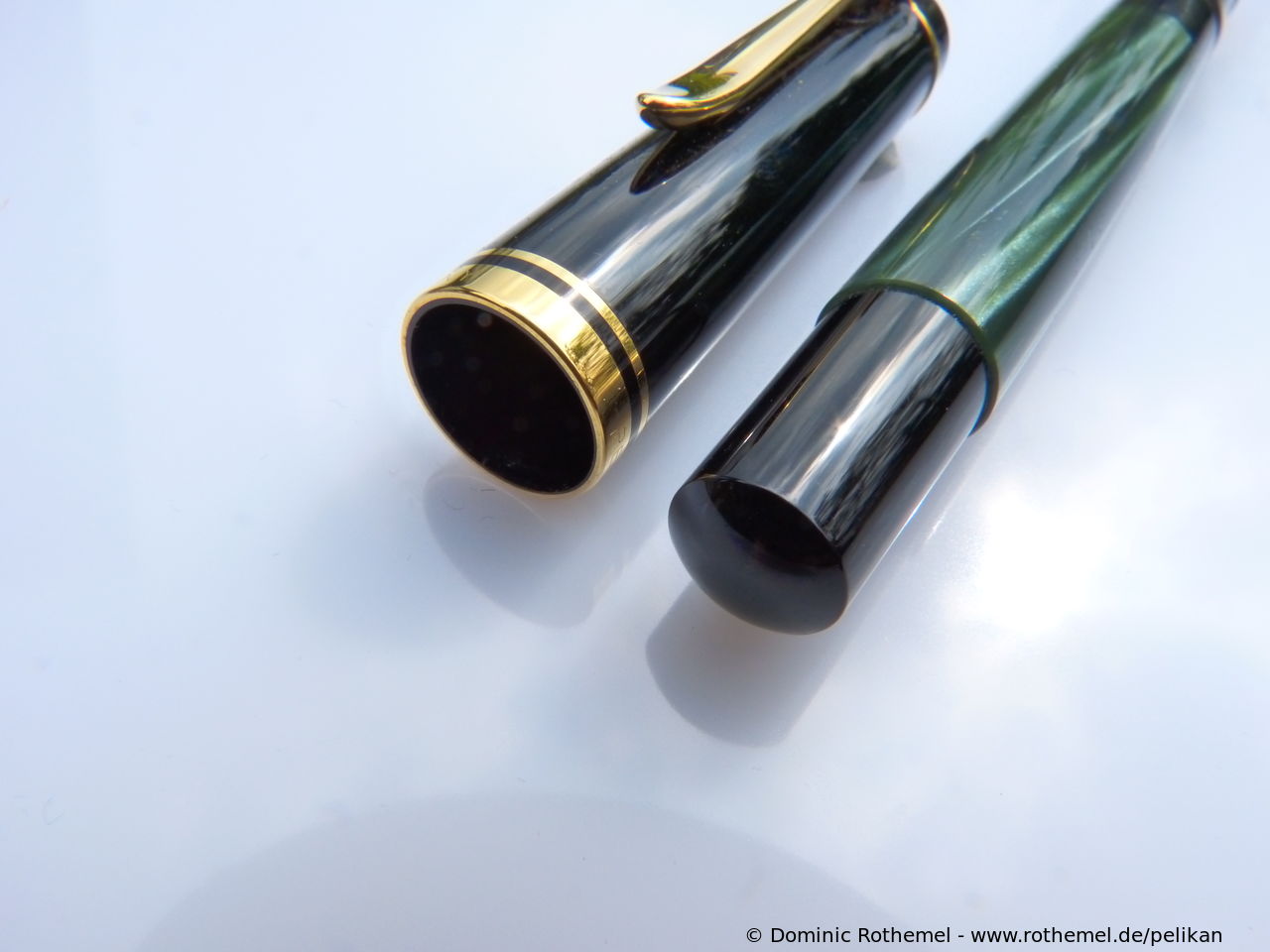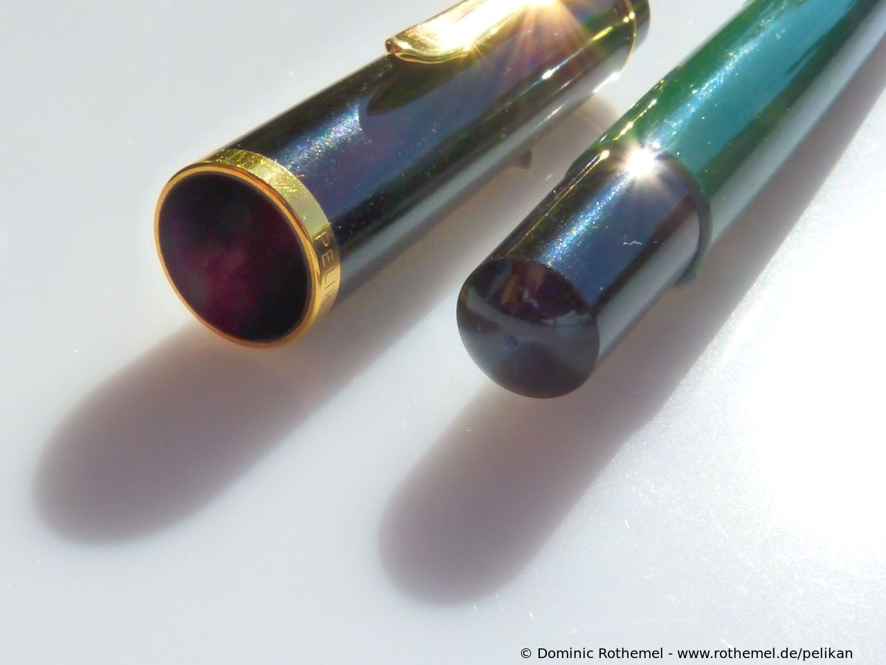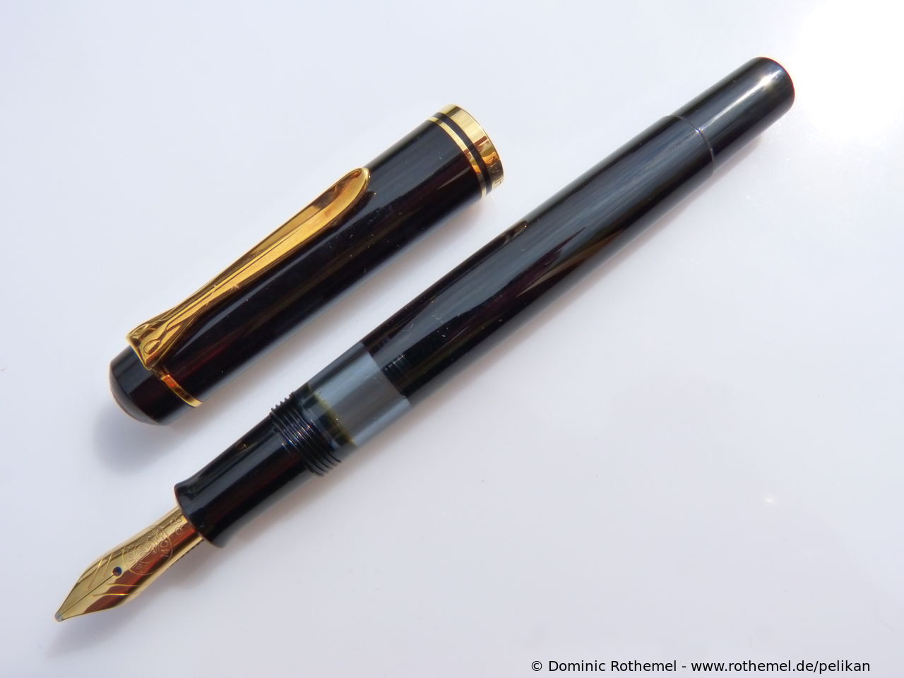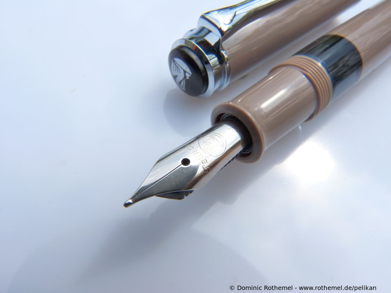 These cap inserts are identical to those of the M400 series, which are decorated with the logo and are held by a golden crown (clip ring). Since the M481 is the cheap version of the M400, he got the insignificant cap (the blind cap) instead of the golden crown, the logo disappeared. Later on, the M200 had the Pelikan logo on the cap. Initially it was screwed, later glued.