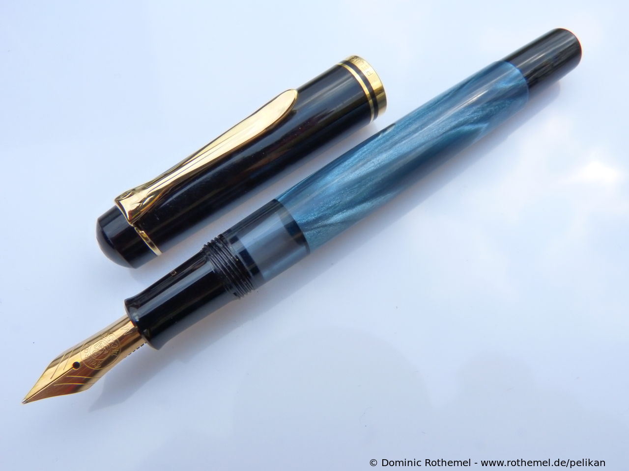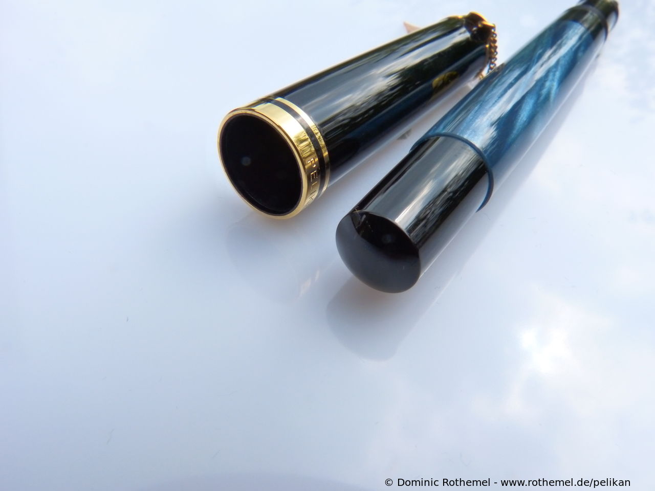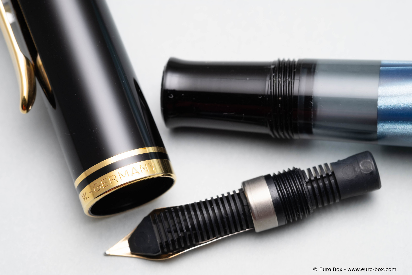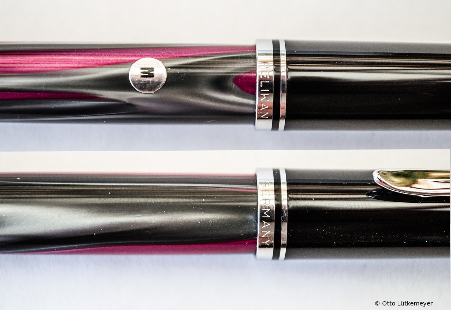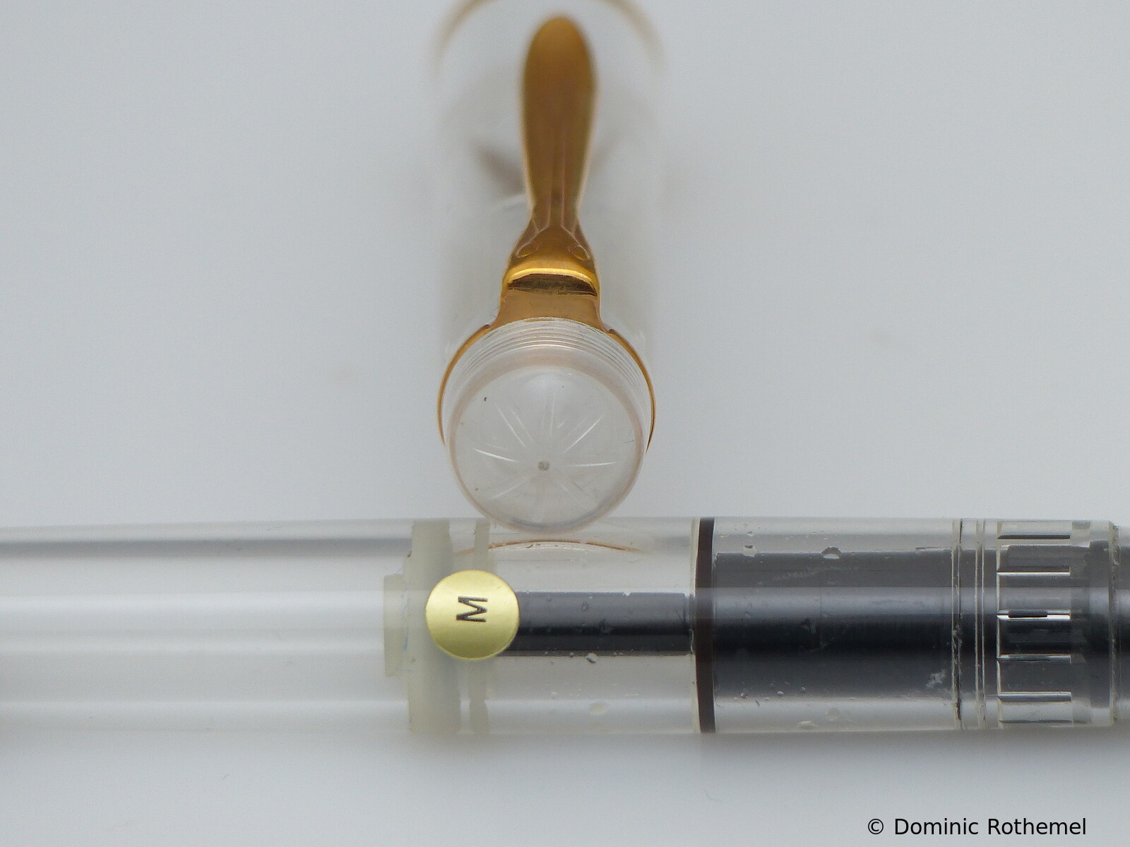 These cap inserts are identical to those of the M400 series, which are decorated with the logo and are held by a golden crown (clip ring). Since the M481 is the cheap version of the M400, he got the insignificant cap (the blind cap) instead of the golden crown, the logo disappeared. Later on, the M200 had the Pelikan logo on the cap. Initially it was screwed, later glued.