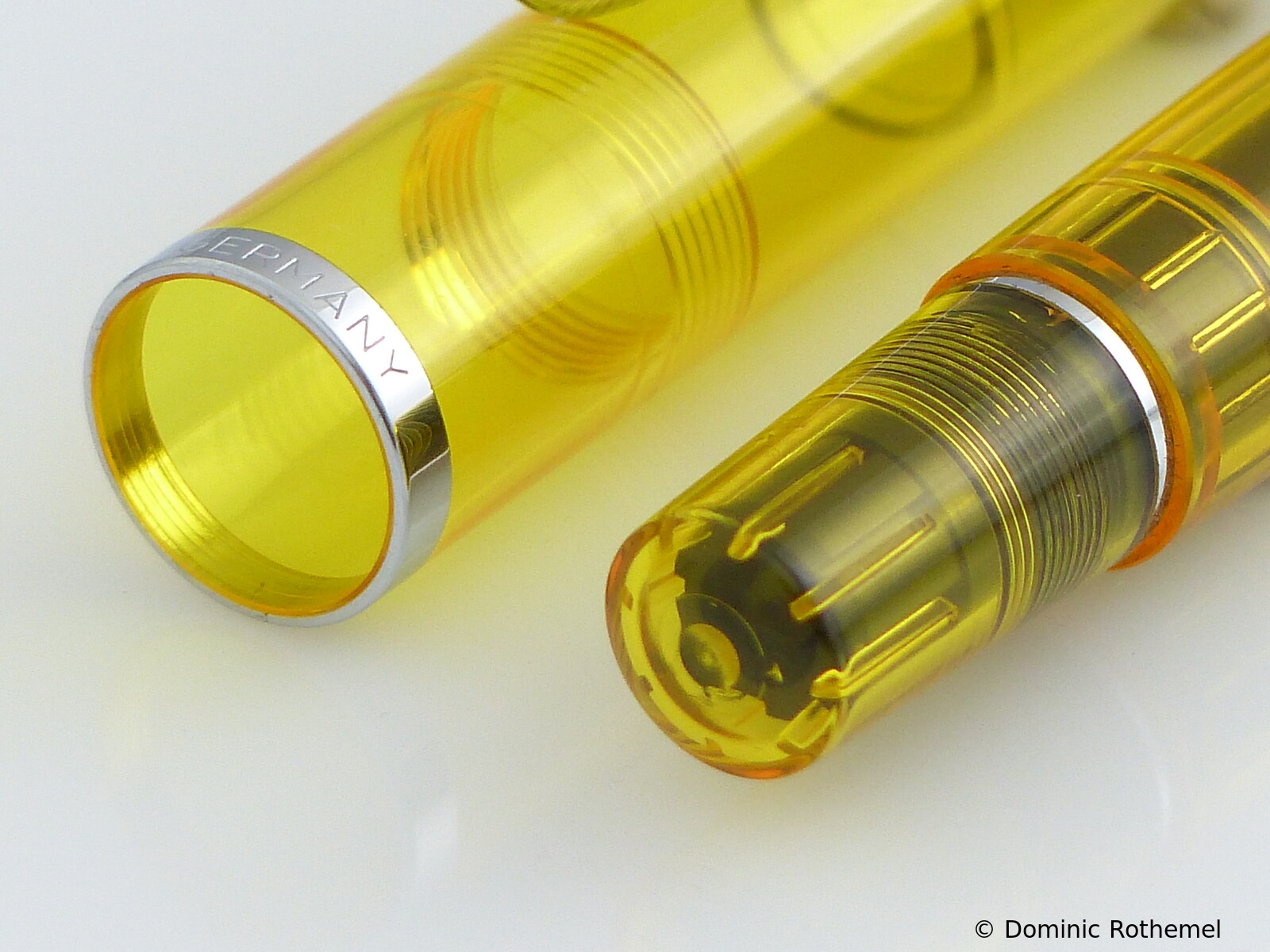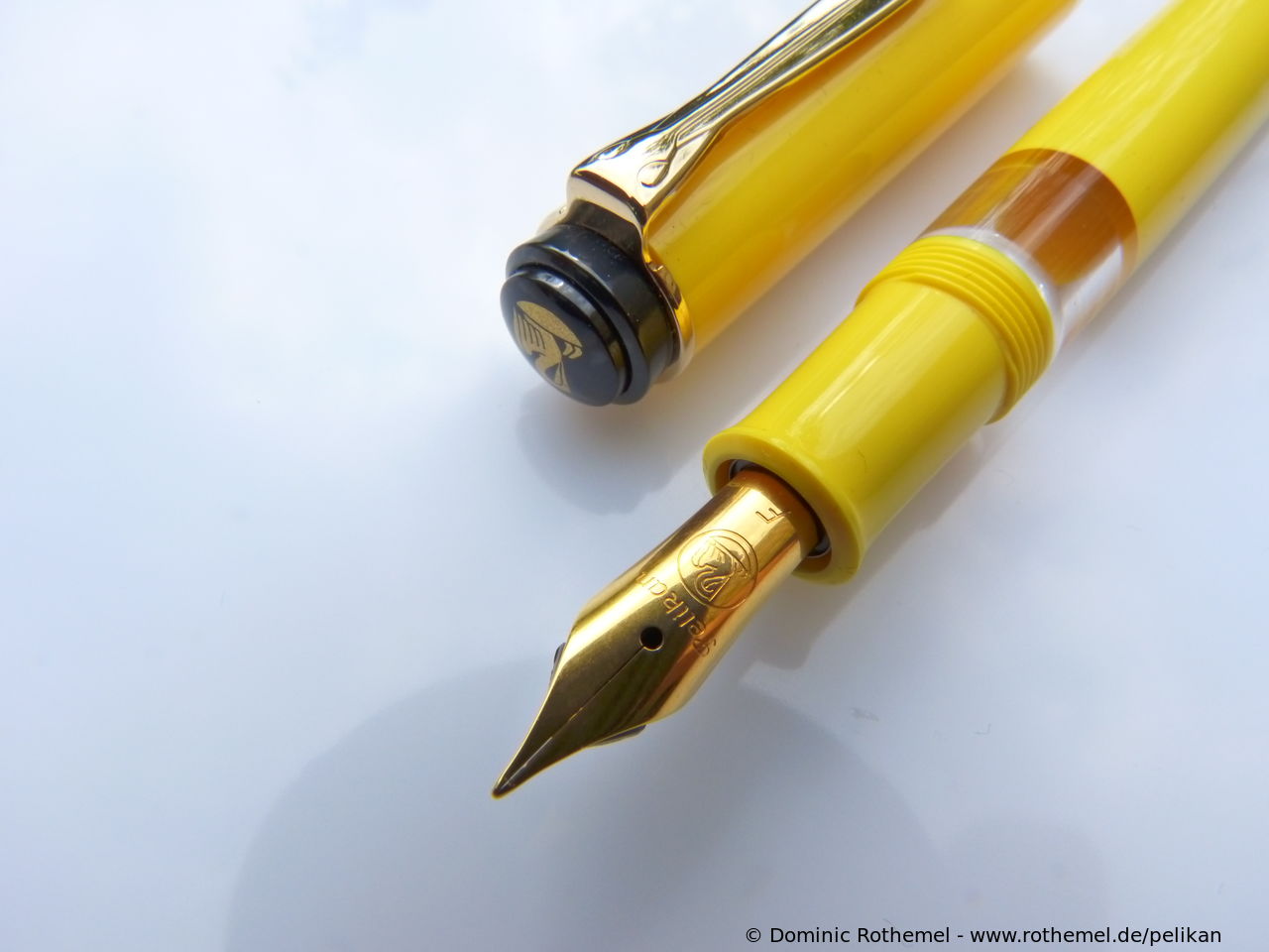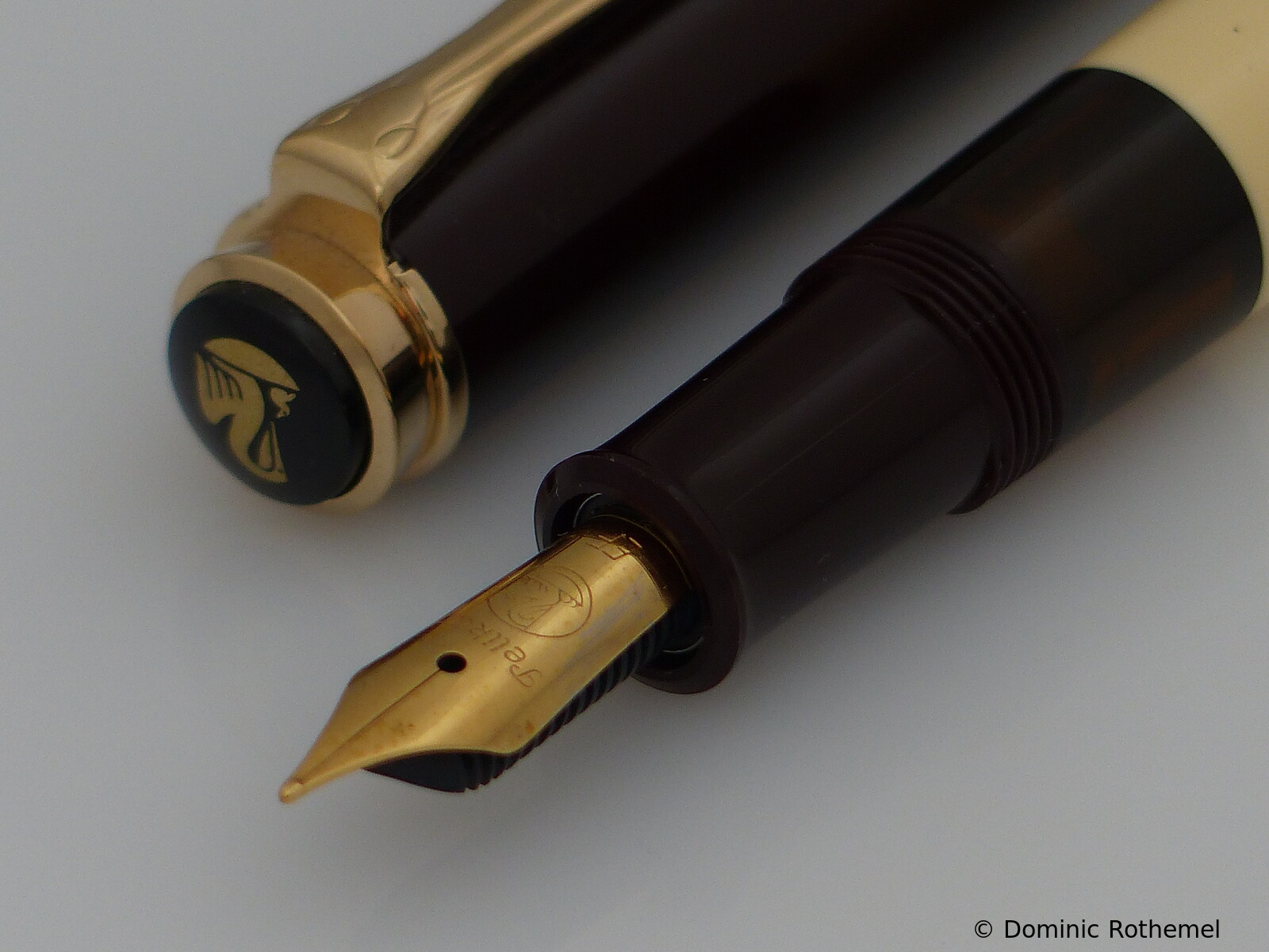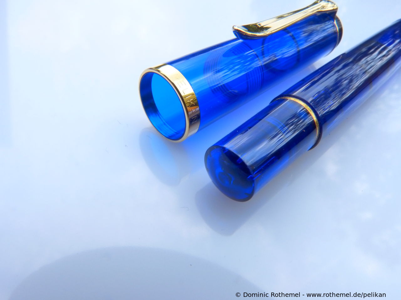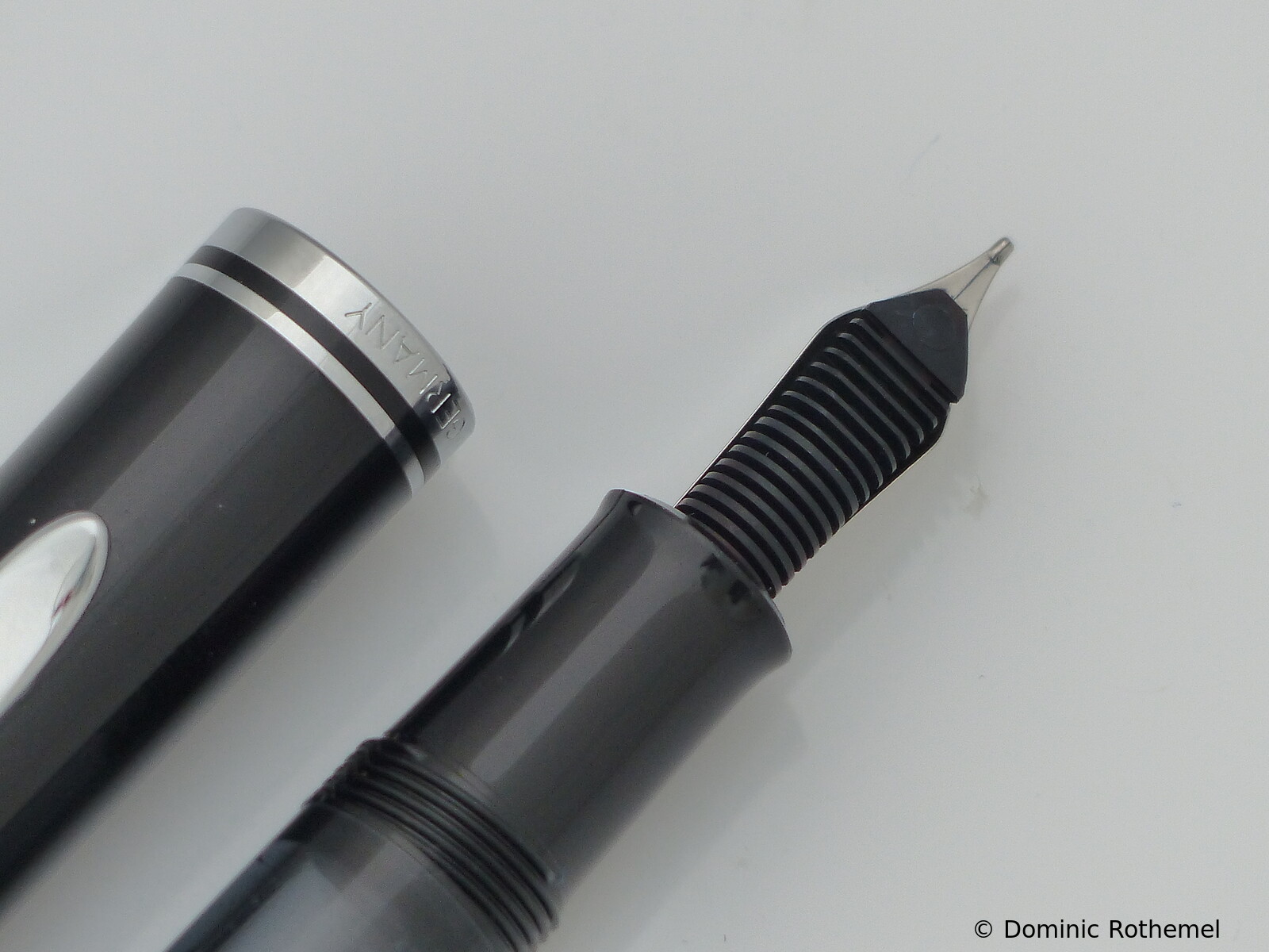 These cap inserts are identical to those of the M400 series, which are decorated with the logo and are held by a golden crown (clip ring). Since the M481 is the cheap version of the M400, he got the insignificant cap (the blind cap) instead of the golden crown, the logo disappeared. Later on, the M200 had the Pelikan logo on the cap. Initially it was screwed, later glued.