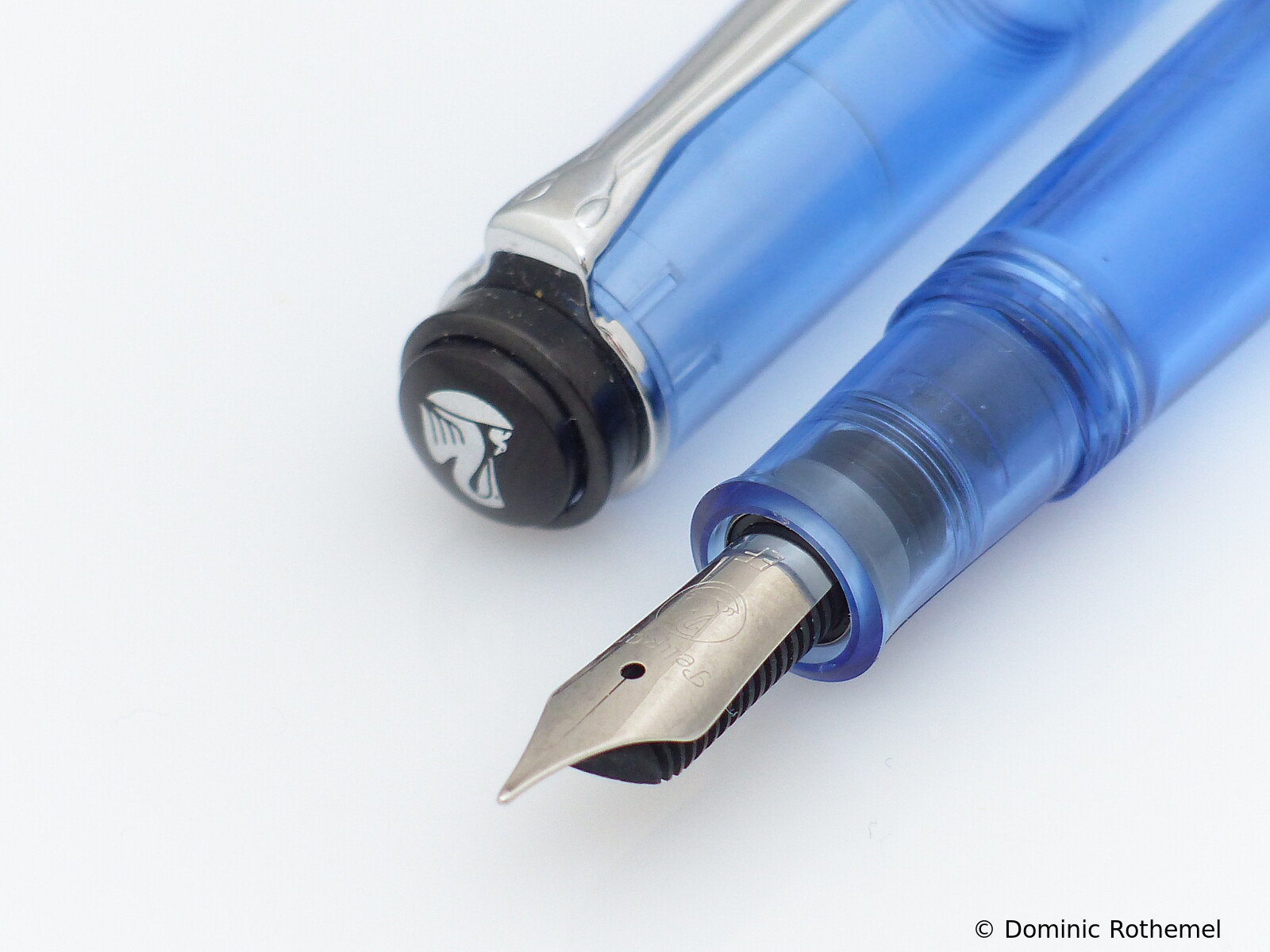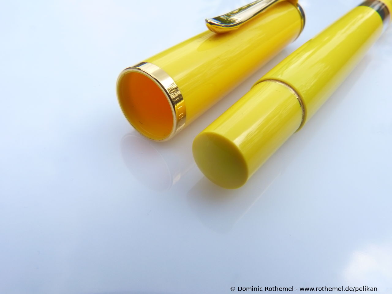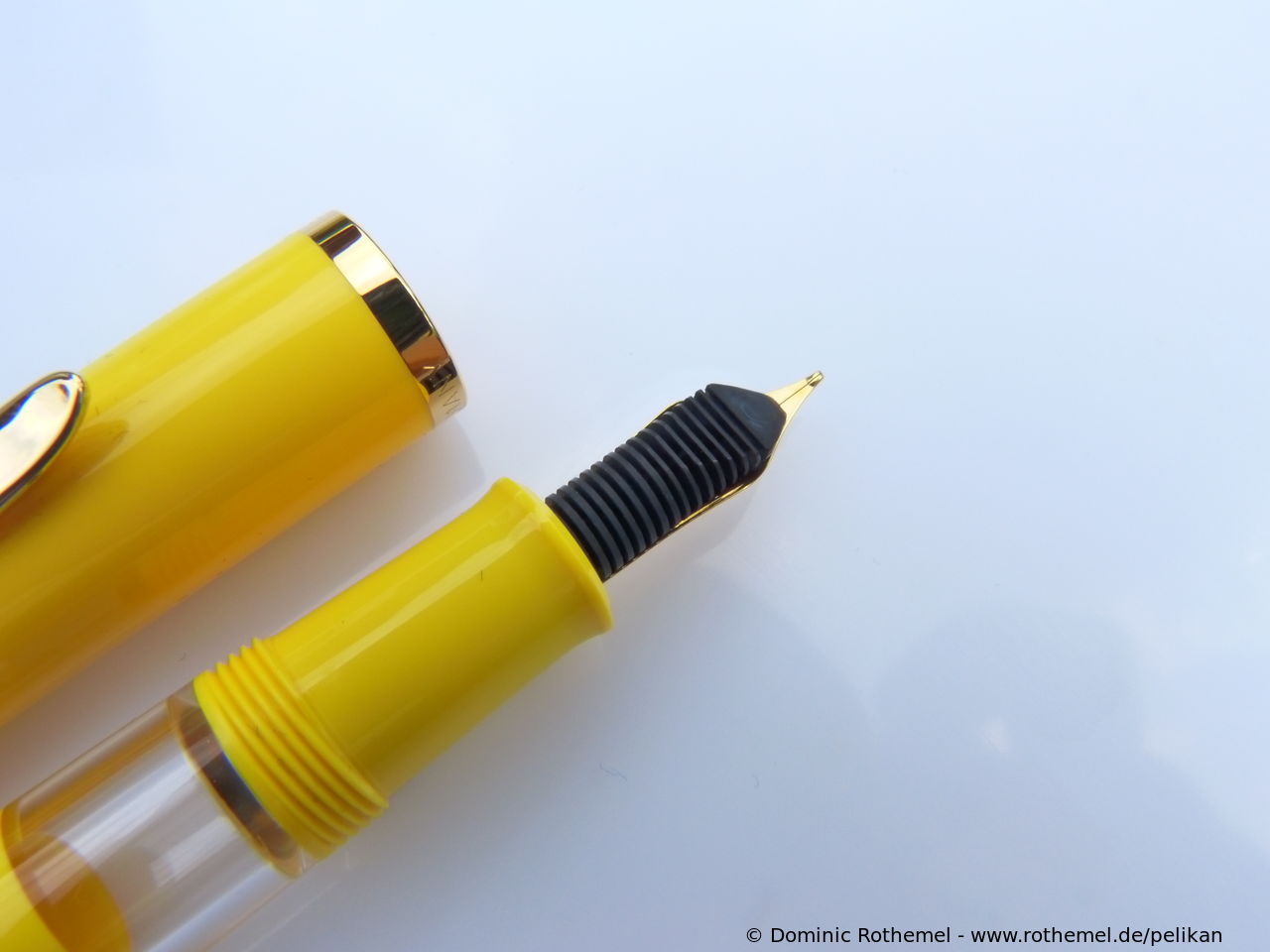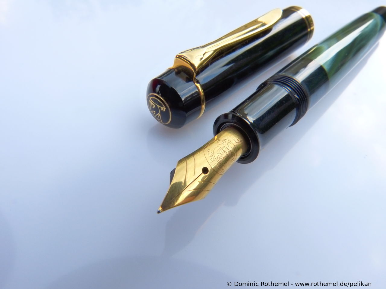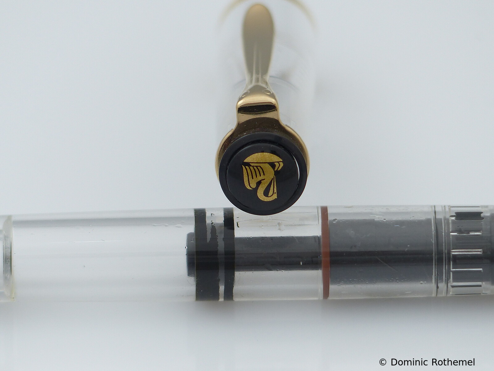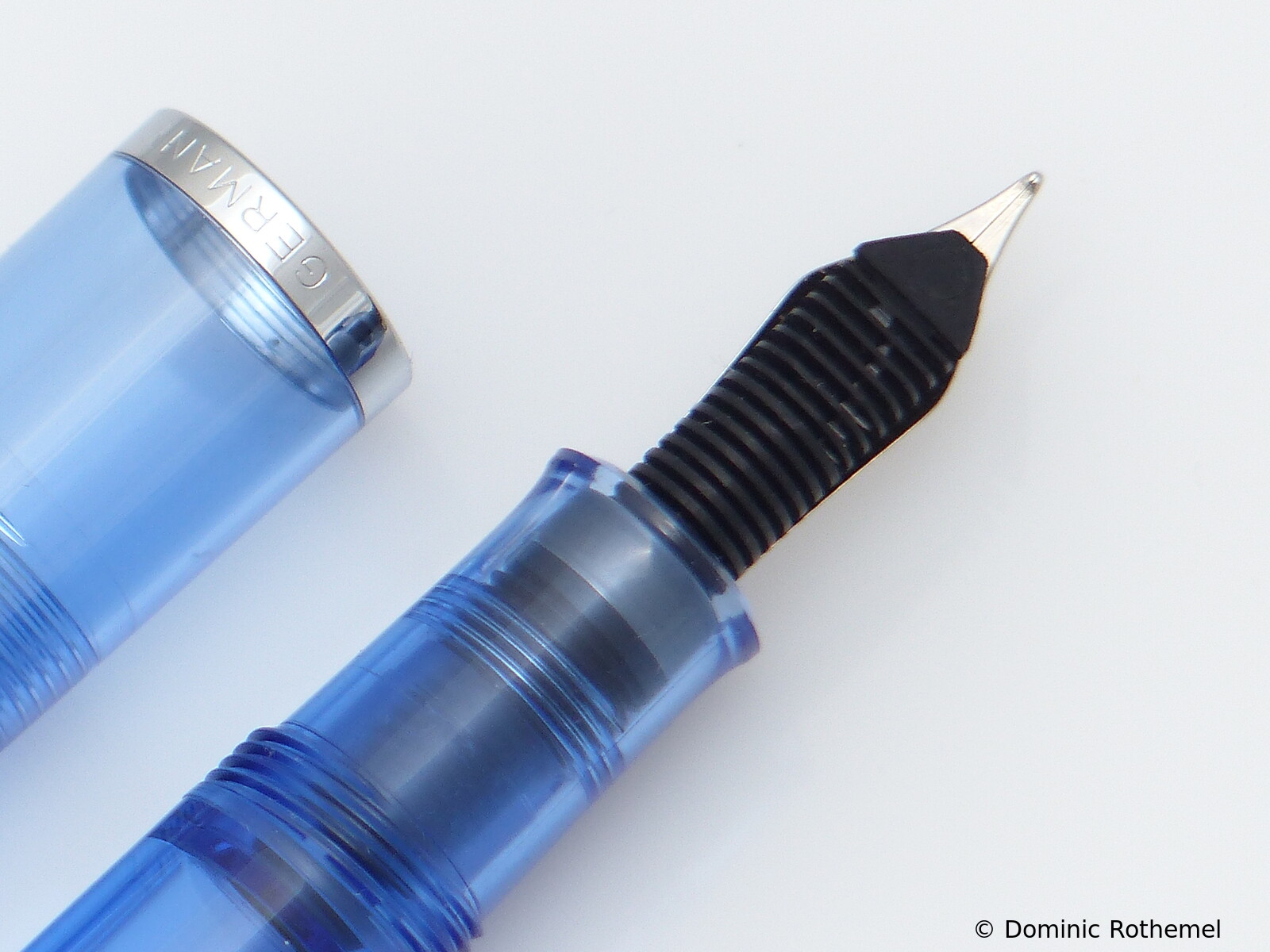 These cap inserts are identical to those of the M400 series, which are decorated with the logo and are held by a golden crown (clip ring). Since the M481 is the cheap version of the M400, he got the insignificant cap (the blind cap) instead of the golden crown, the logo disappeared. Later on, the M200 had the Pelikan logo on the cap. Initially it was screwed, later glued.