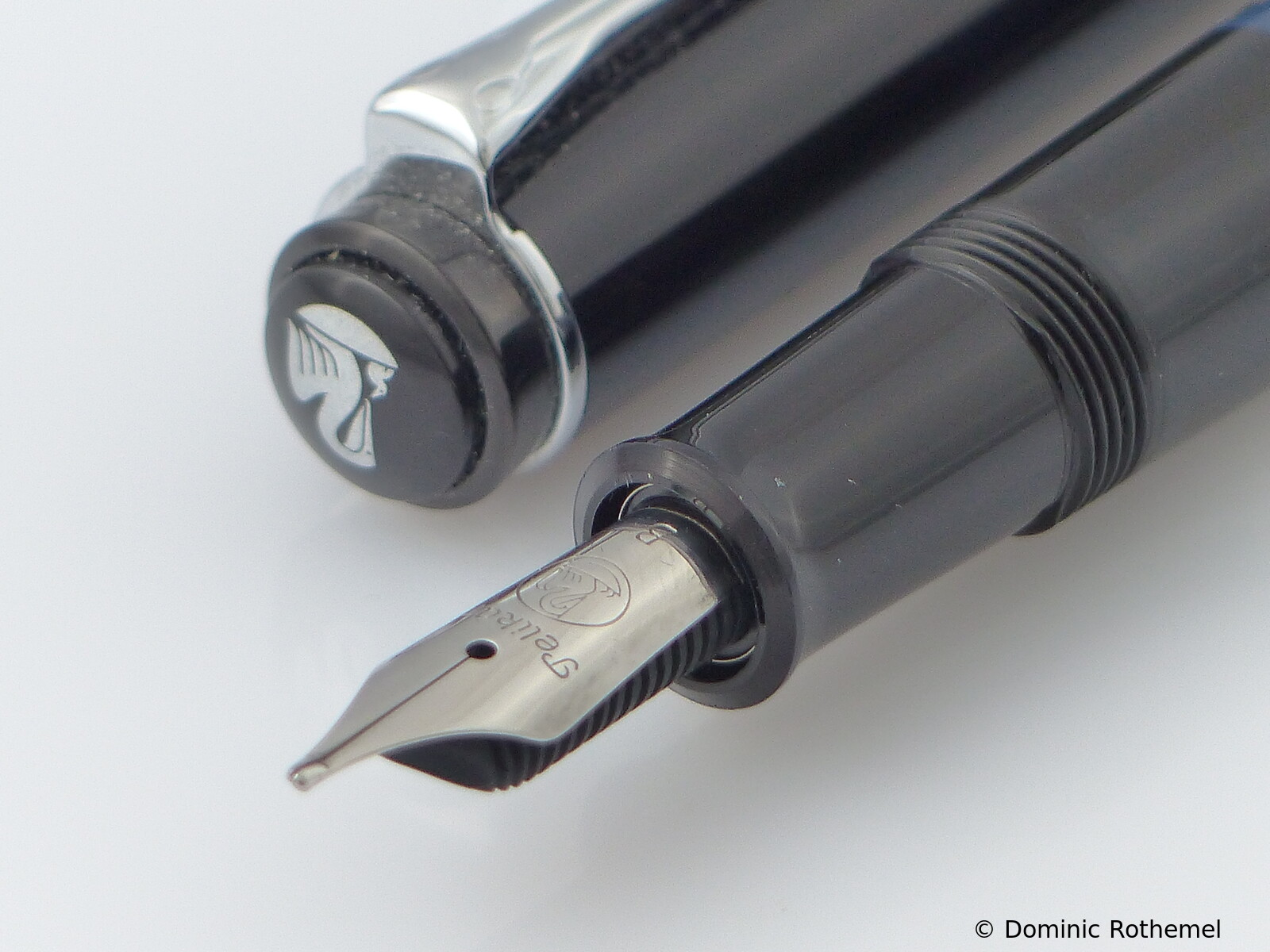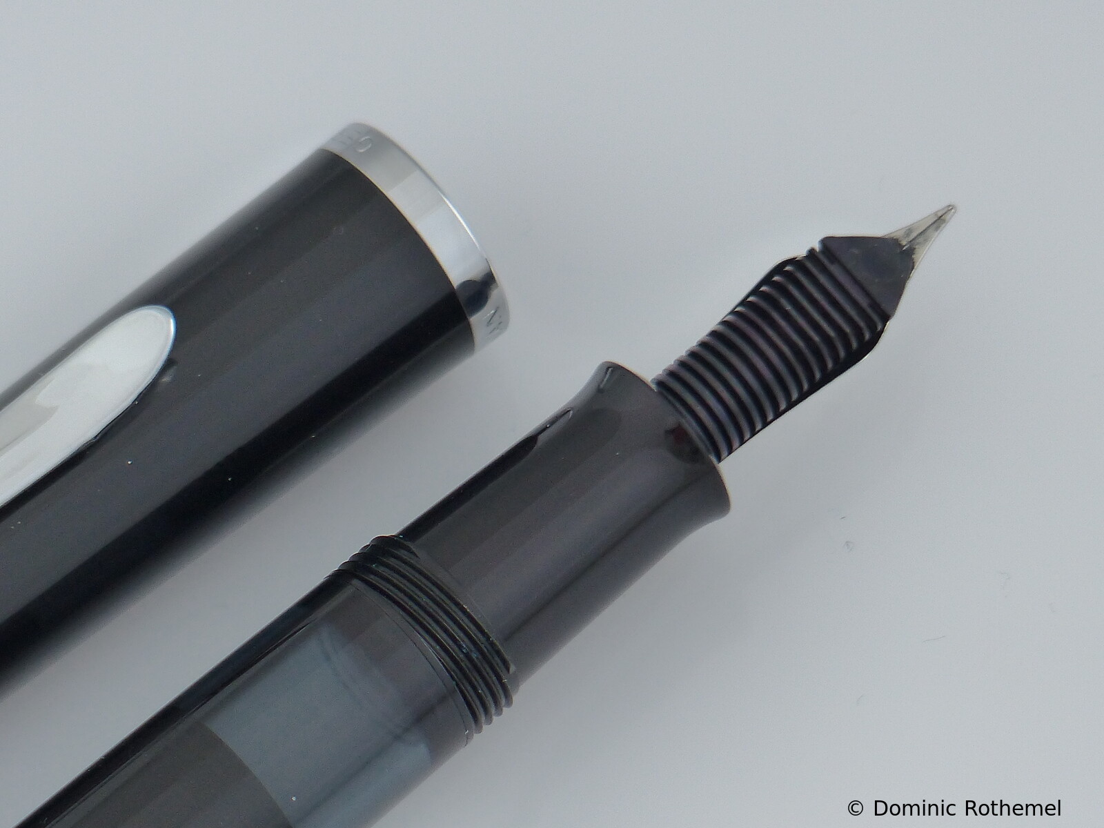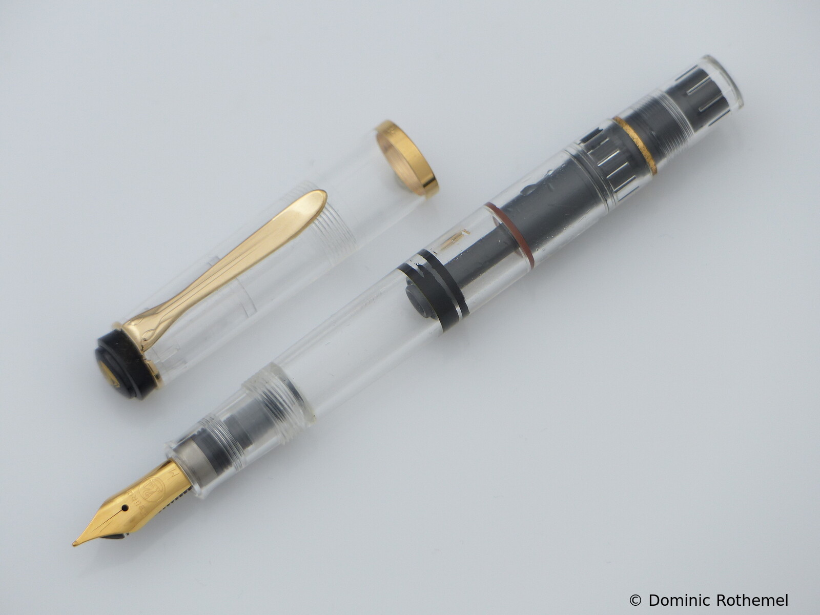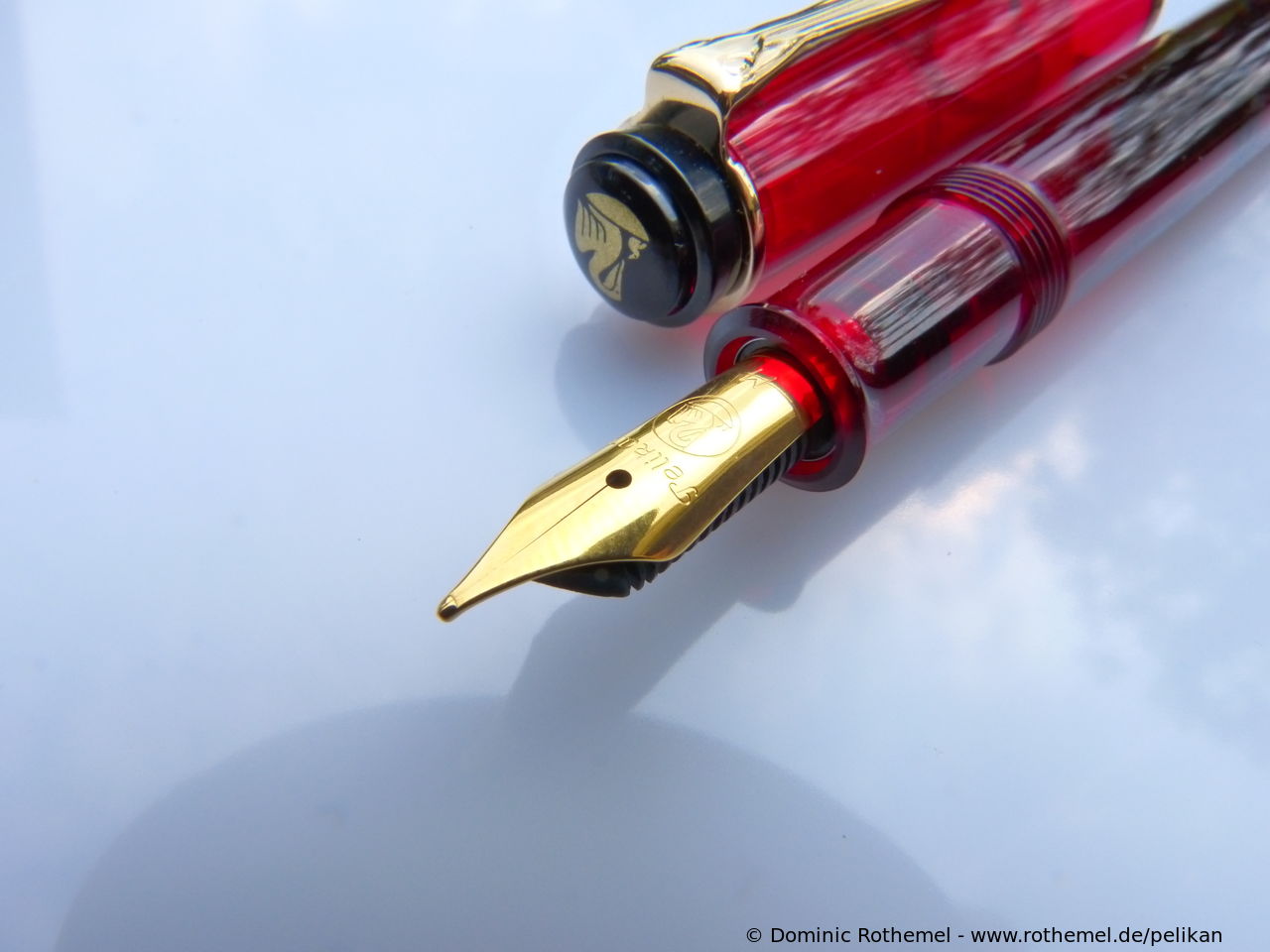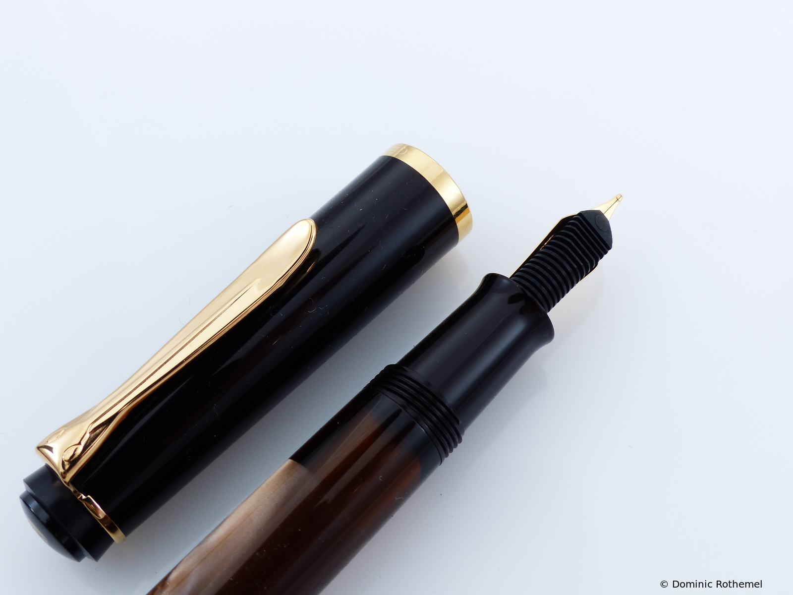 These cap inserts are identical to those of the M400 series, which are decorated with the logo and are held by a golden crown (clip ring). Since the M481 is the cheap version of the M400, he got the insignificant cap (the blind cap) instead of the golden crown, the logo disappeared. Later on, the M200 had the Pelikan logo on the cap. Initially it was screwed, later glued.