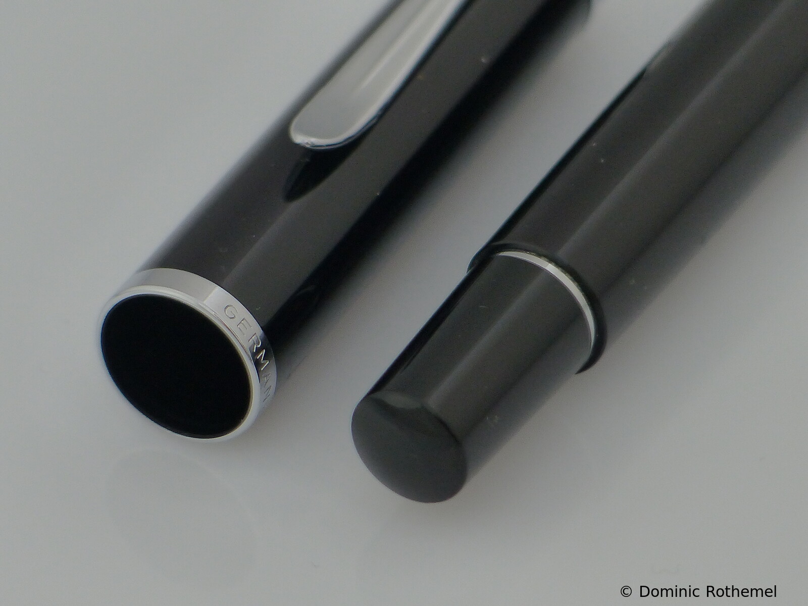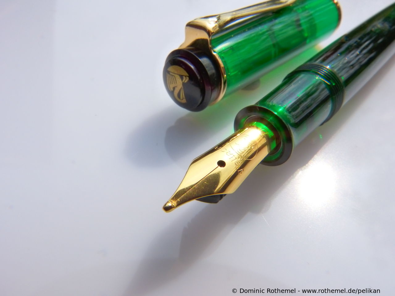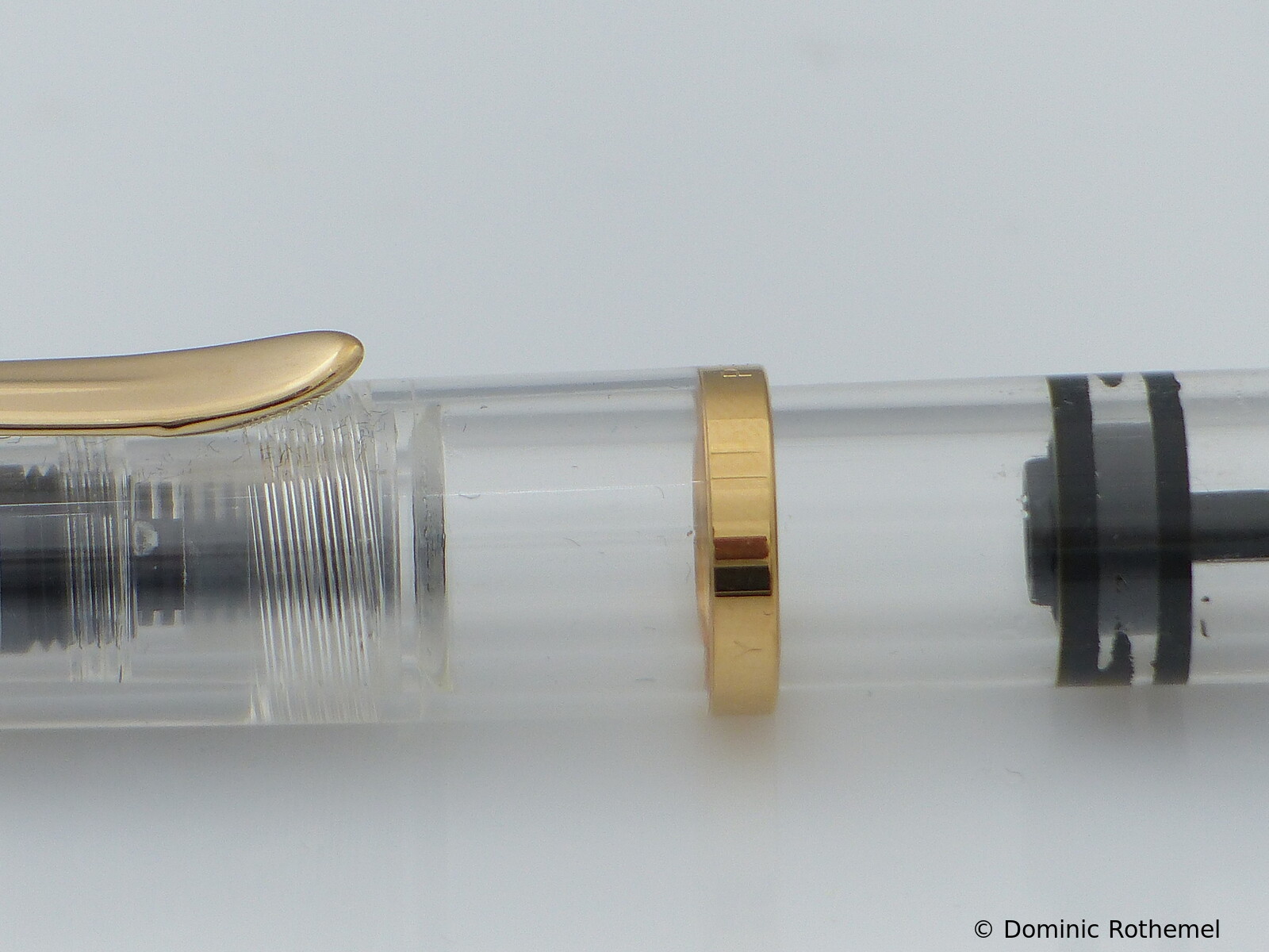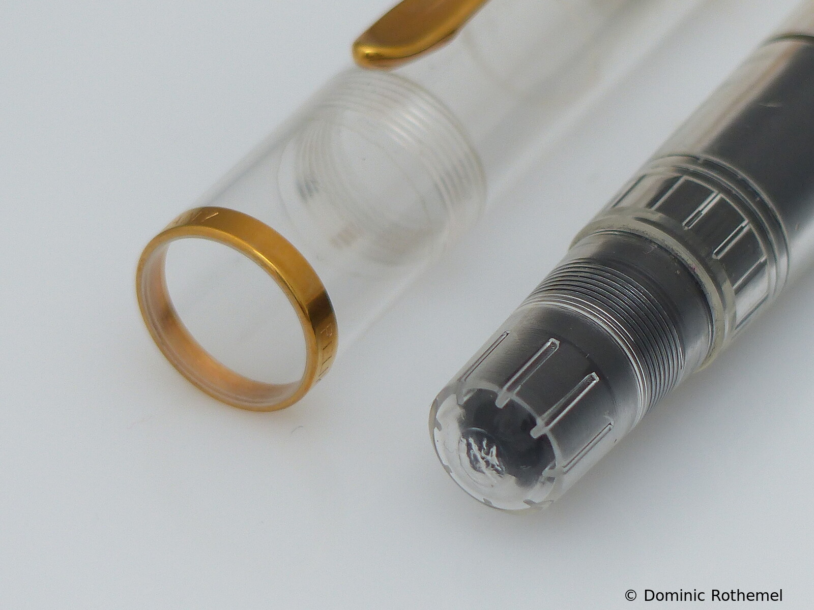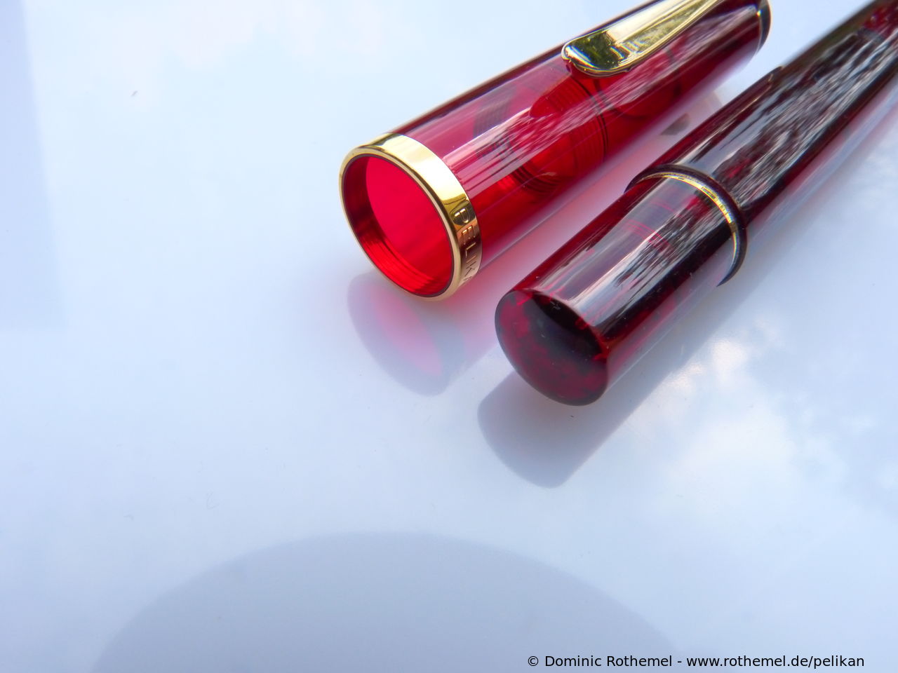 These cap inserts are identical to those of the M400 series, which are decorated with the logo and are held by a golden crown (clip ring). Since the M481 is the cheap version of the M400, he got the insignificant cap (the blind cap) instead of the golden crown, the logo disappeared. Later on, the M200 had the Pelikan logo on the cap. Initially it was screwed, later glued.