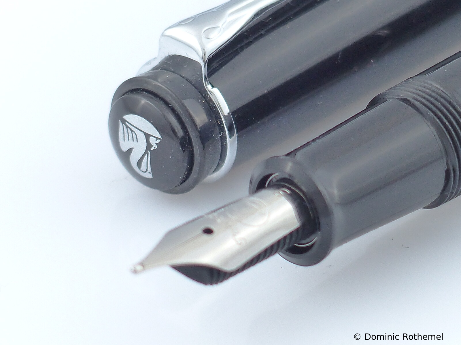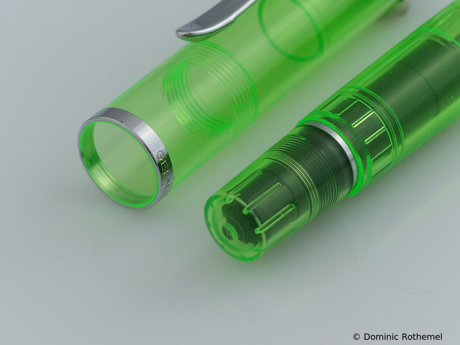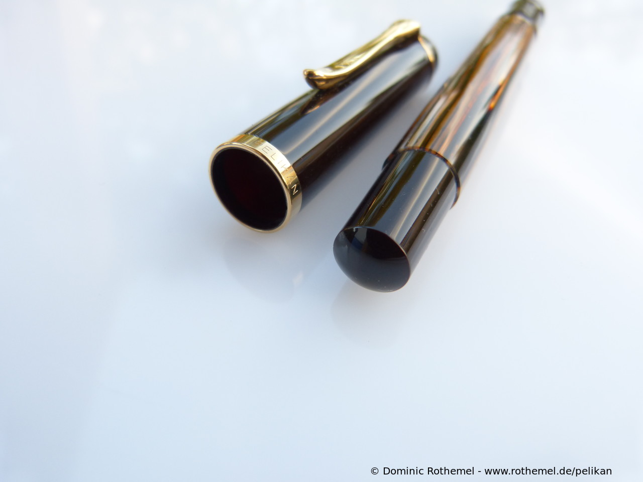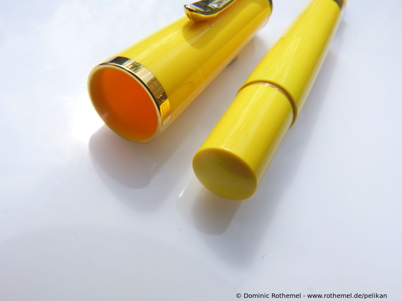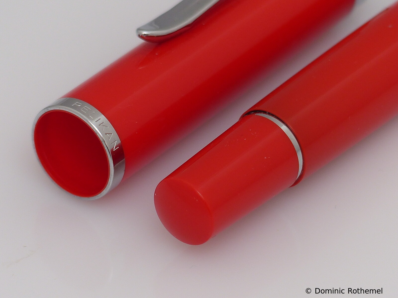 These cap inserts are identical to those of the M400 series, which are decorated with the logo and are held by a golden crown (clip ring). Since the M481 is the cheap version of the M400, he got the insignificant cap (the blind cap) instead of the golden crown, the logo disappeared. Later on, the M200 had the Pelikan logo on the cap. Initially it was screwed, later glued.