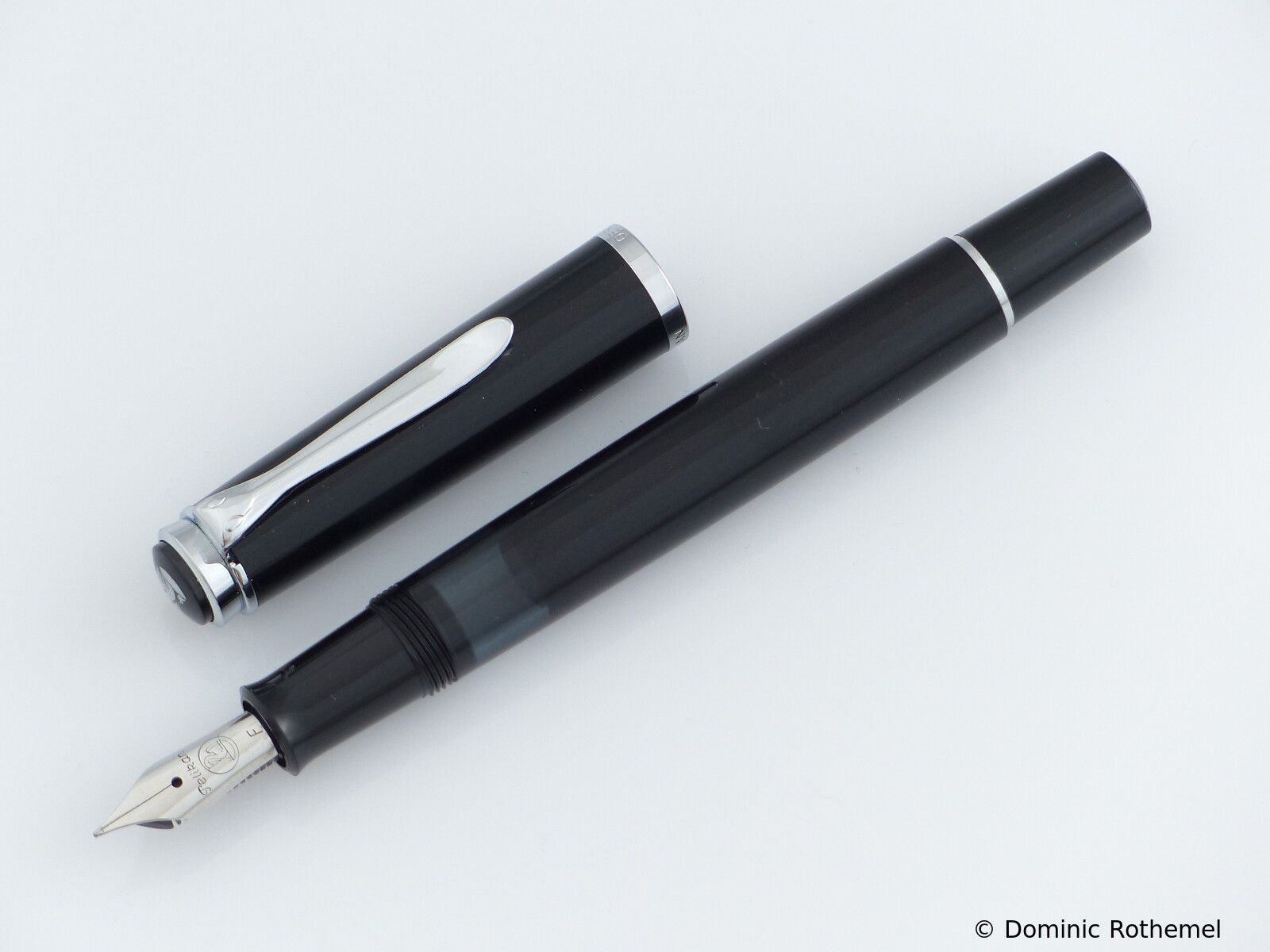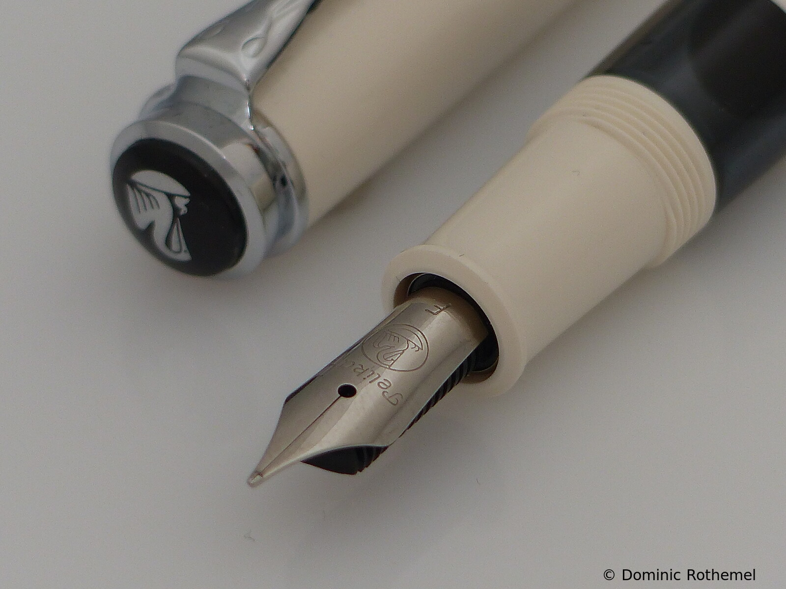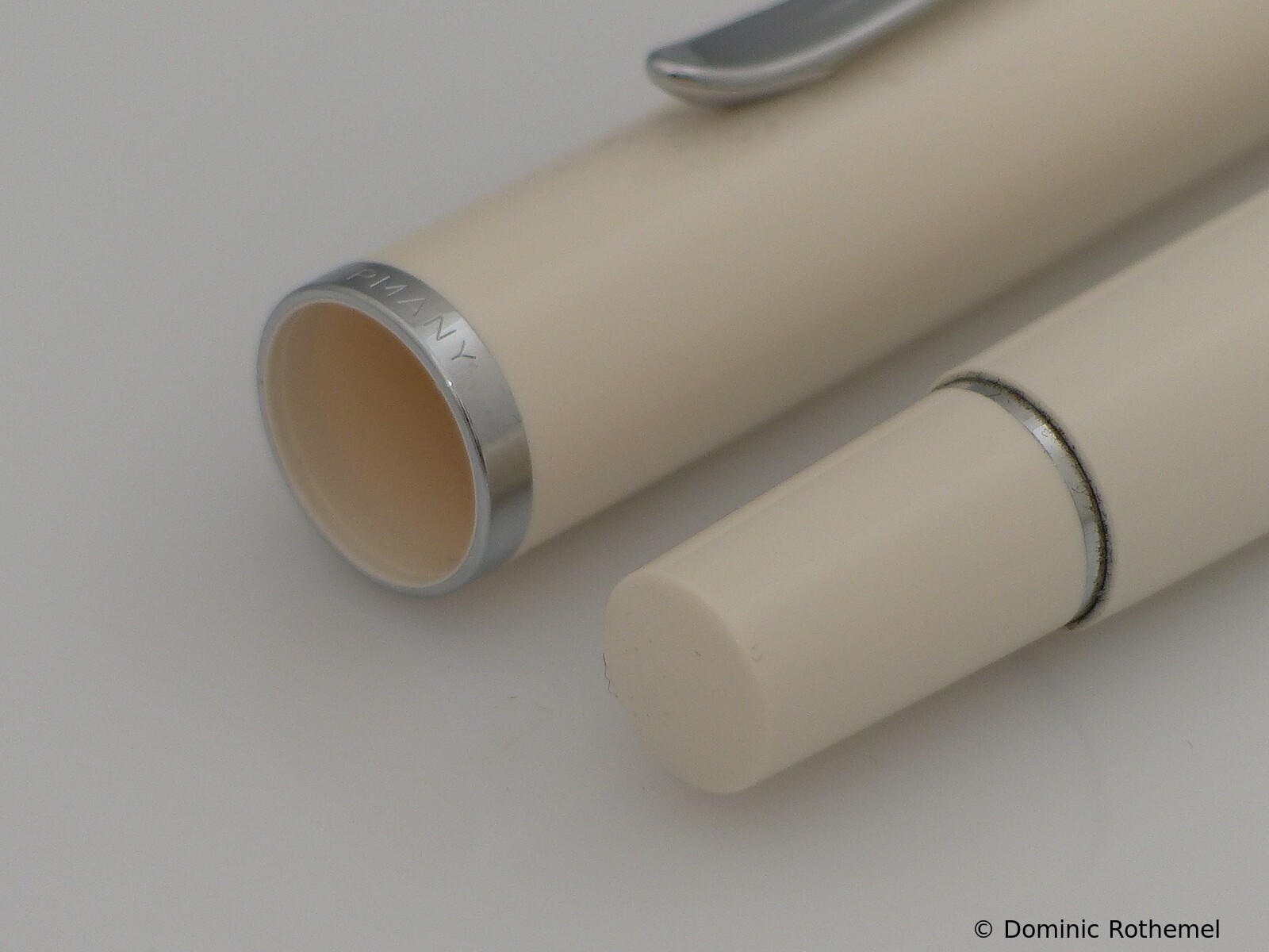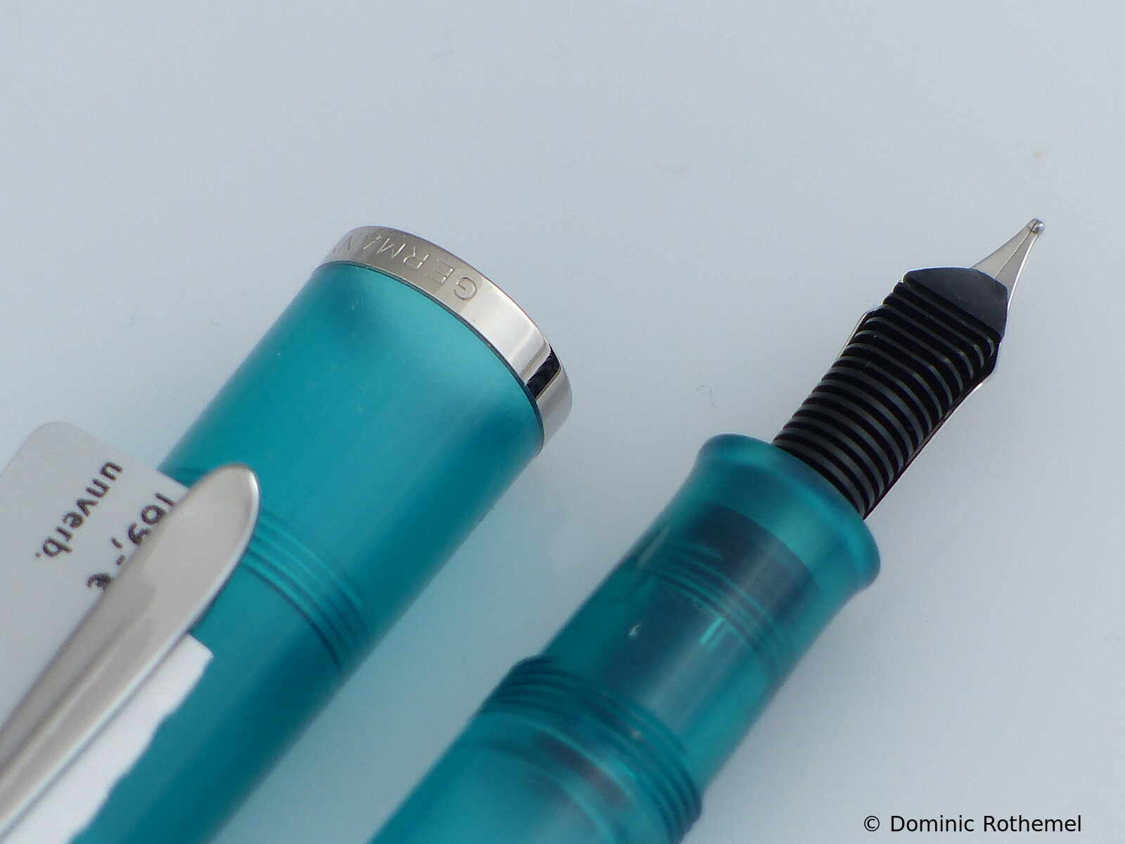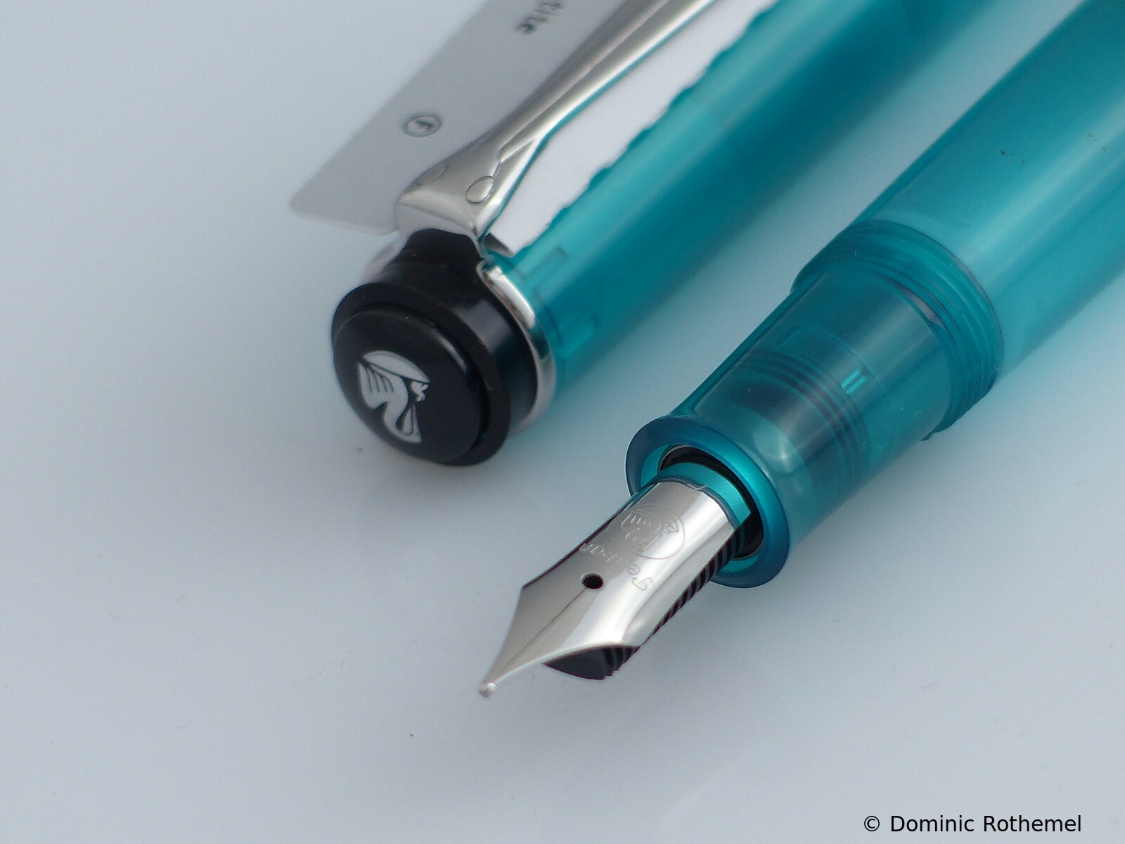 These cap inserts are identical to those of the M400 series, which are decorated with the logo and are held by a golden crown (clip ring). Since the M481 is the cheap version of the M400, he got the insignificant cap (the blind cap) instead of the golden crown, the logo disappeared. Later on, the M200 had the Pelikan logo on the cap. Initially it was screwed, later glued.