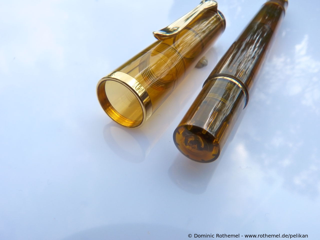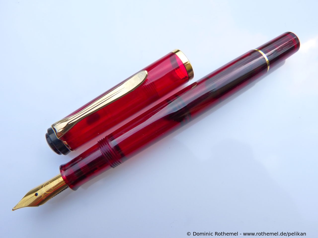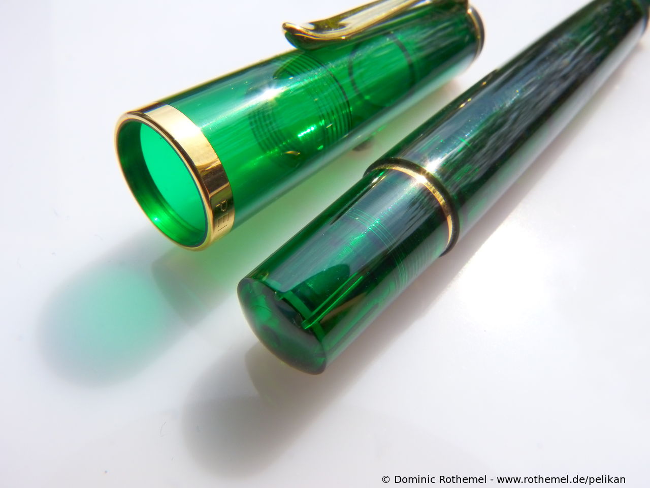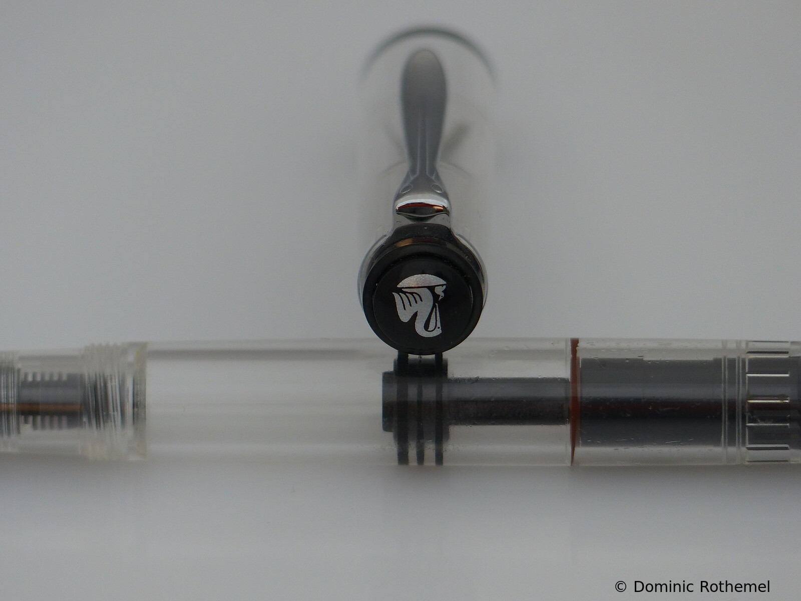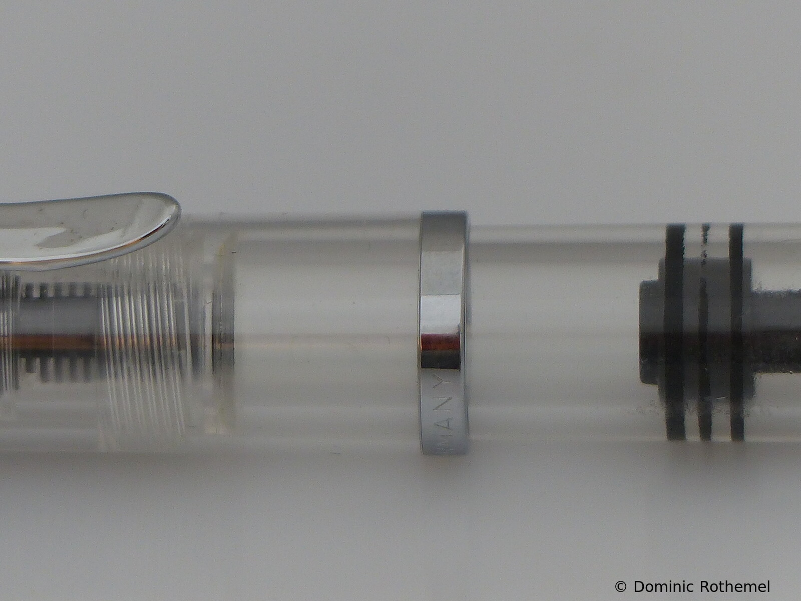 These cap inserts are identical to those of the M400 series, which are decorated with the logo and are held by a golden crown (clip ring). Since the M481 is the cheap version of the M400, he got the insignificant cap (the blind cap) instead of the golden crown, the logo disappeared. Later on, the M200 had the Pelikan logo on the cap. Initially it was screwed, later glued.